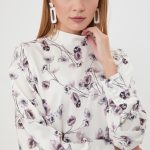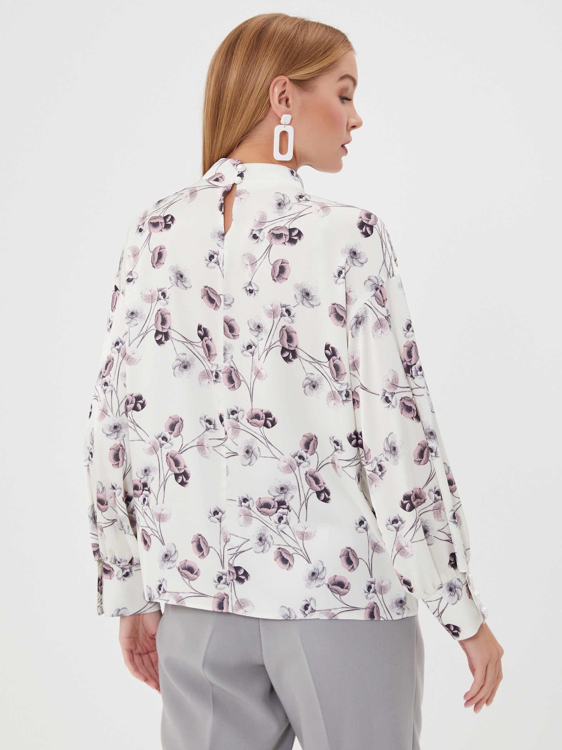 Описание: Романтичная блузка с воротником стойка. Шелковистая ткань с цветочным принтом. Дополните сарафаном П-2023 СТЕК(О)