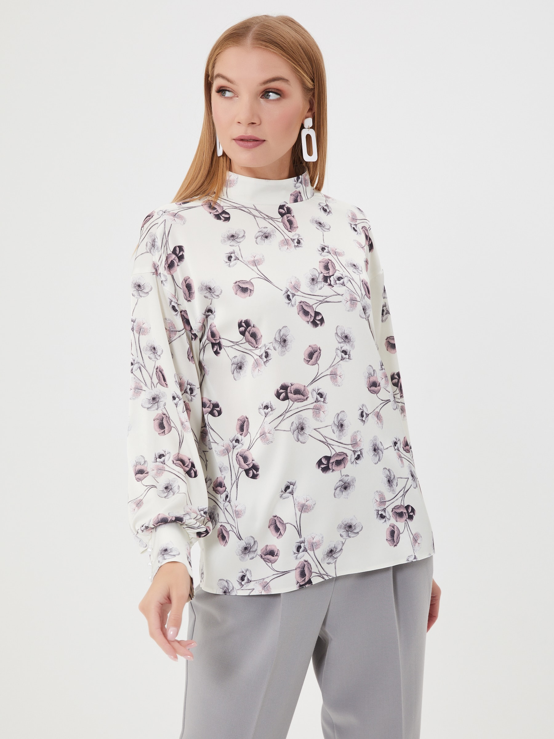 Описание: Романтичная блузка с воротником стойка. Шелковистая ткань с цветочным принтом. Дополните сарафаном П-2023 СТЕК(О)