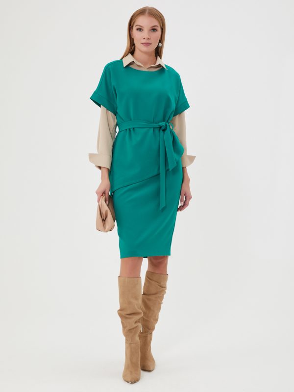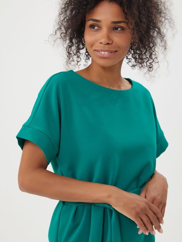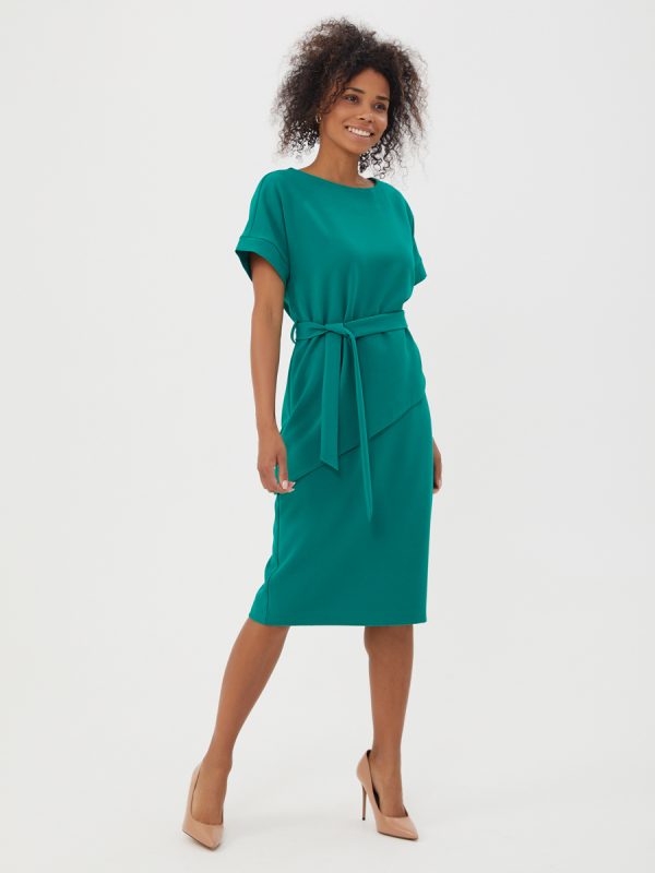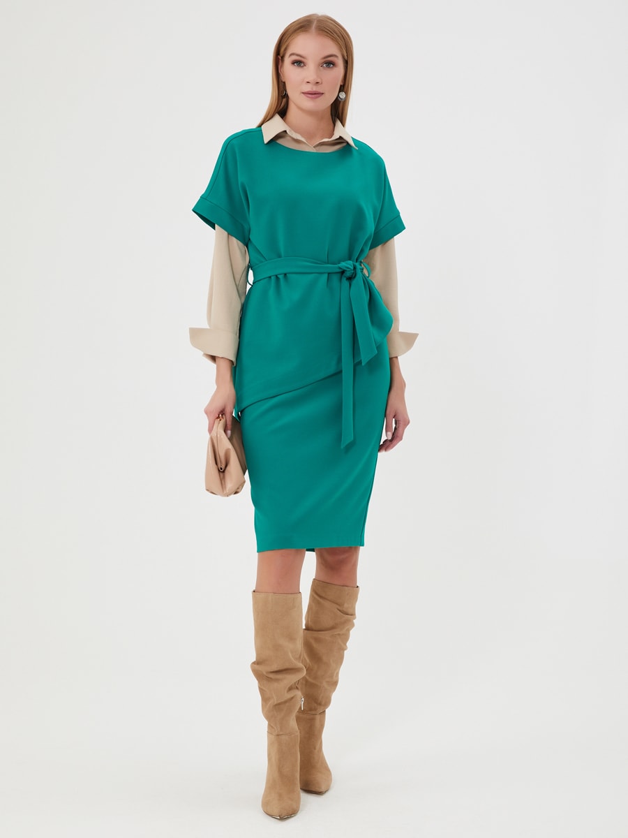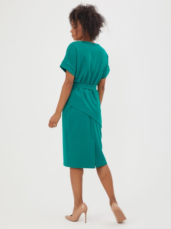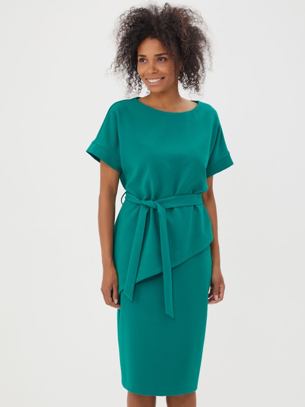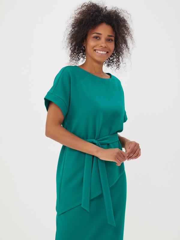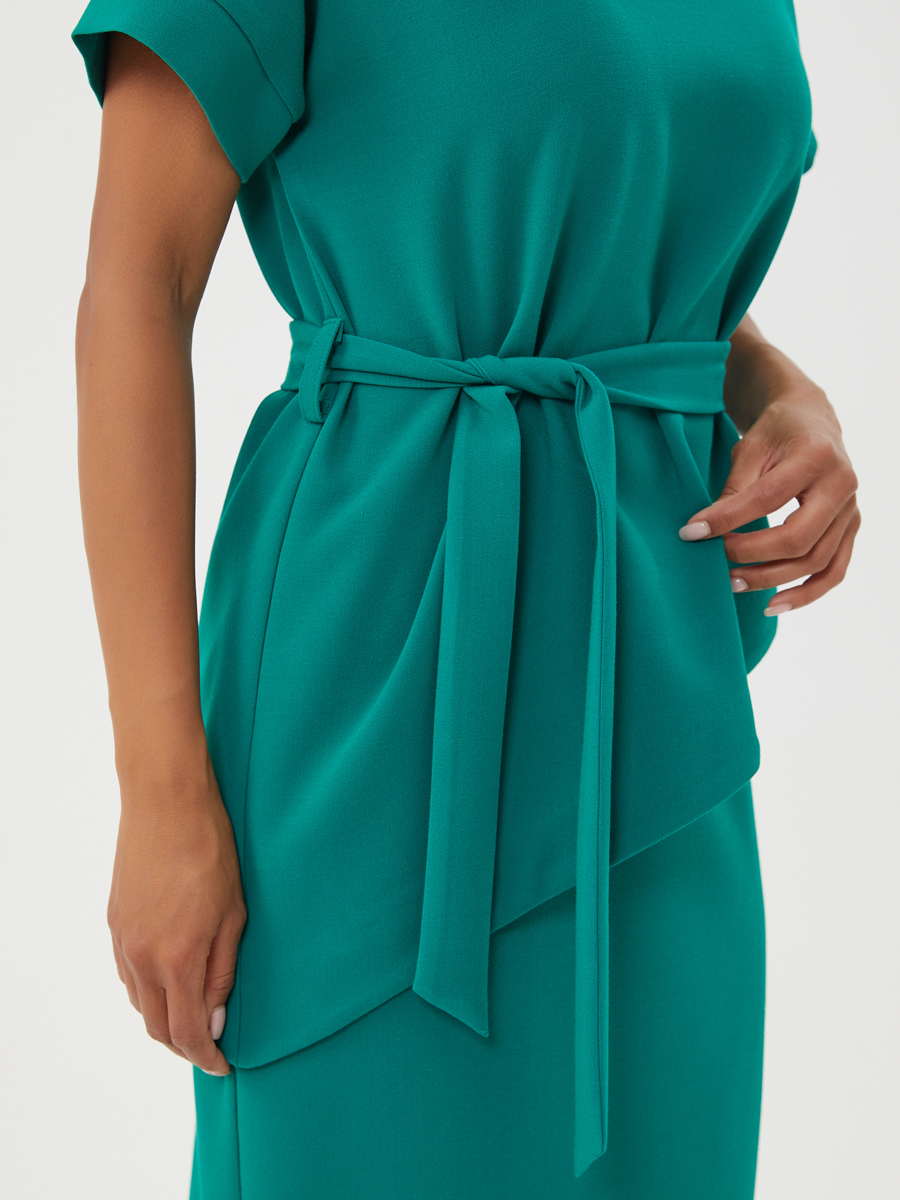 Описание: Блузка насыщенного нефритового цвета. Асимметричный крой, мягкая линия плеча, дополнена поясом. Для полного комплекта сочетайте с юбкой А-901 ВЖ(О)