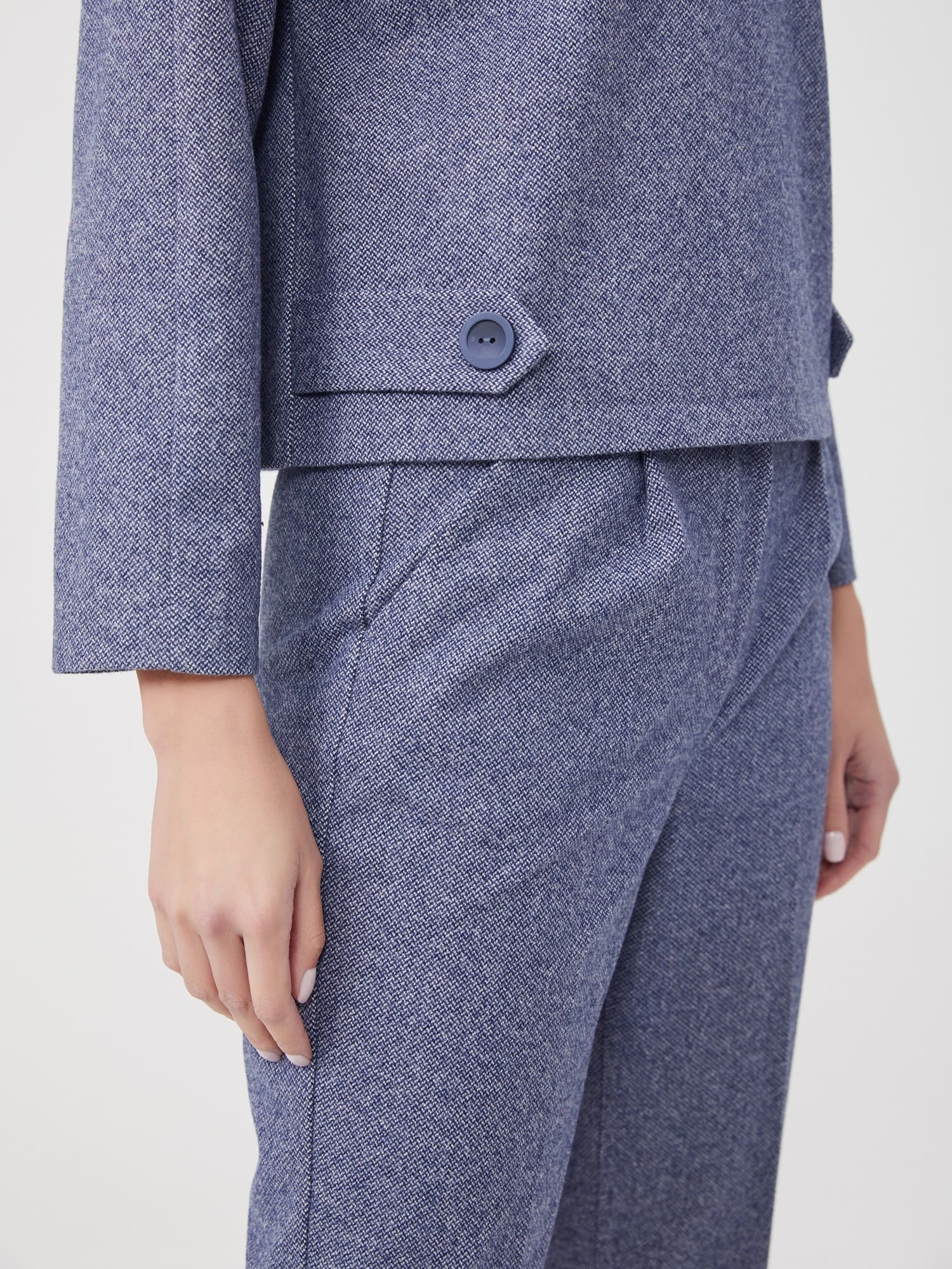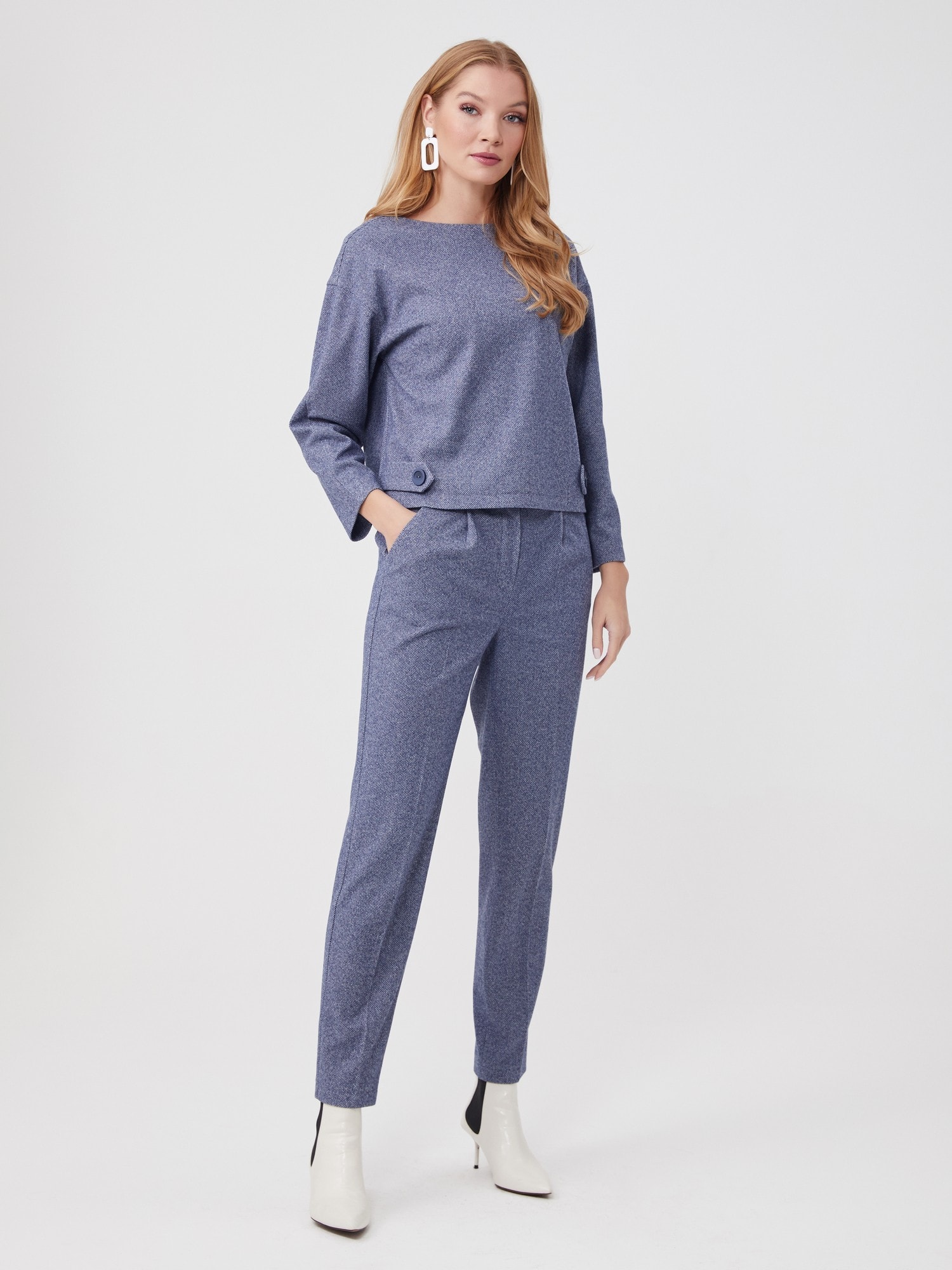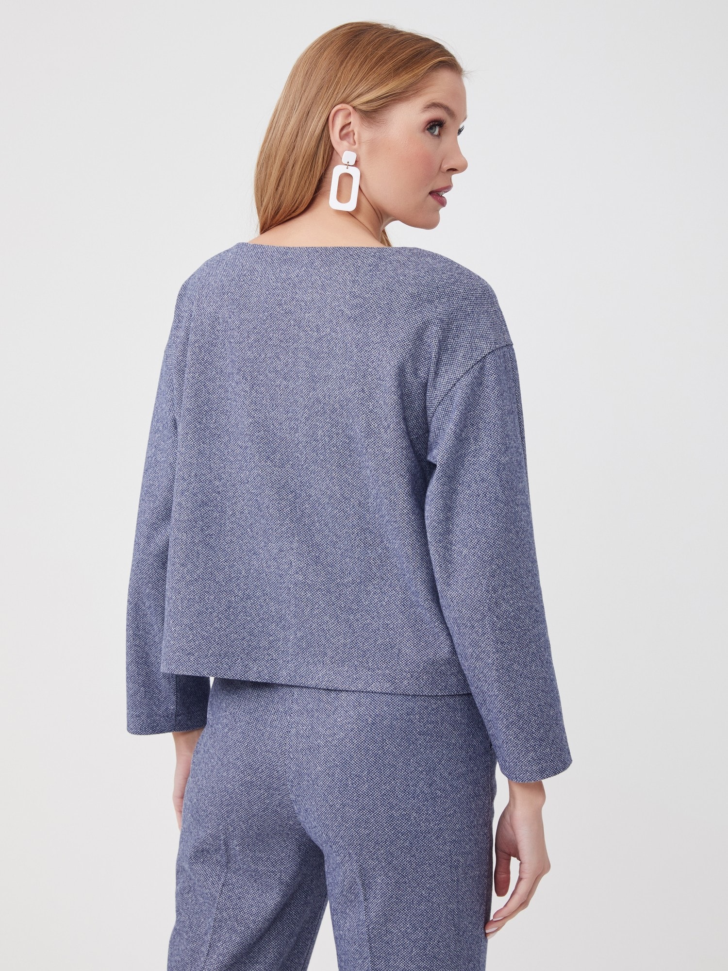 Описание: Блузка из мягкой ткани с принтом "микролапка" в оттенке морская пена. Вырез «лодочка», плавная линия плеча, длинный рукав и декоративные паты с пуговицами. Изысканность в простоте. Дополните брюками Б-802 МП(О)