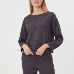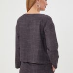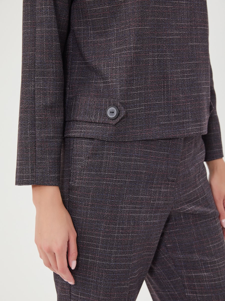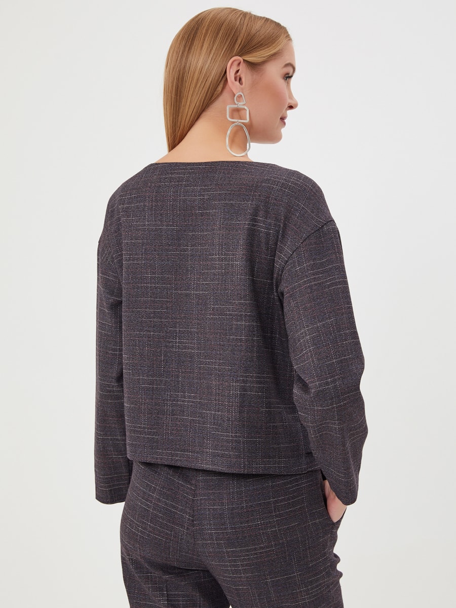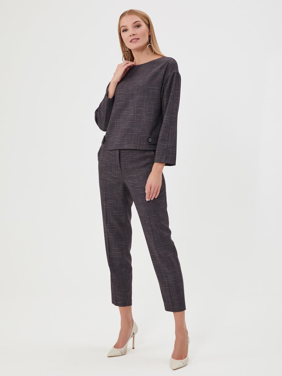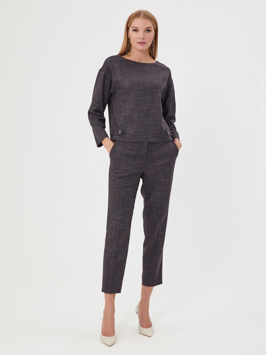 Описание: Блузка из серо-фиолетовой фактурной ткани. Декоративные хлястики с пуговицами в боковых швах. Этот костюмный топ просто создан для осенней поры. Сочетайте с брюками Б-703 МЖ(О)