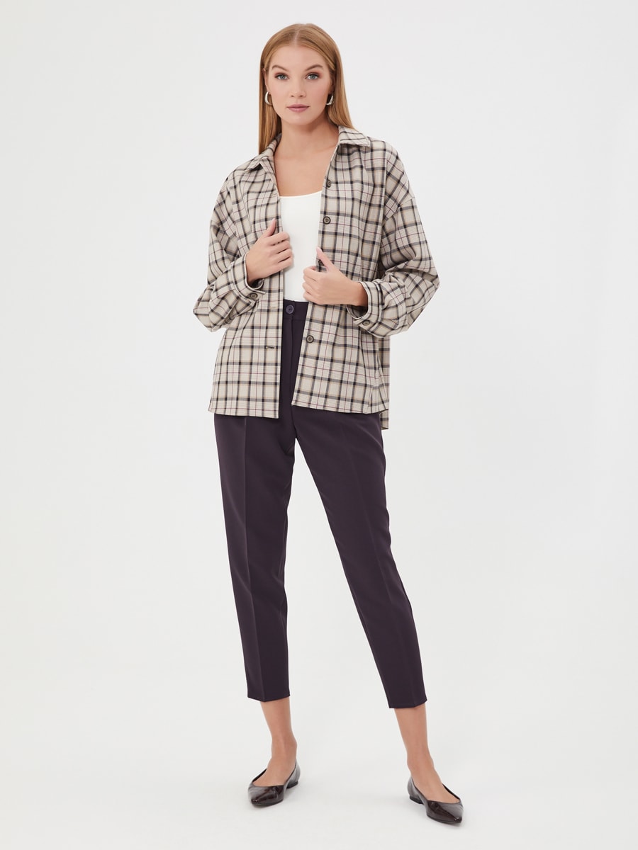 Описание: Остро актуальная в этом сезоне куртка-рубашка "Shacket", которую можно носить как самостоятельно, так и накидывая на футболку, водолазку или топ. Широкий покрой, манжеты на рукавах и отложной воротник. Накладной карман. Идеально сочетается с брюками Б-2000 СЛ(О)