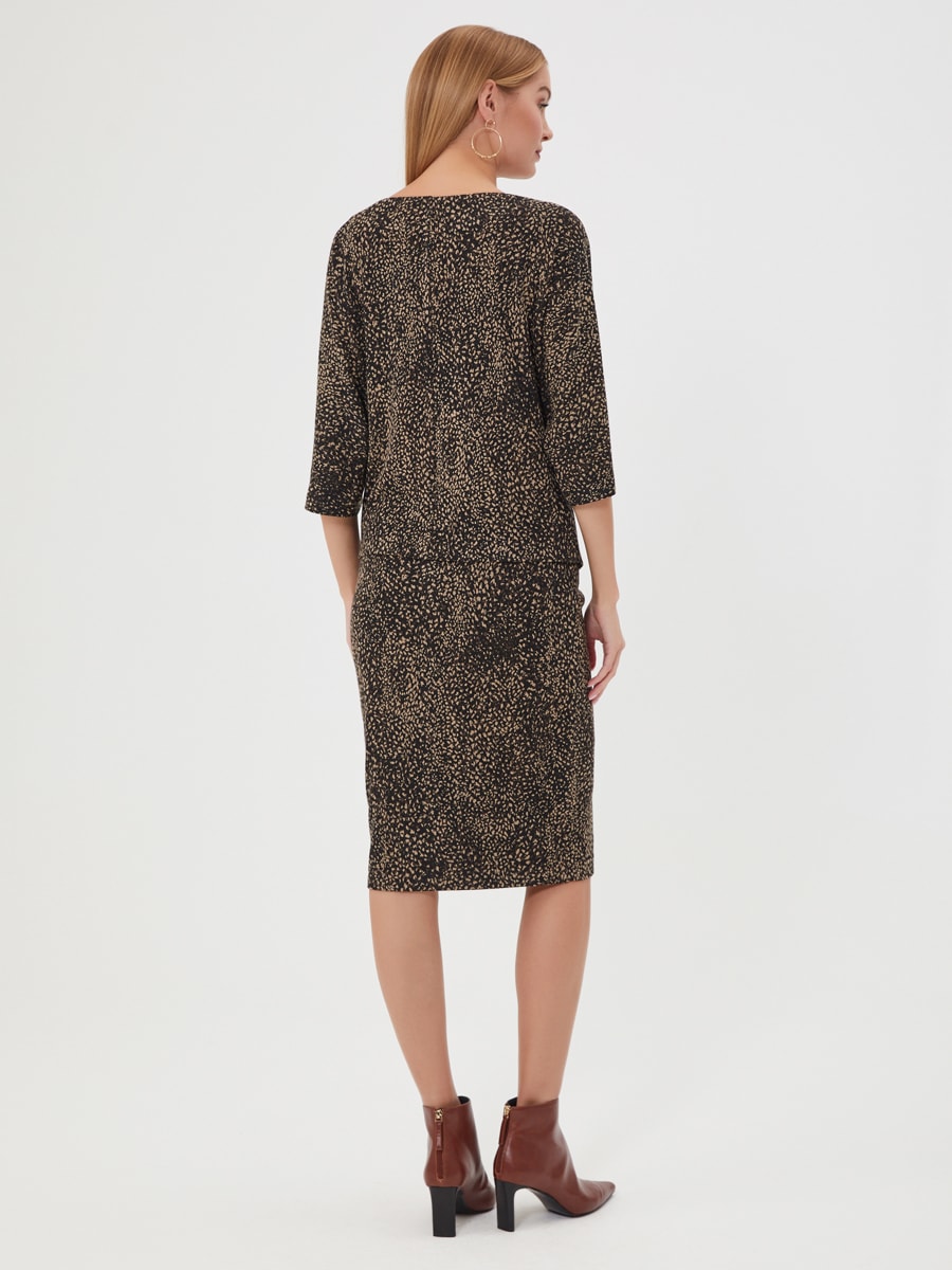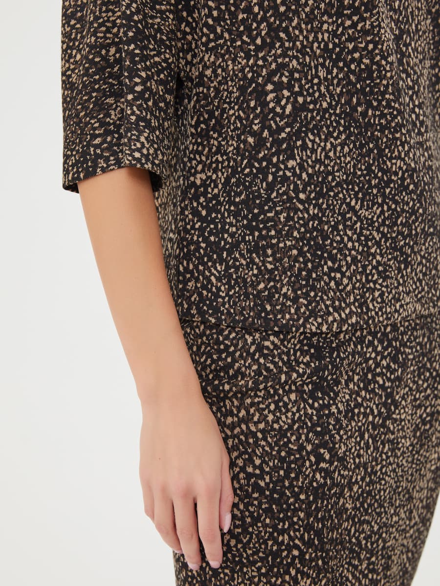 Описание: Трикотажная блузка с принтом в лапку. Рукав со спущенной линией плеча, заужается к запястьям. Дополните юбкой А-805 ЛАП(О) из той же ткани для полноценного комплекта.
