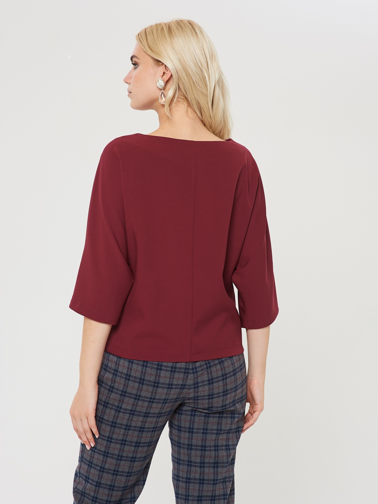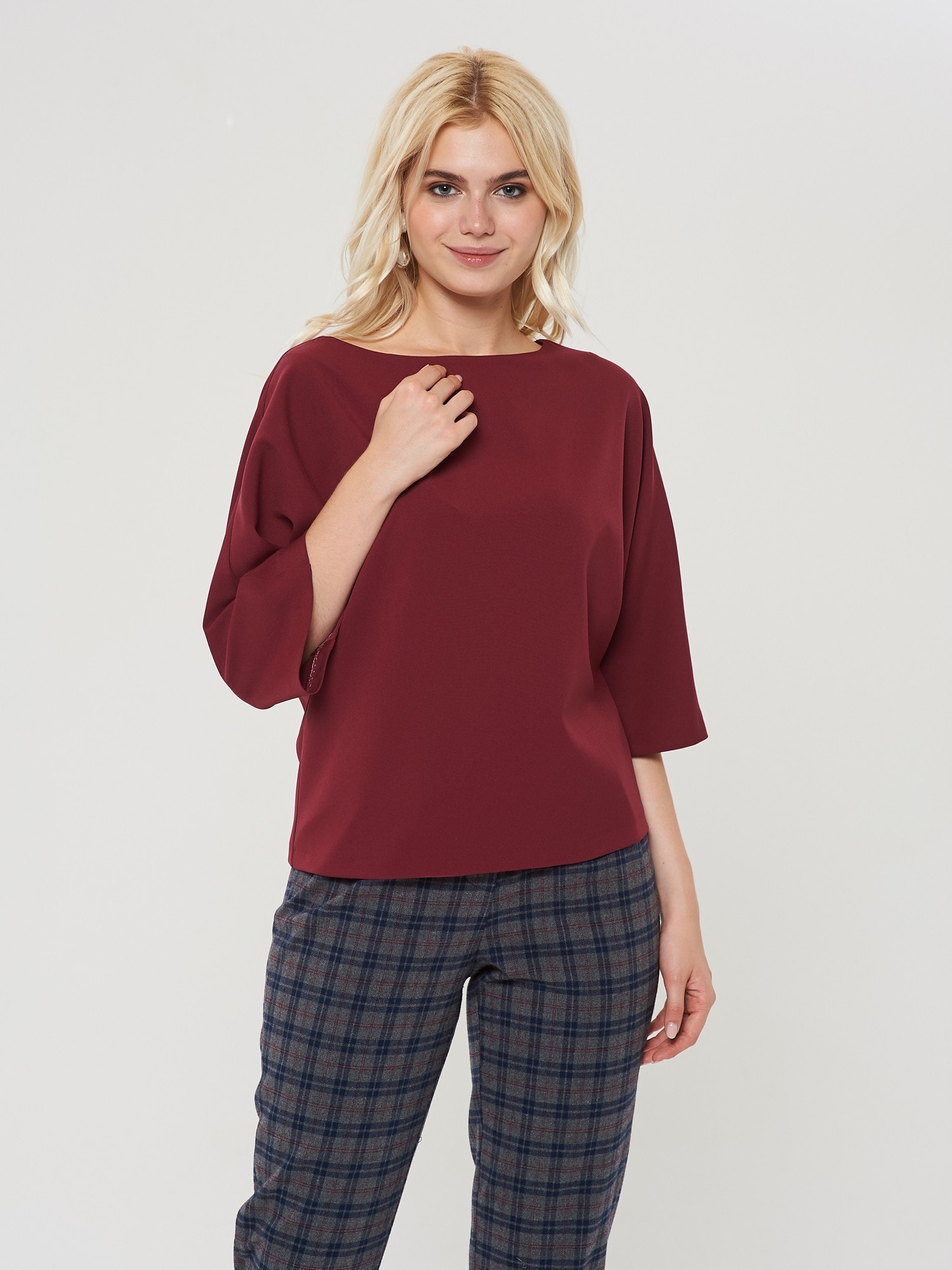 Свободная Блузка глубокого оттенка "марон" с цельнокроенными рукавами. Будет отлично смотреться как с брюками , так и в сочетании с джинсами. Дополнена брюками Б-901 ВКС(О9)