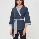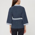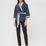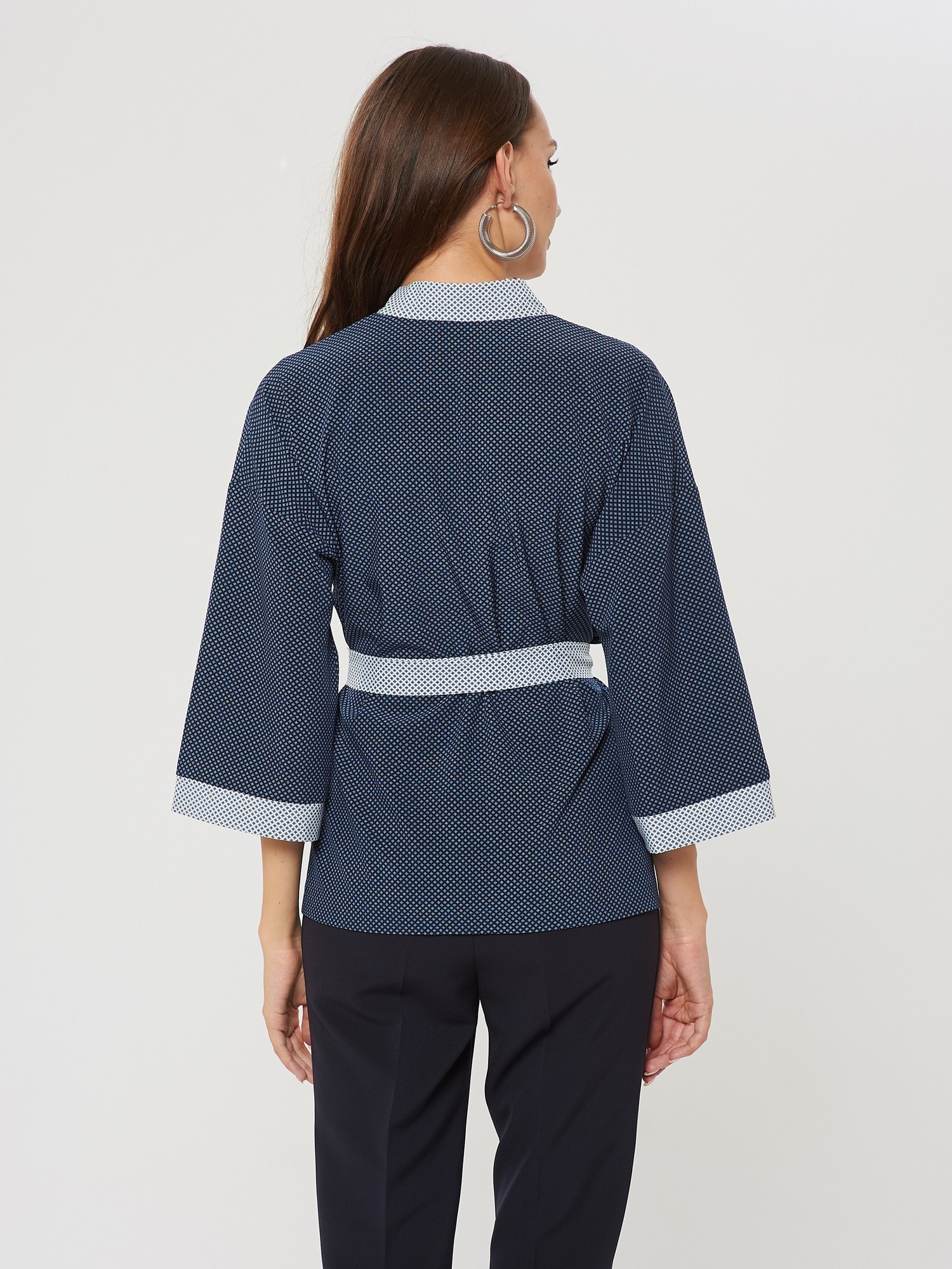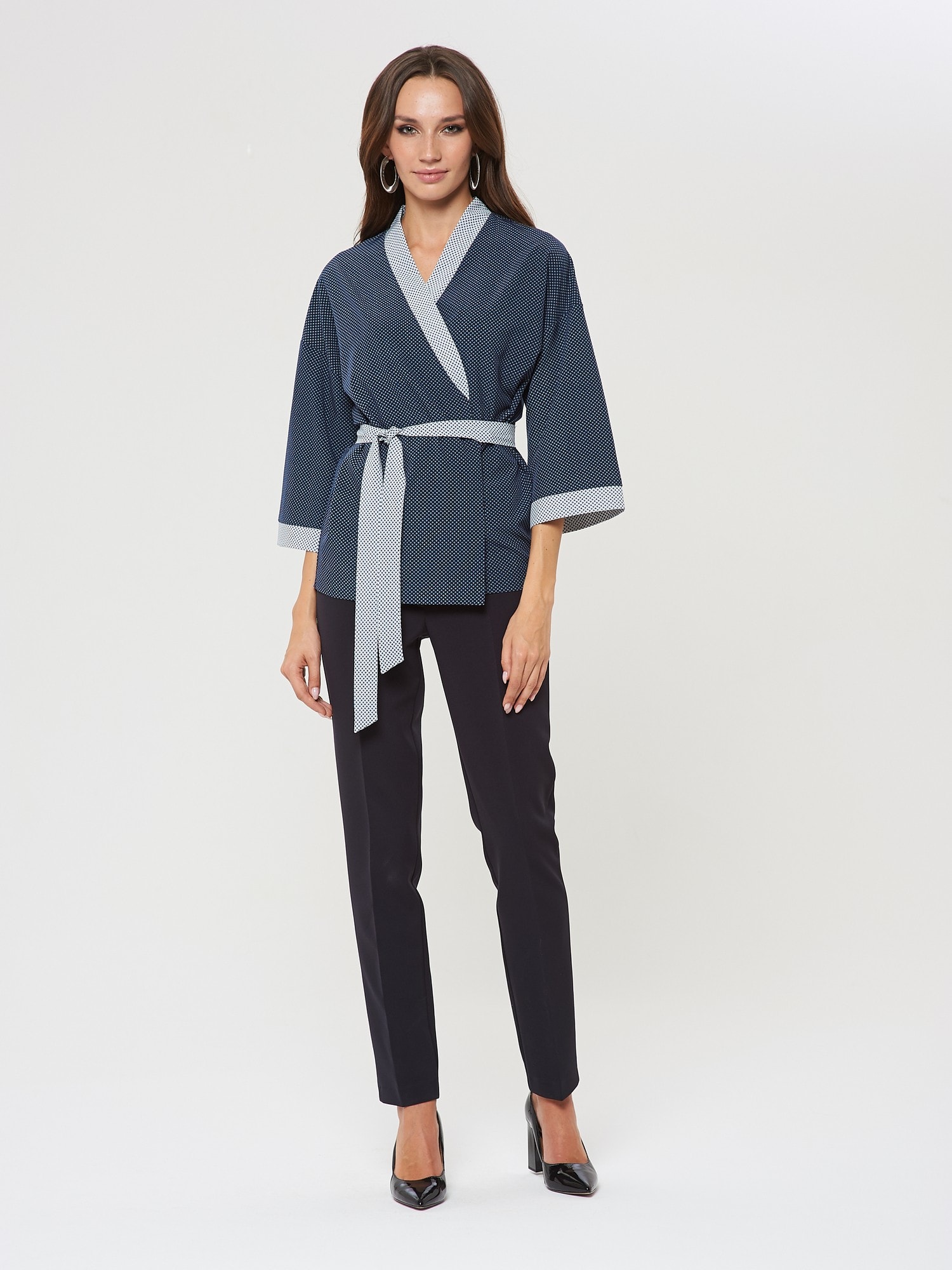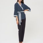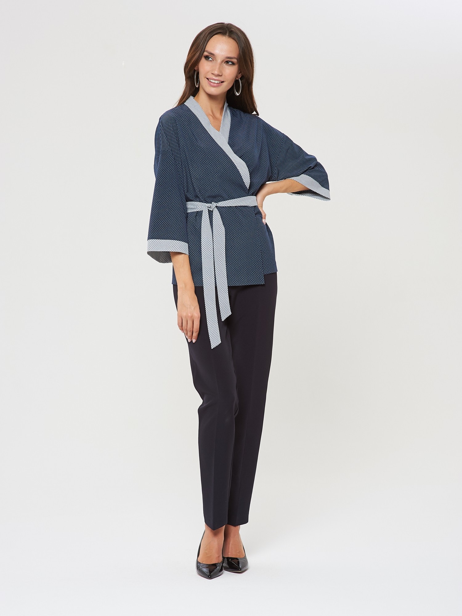 Блузка-кимоно в пижамном стиле с контрастной отделкой по горловине и рукавам. Эта блузка добавит расслабленности слишком сторогму образу. Пояс в комплекте.