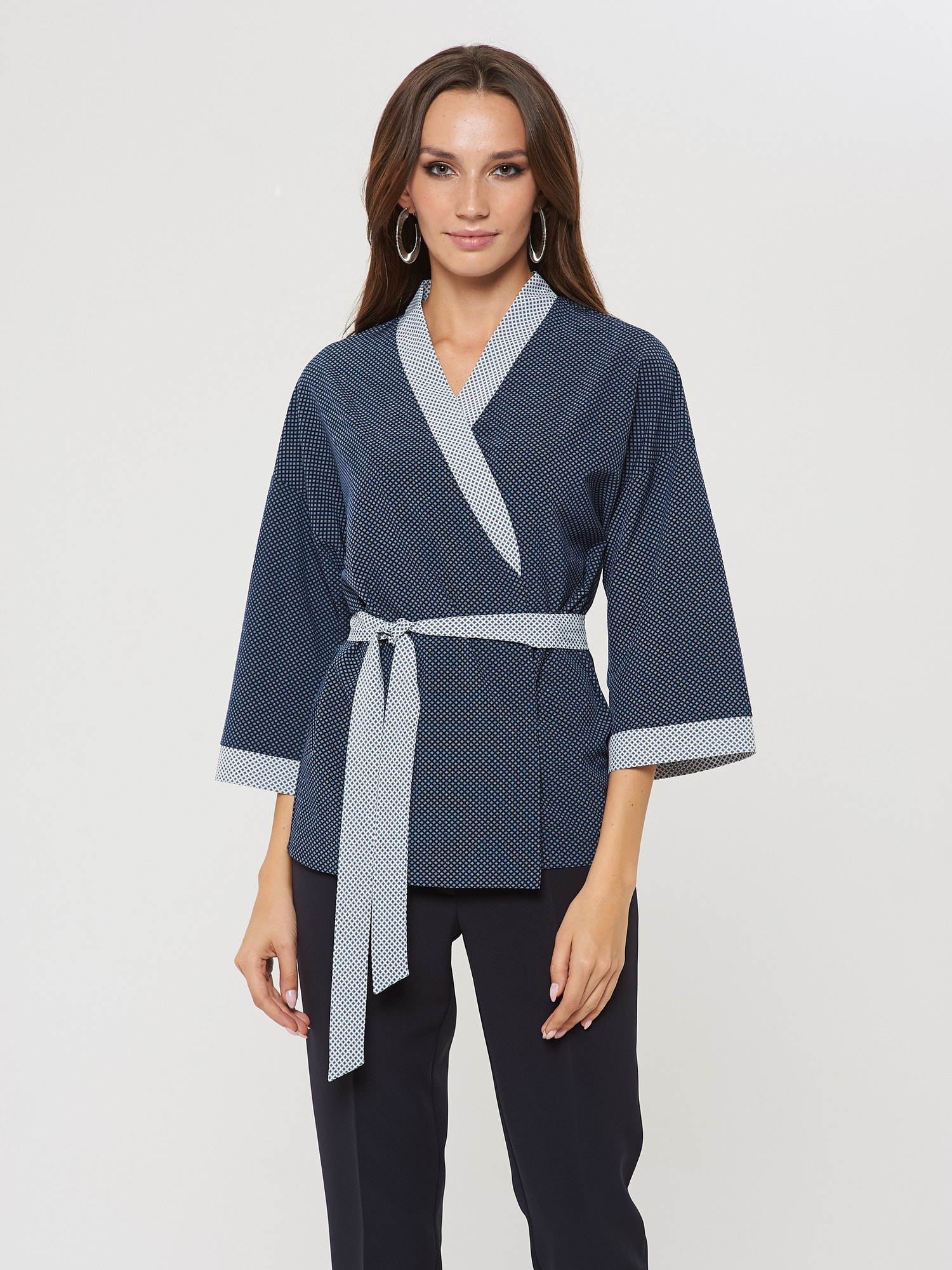 Блузка-кимоно в пижамном стиле с контрастной отделкой по горловине и рукавам. Эта блузка добавит расслабленности слишком сторогму образу. Пояс в комплекте.