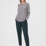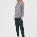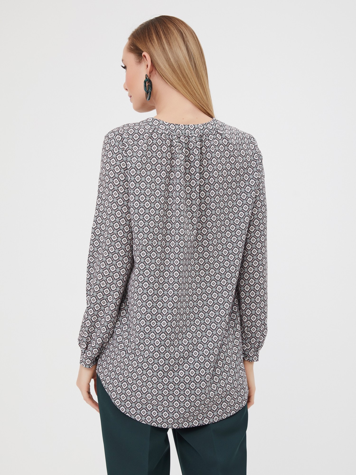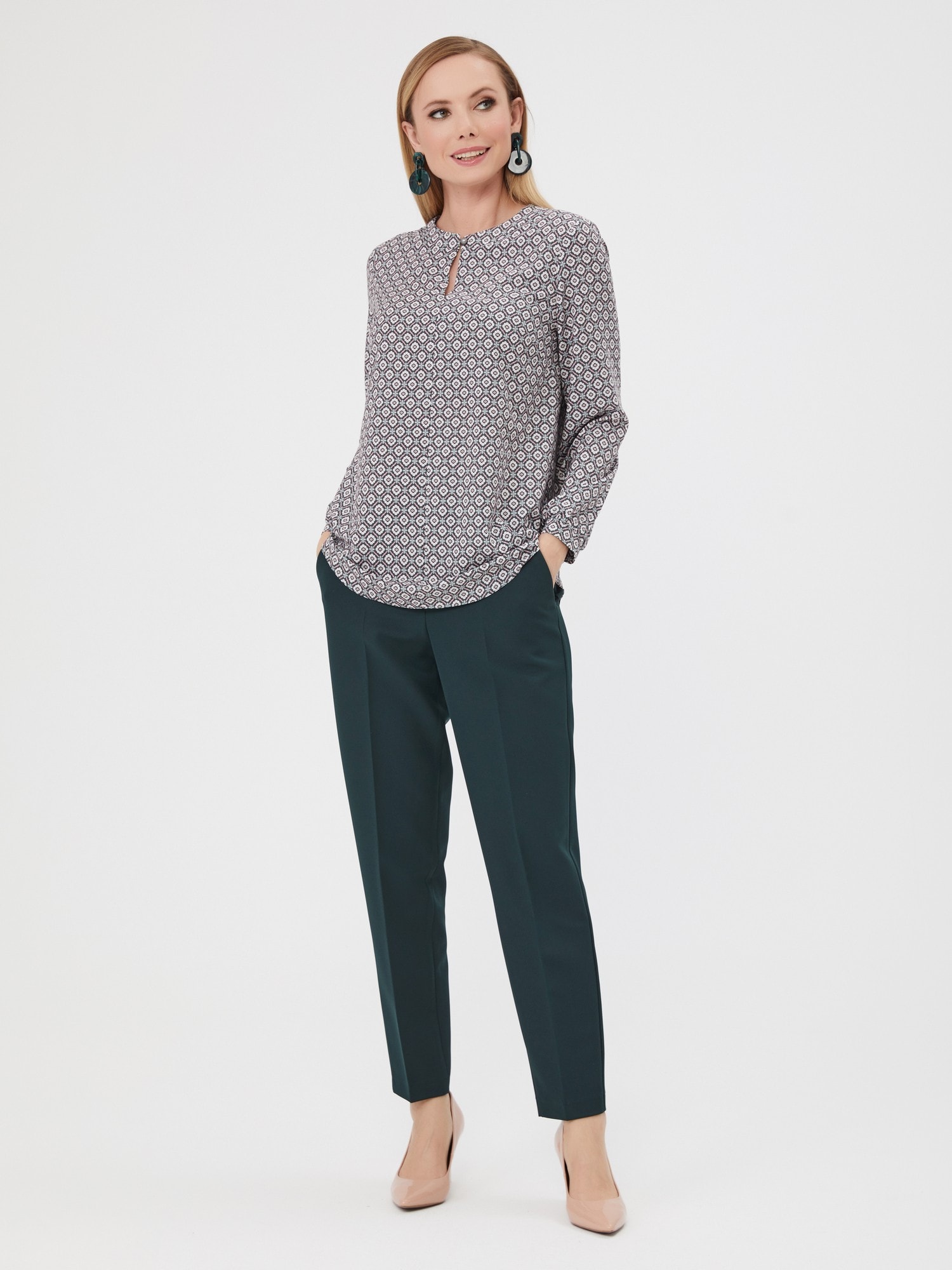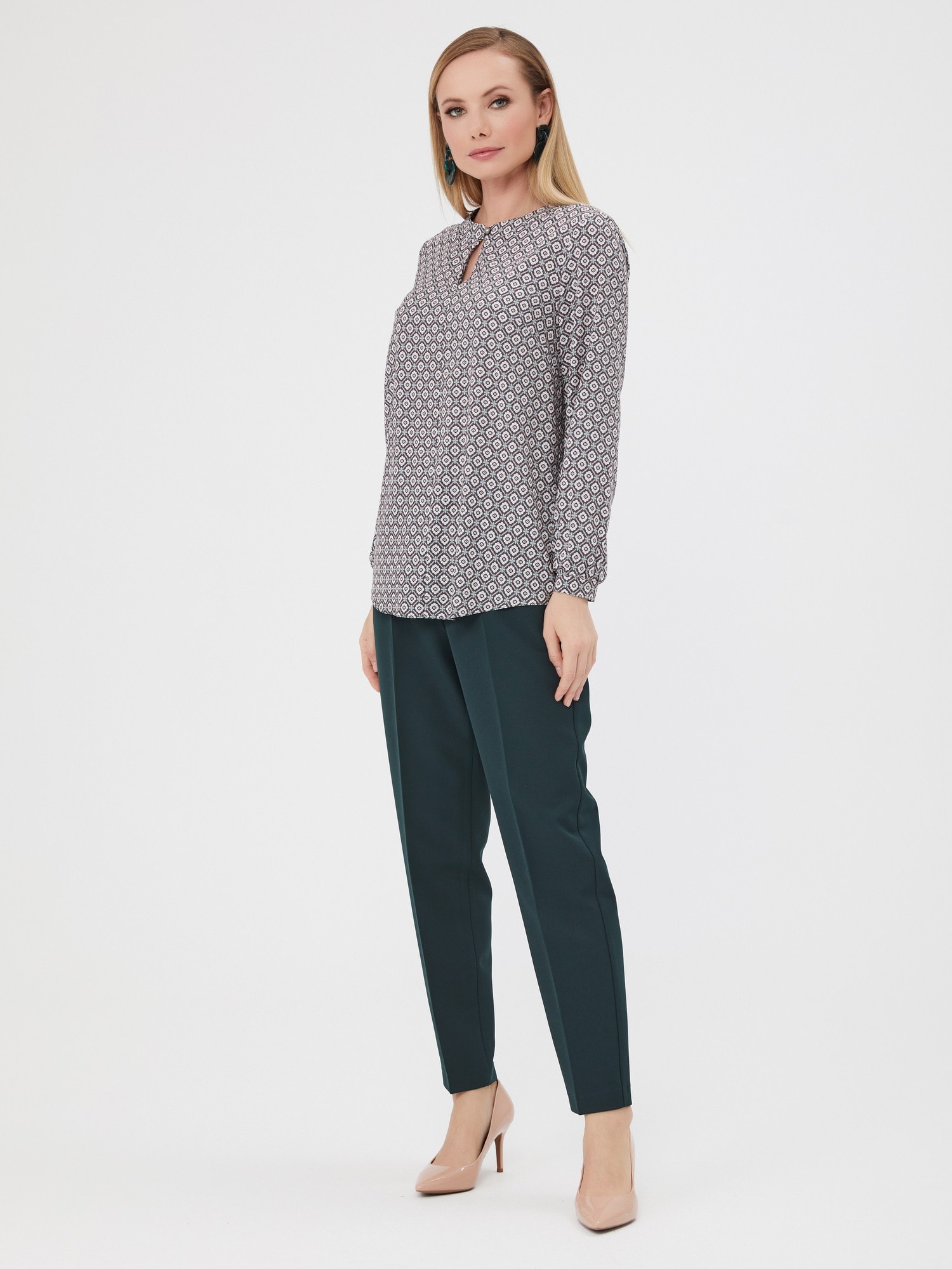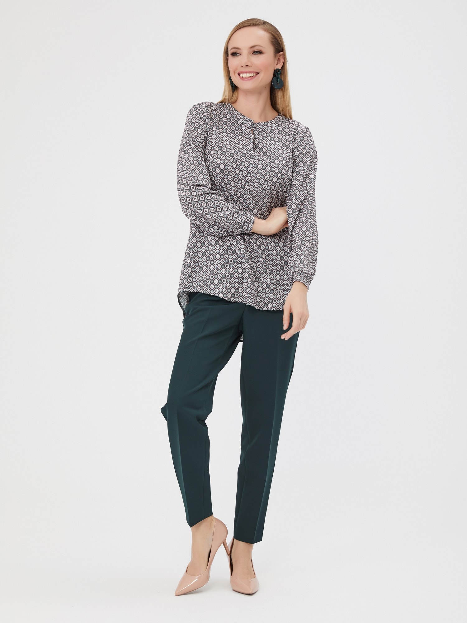 Блузка с застежкой петелькой спереди. Принт в зелено-розовых тонах. Небольшая сборка на спинке. Прекрасно дополняется Б-703 ИЗ(О) брюками и жилетом В-803 ИЗ(О)