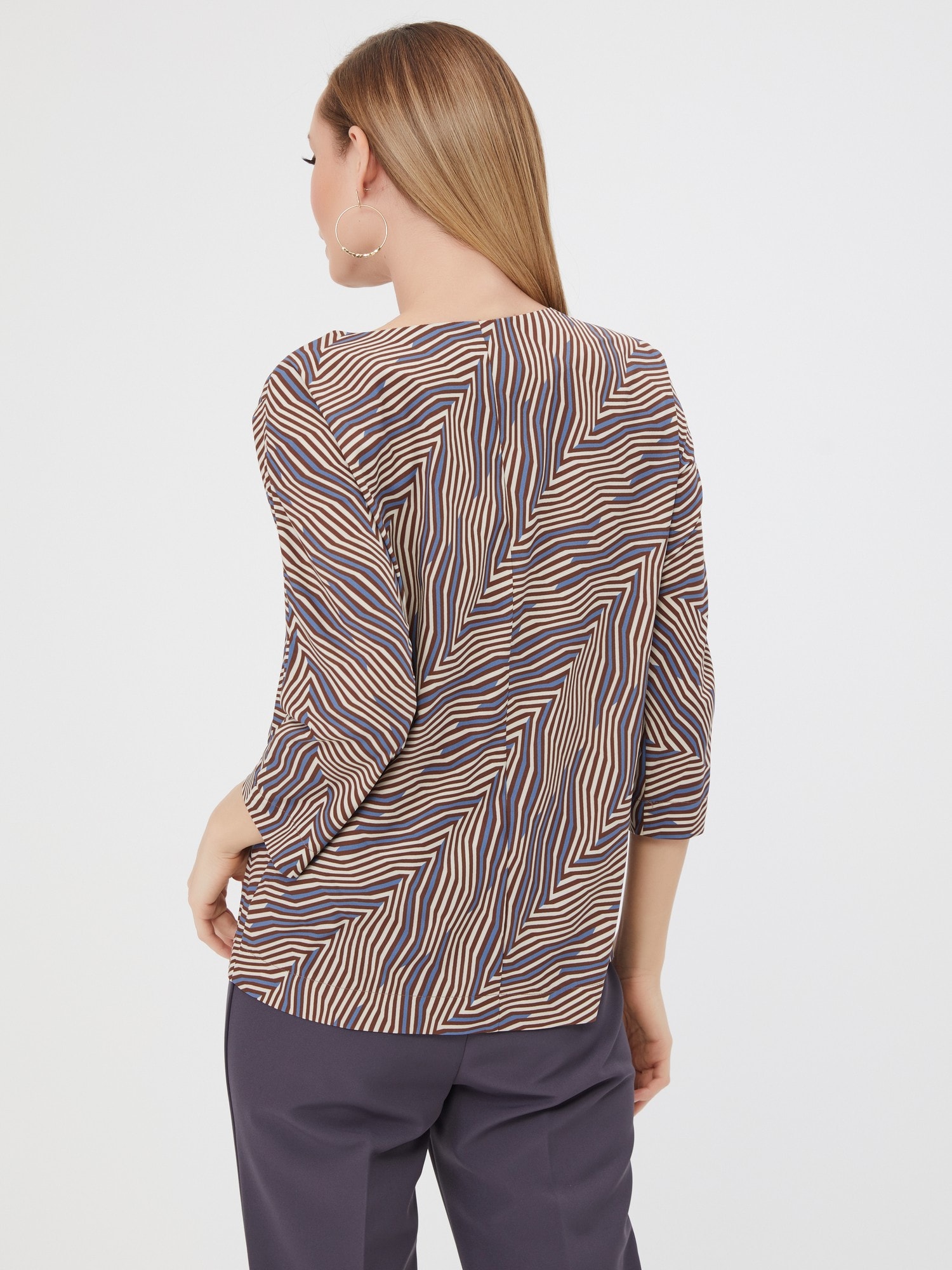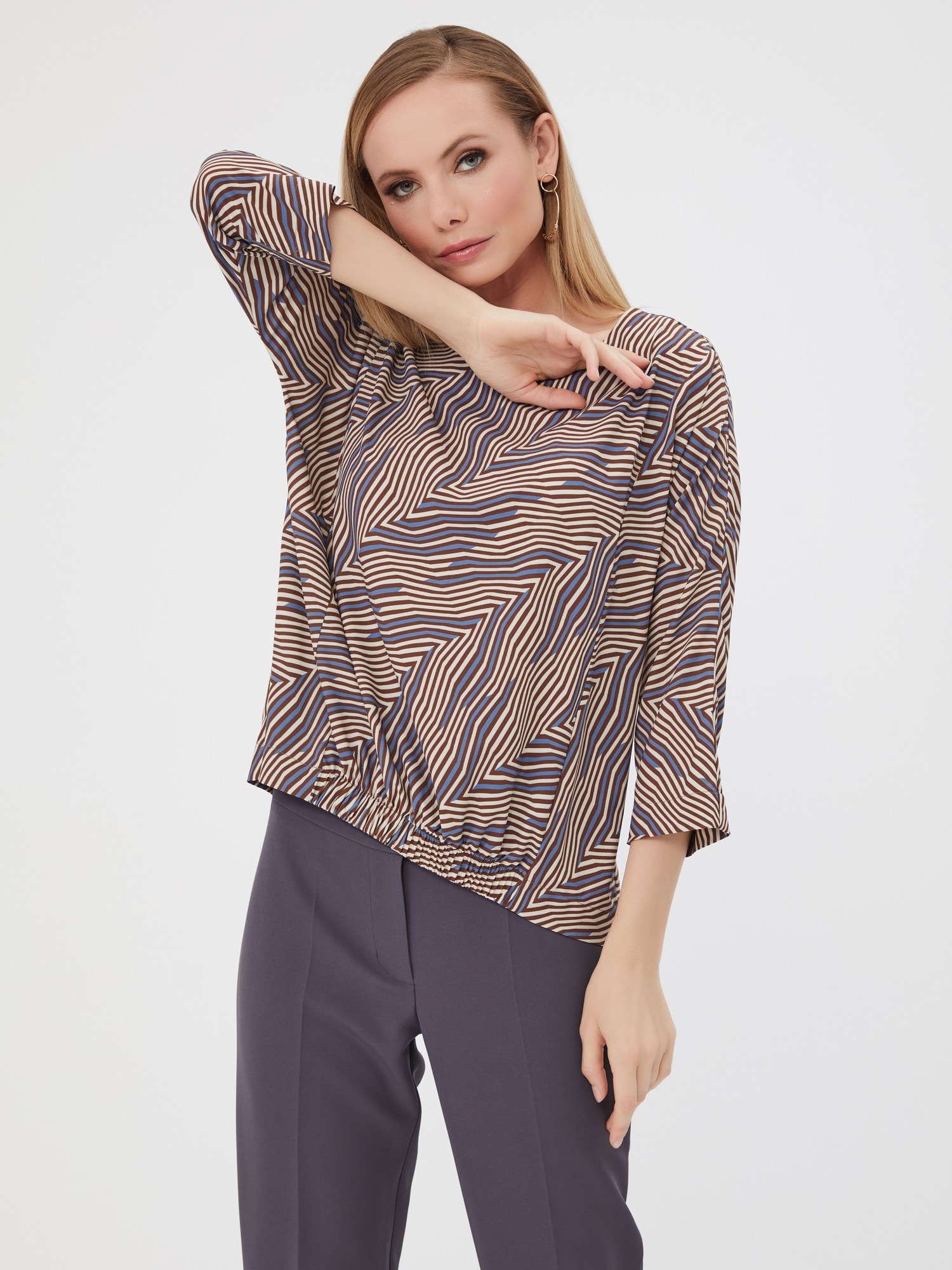 Блузка в геометрический принт из капсулы "Будапешт". Резинка по краю блузки. Дополните образ брюками Б-117 ФИТ(О) и жилетом В-86 ФИТ(О)