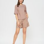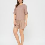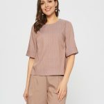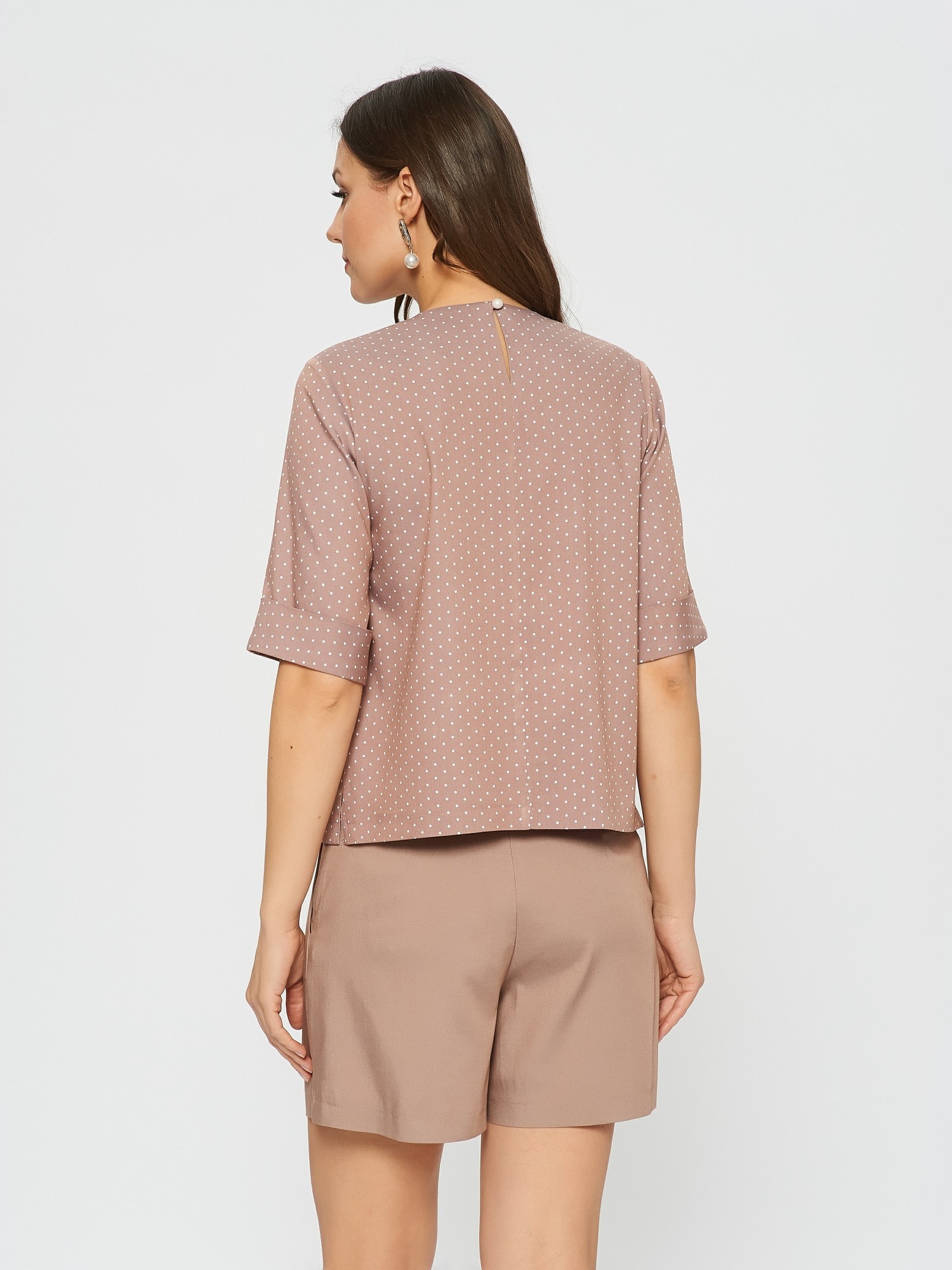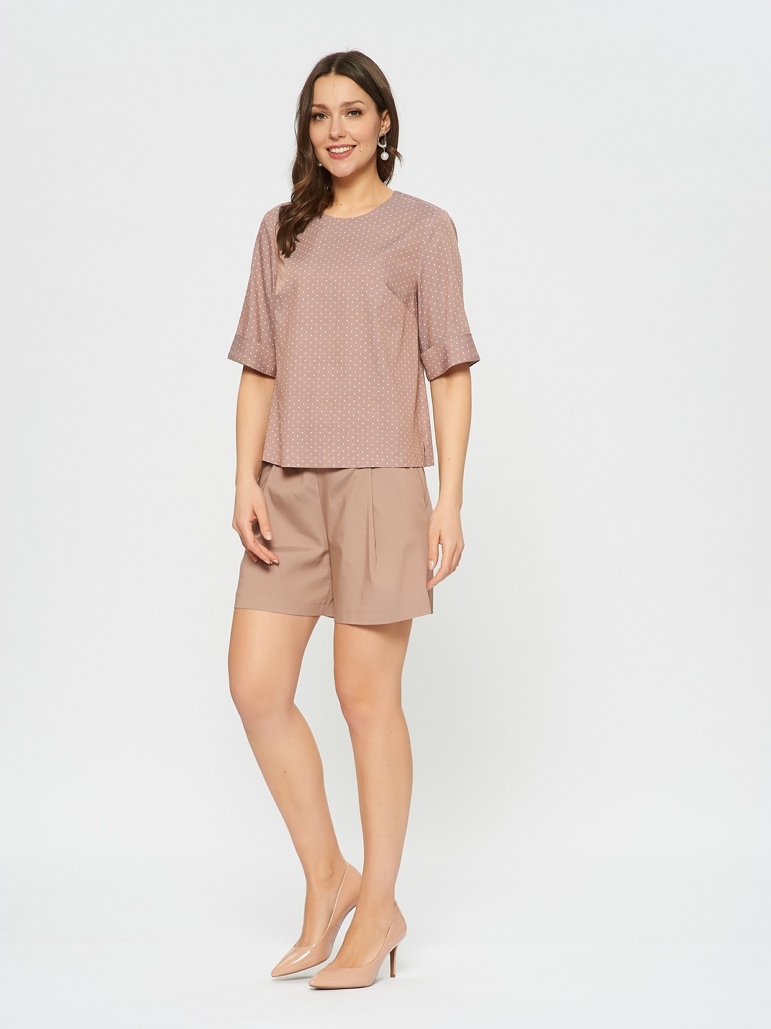 Универсальная блузка цвета чайной розы с круглым вырезом горловины. Рукава до локтя с манжетами. Дополните образ шортами Б-800 МИК2(В20) или брюками Б-01 МИК2(В20)
