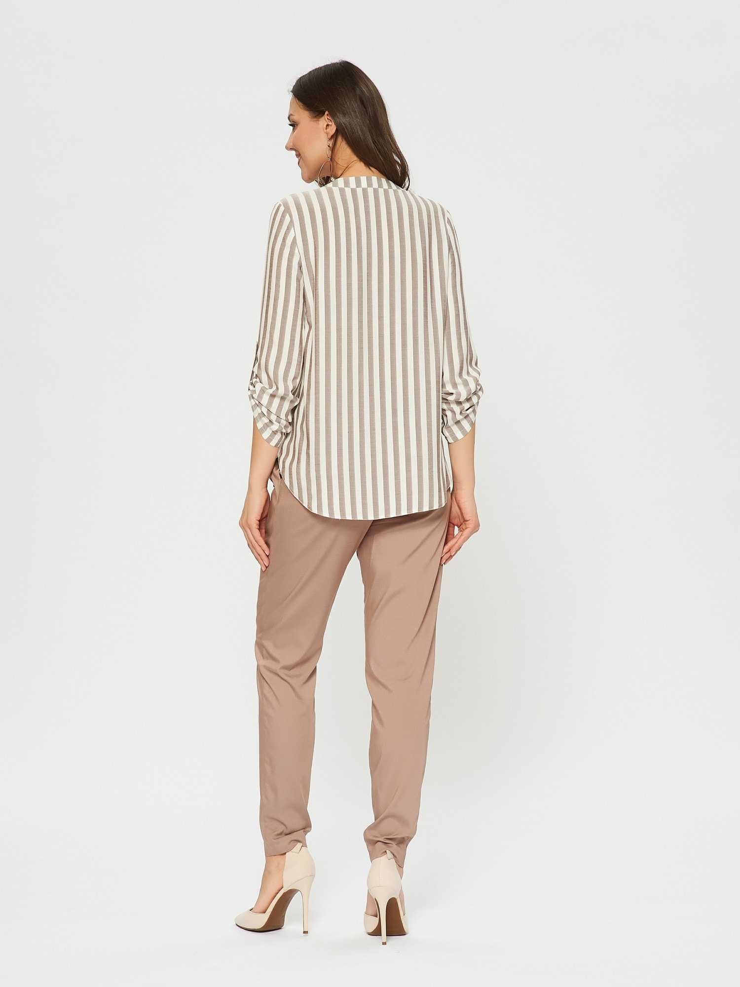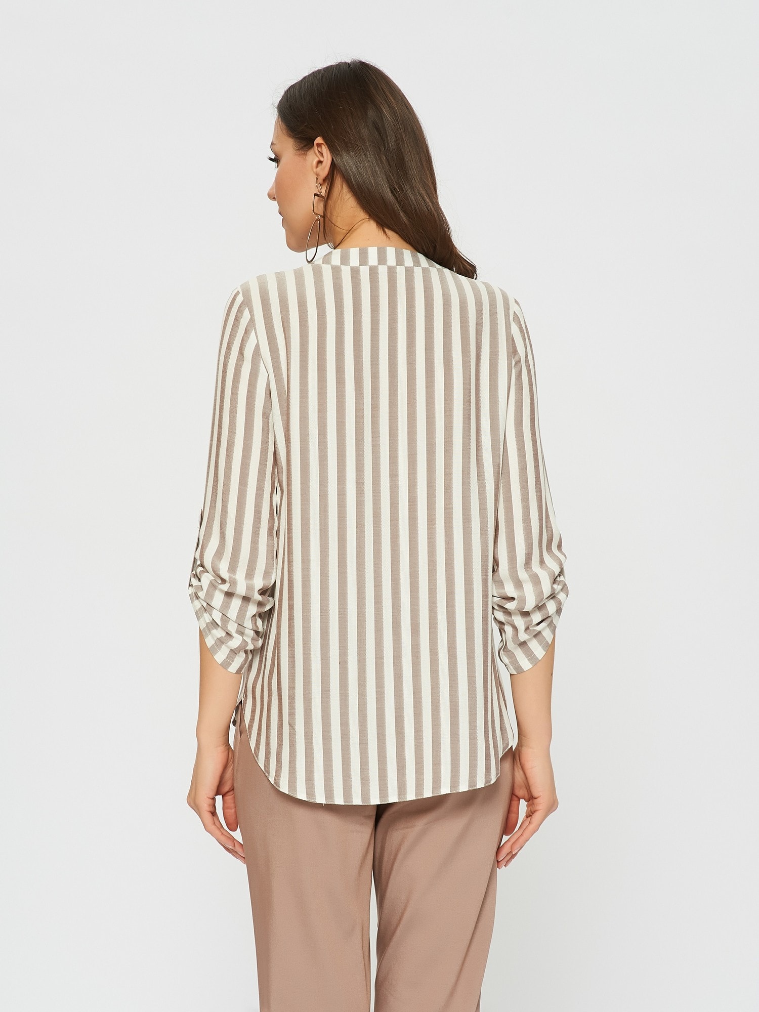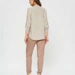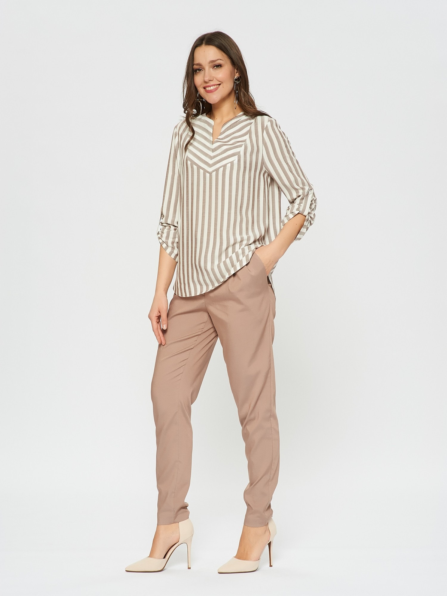 Блузка-хит сезона. Блузка с морским настроением благодаря цветовой гамме и принту "полоска". Особым элементом является разное направление полоски, хлястики для подвязывания рукавов и разрез на декольте. Дополните комплект брюками Б-01 МИК2(В20)