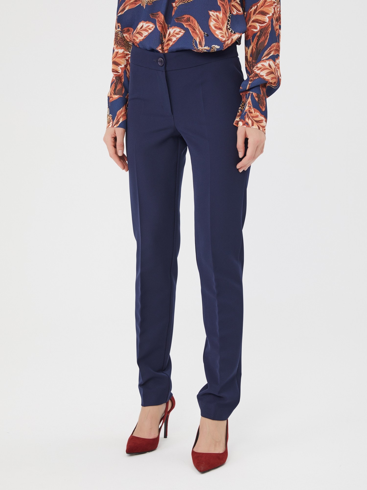 Синие базовые брюки. Слегка заужены. Дополните блузкой Д-923 Т(В20) и жилетом В-803 КБ(О) для полного комплекта на каждый день.