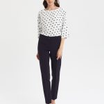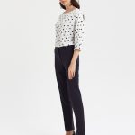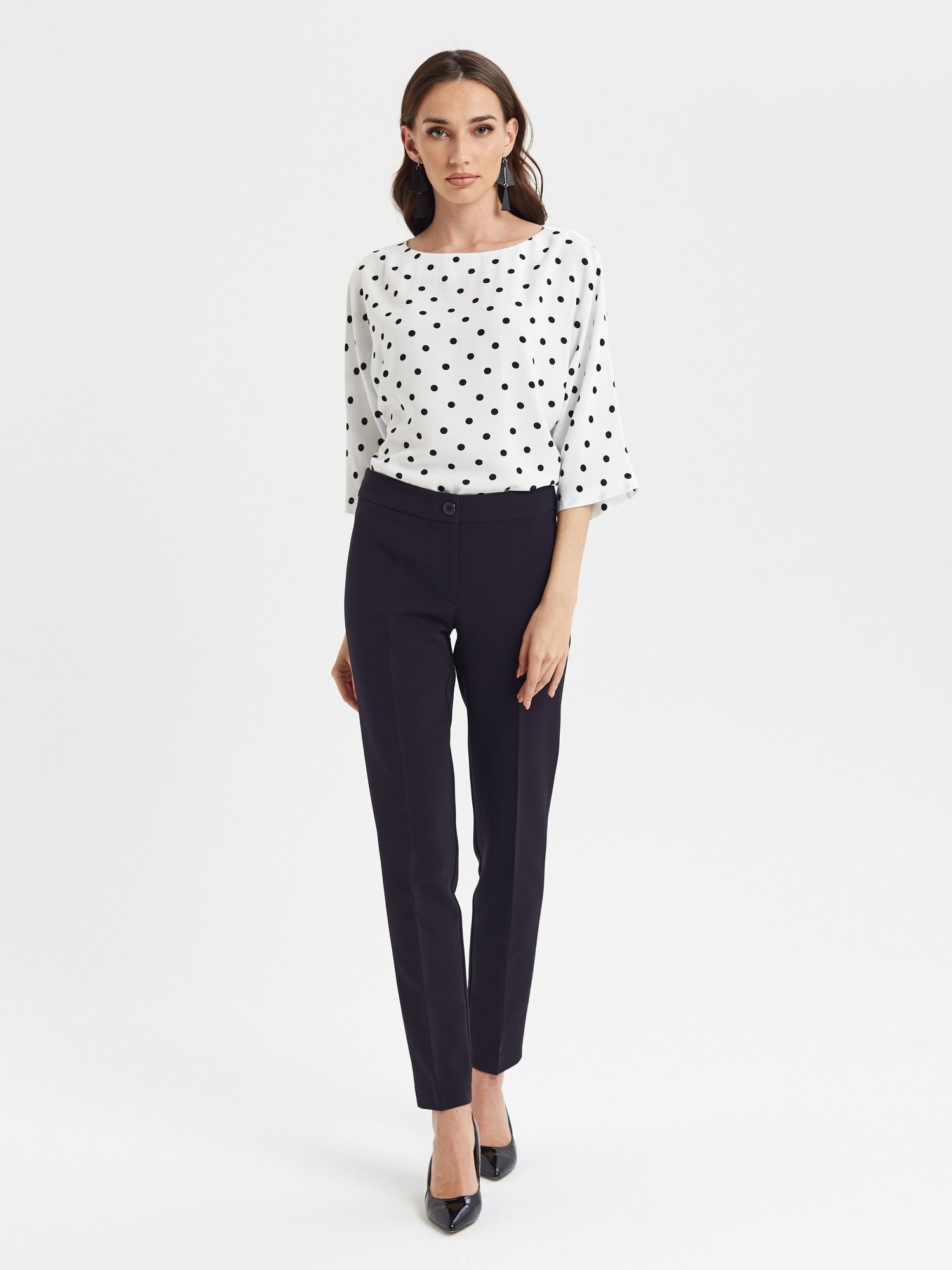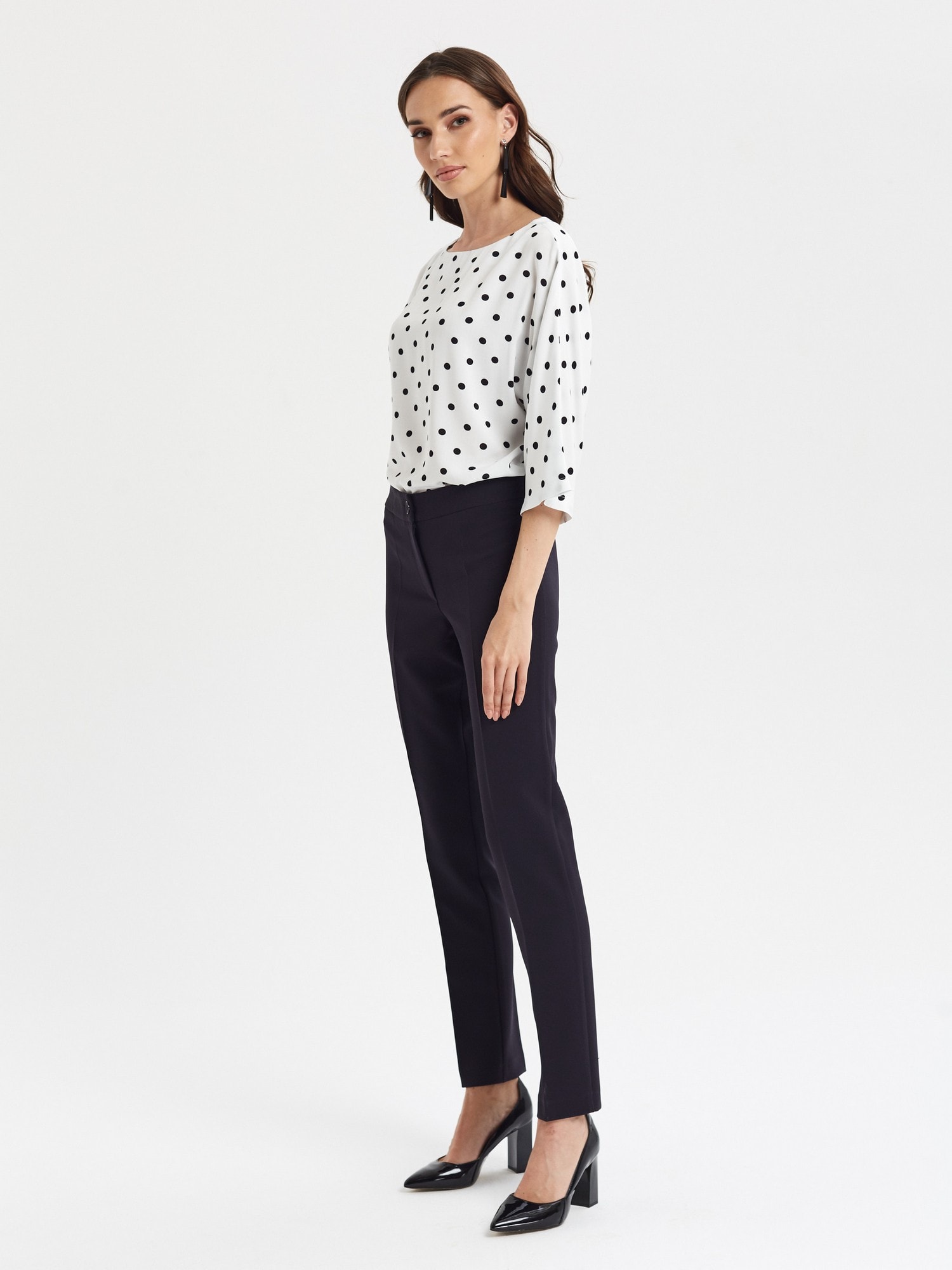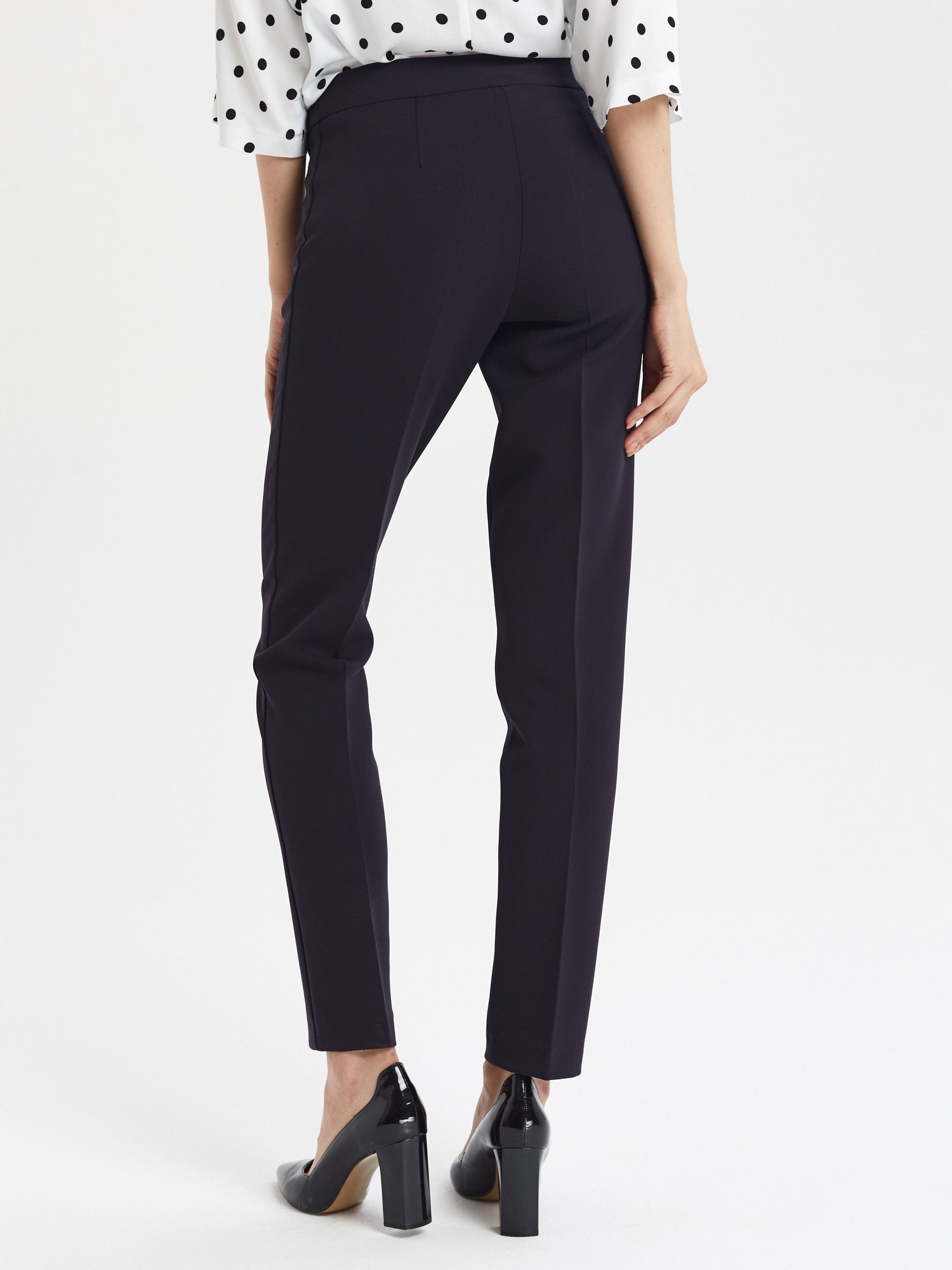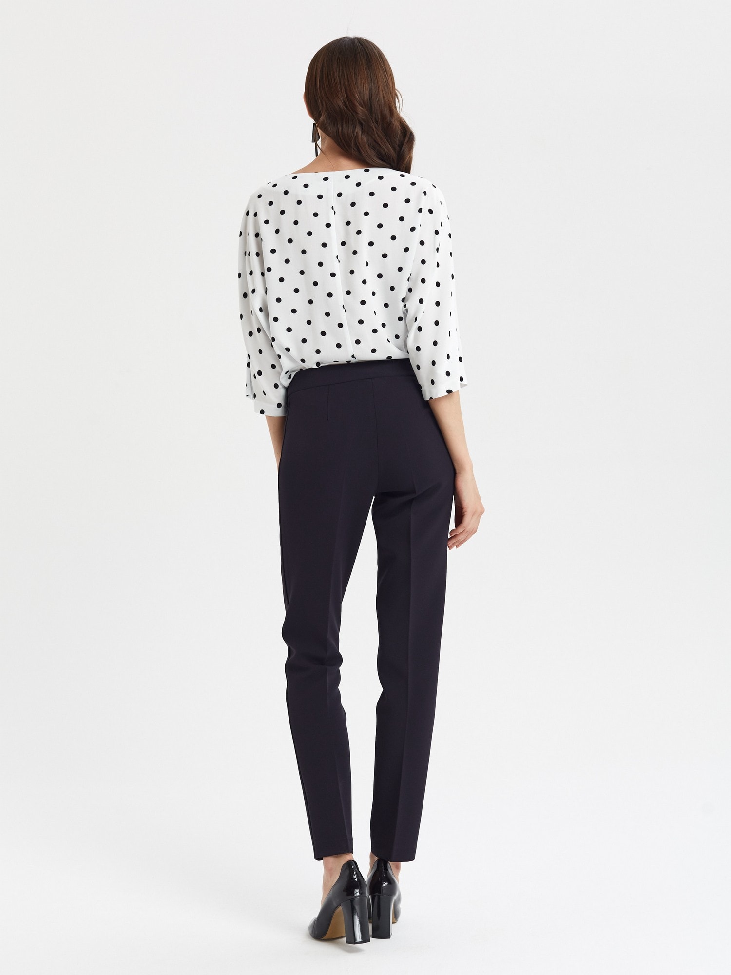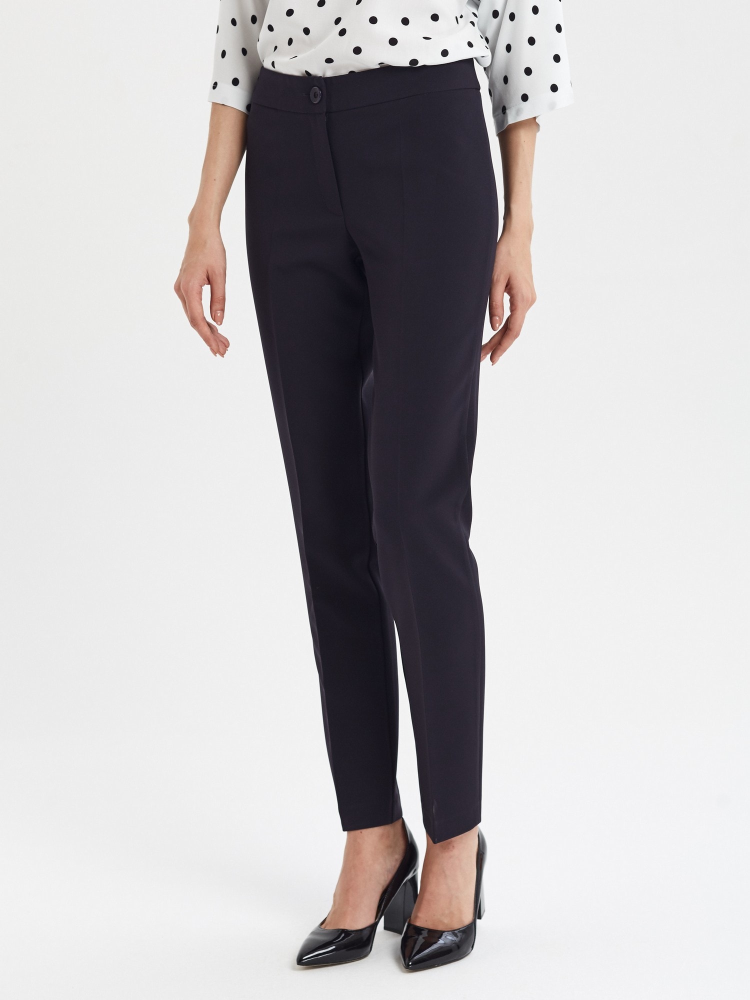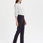 48% вискоза, 48% полиэстер, 4% эластан Размеры 42-52 Рост модели 178 см Элегантные черные брюки средней посадки на кокетке - отличный способ подчеркнуть женственность делового образа. Прямой силуэт брючин, достаточная длина, - подчеркнут традиционность look-a. Классическая рубашка, шпильки, и безупречный рабочий сет готов. Образ на фото дополнен блузкой Д-801 ДР(О9)