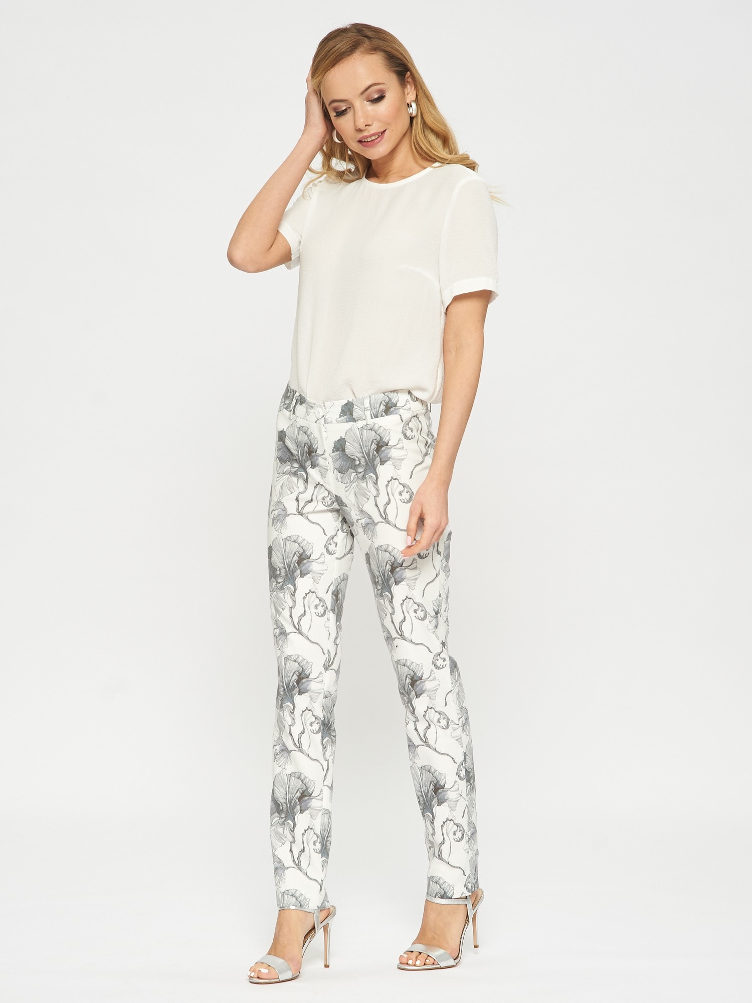 Брюки с цветочным принтом— самый яркий тренд весны 2020. Зауженные брючины, притачной пояс. Для полного комплекта сочетайте с жакетом В-810 САД(В20)