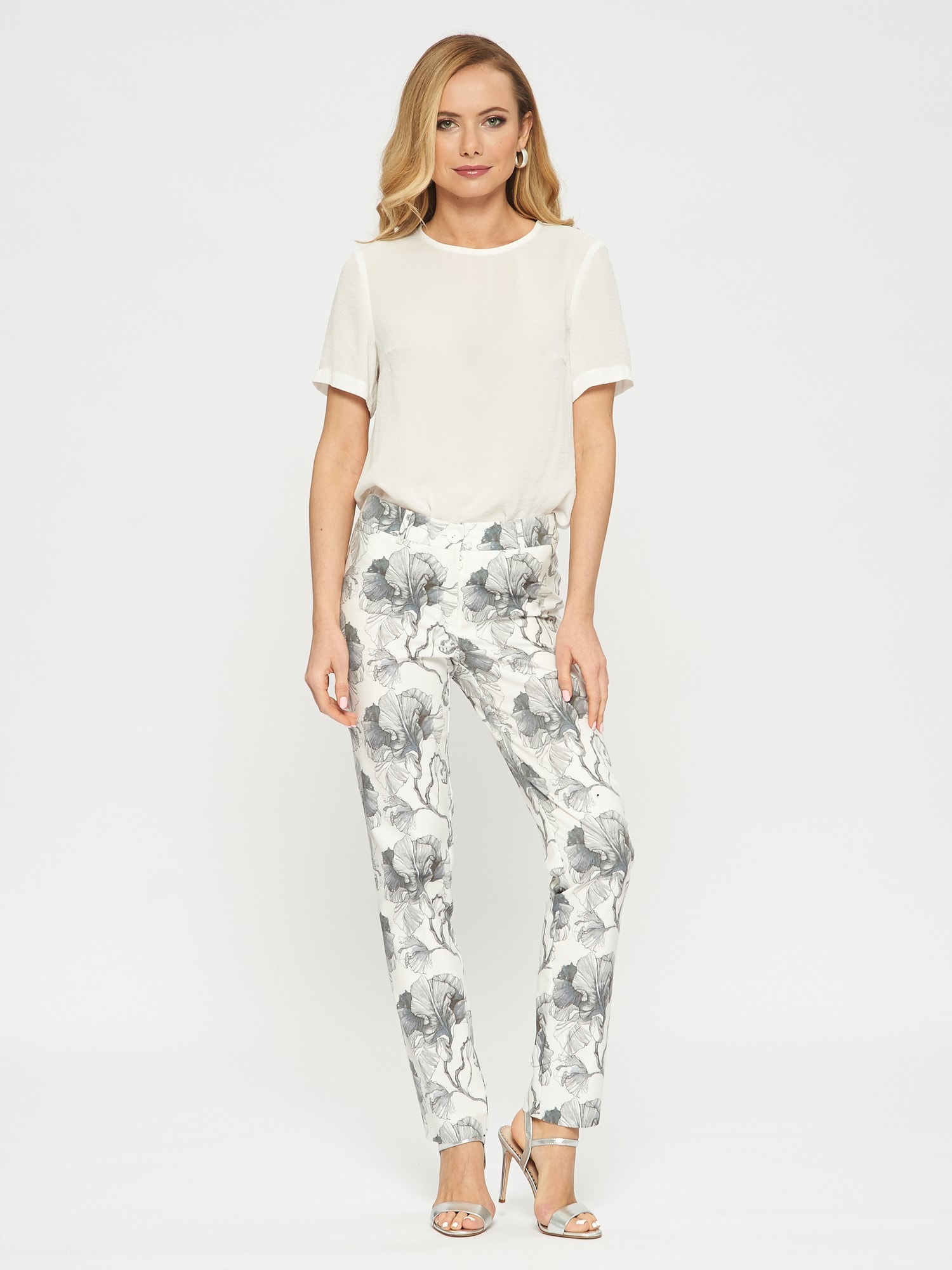 Брюки с цветочным принтом— самый яркий тренд весны 2020. Зауженные брючины, притачной пояс. Для полного комплекта сочетайте с жакетом В-810 САД(В20)