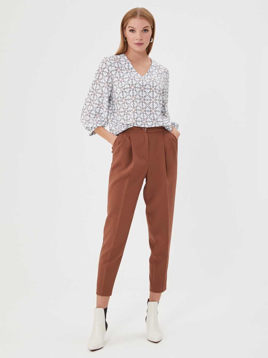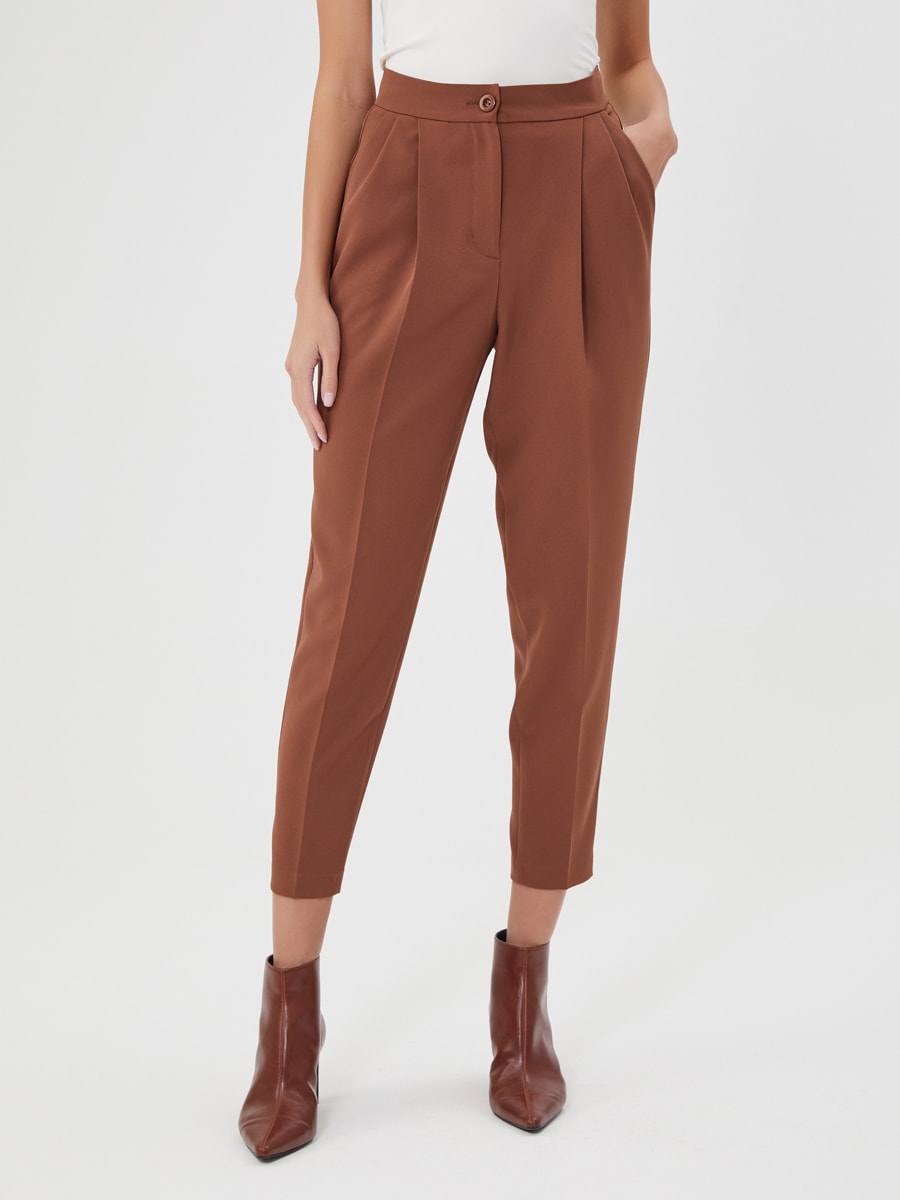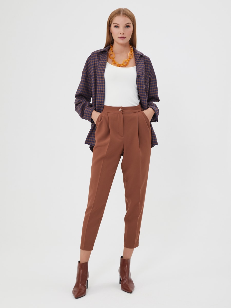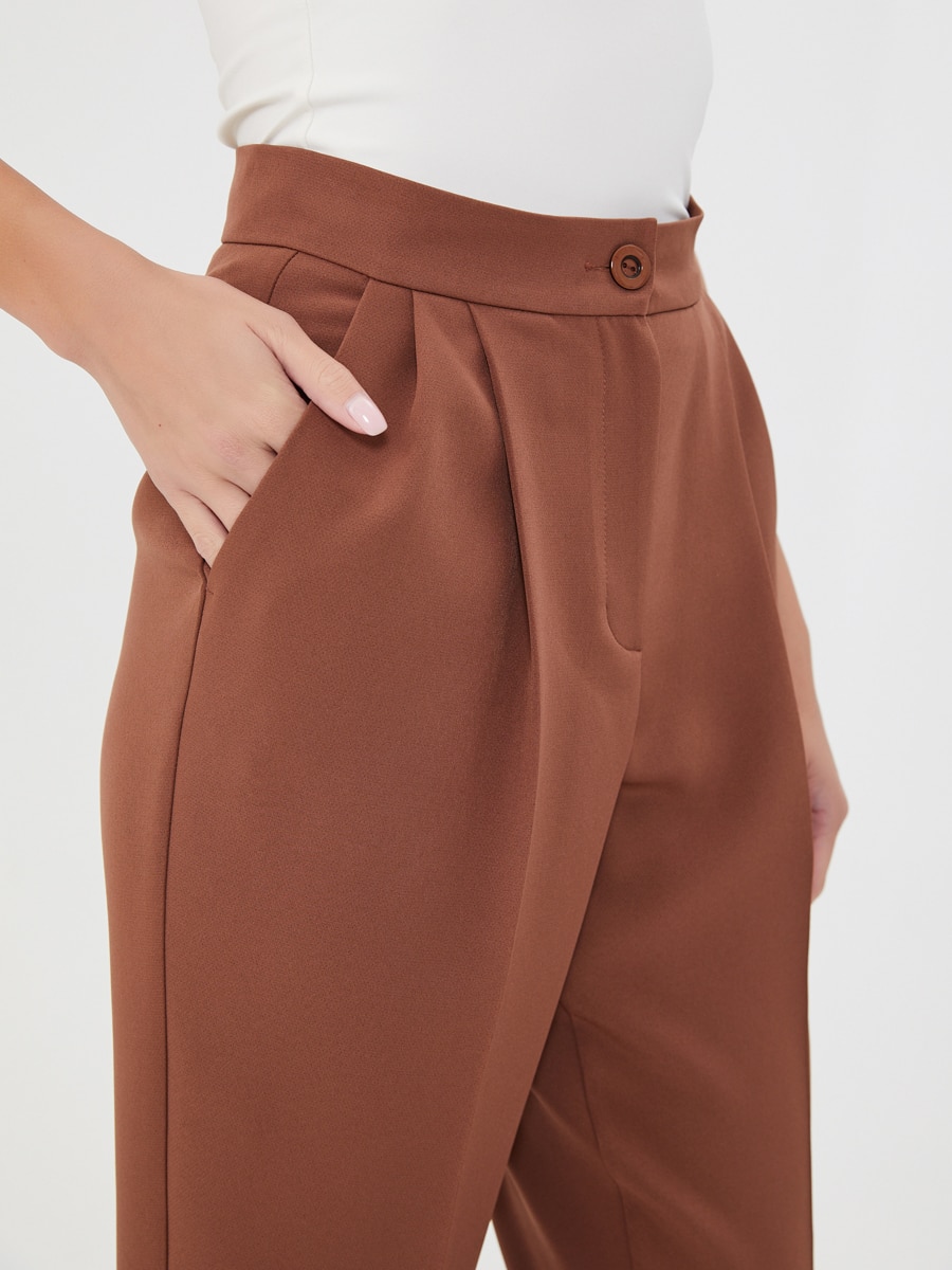 Описание: Брюки в цвете корица с защипами и заутюженными стрелками. Актуальный крой и цвет. Дополните рубашкой Д-2010 ВВ(О)