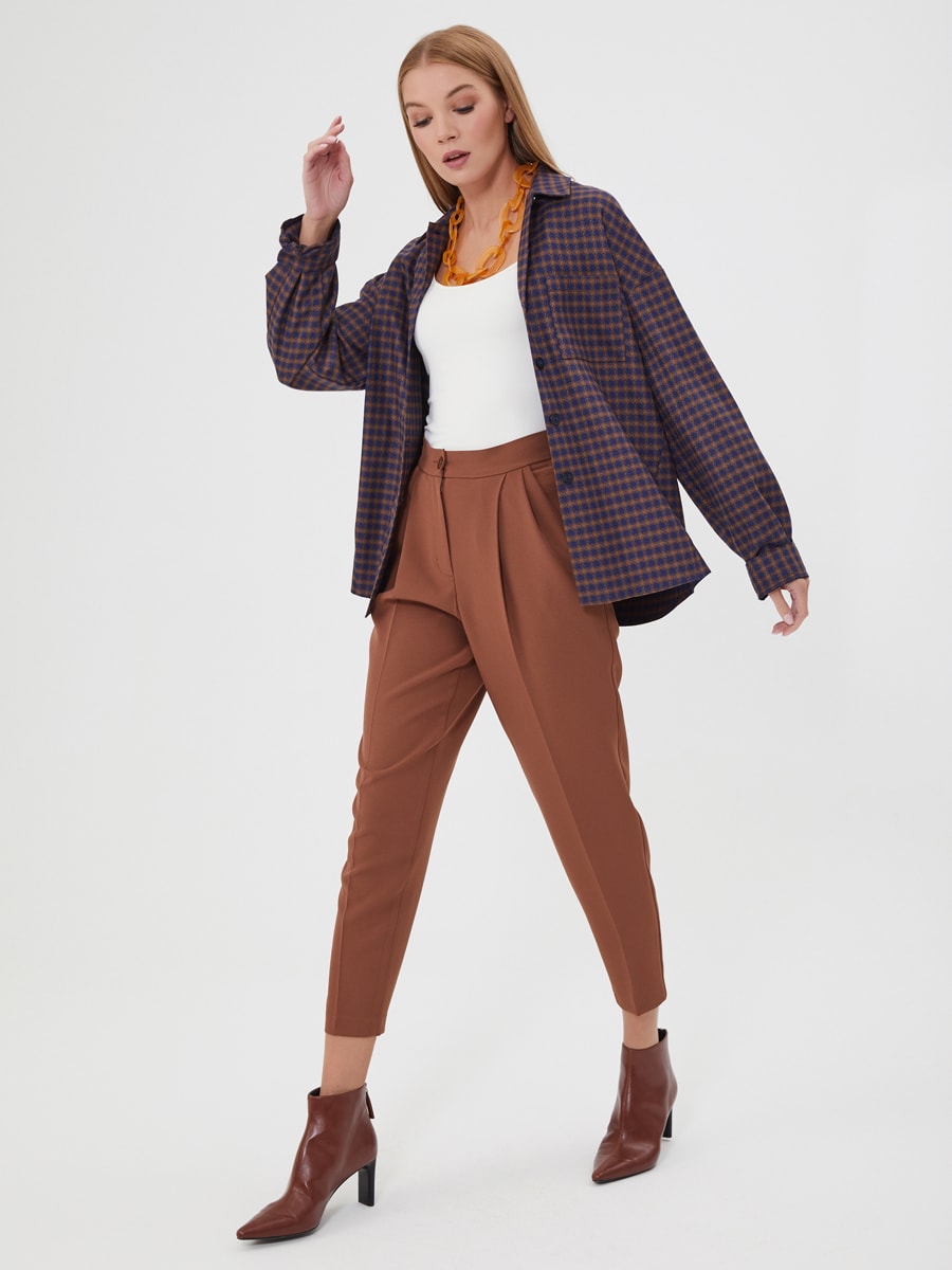 Описание: Брюки в цвете корица с защипами и заутюженными стрелками. Актуальный крой и цвет. Дополните рубашкой Д-2010 ВВ(О)