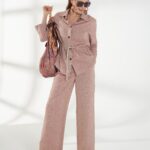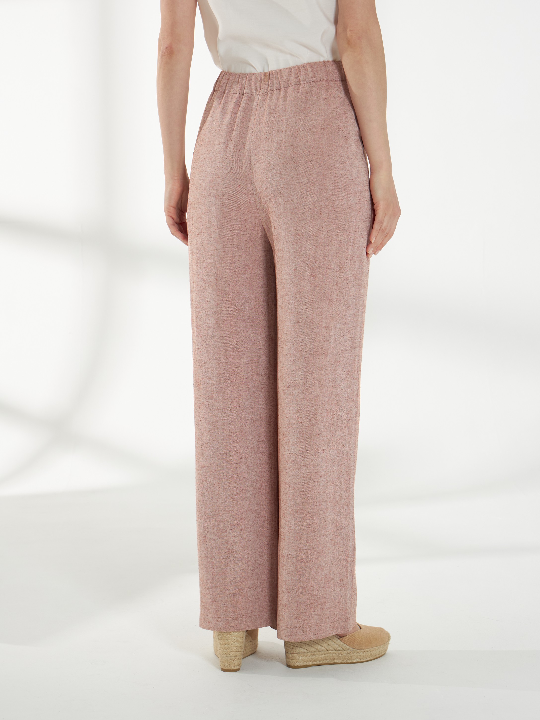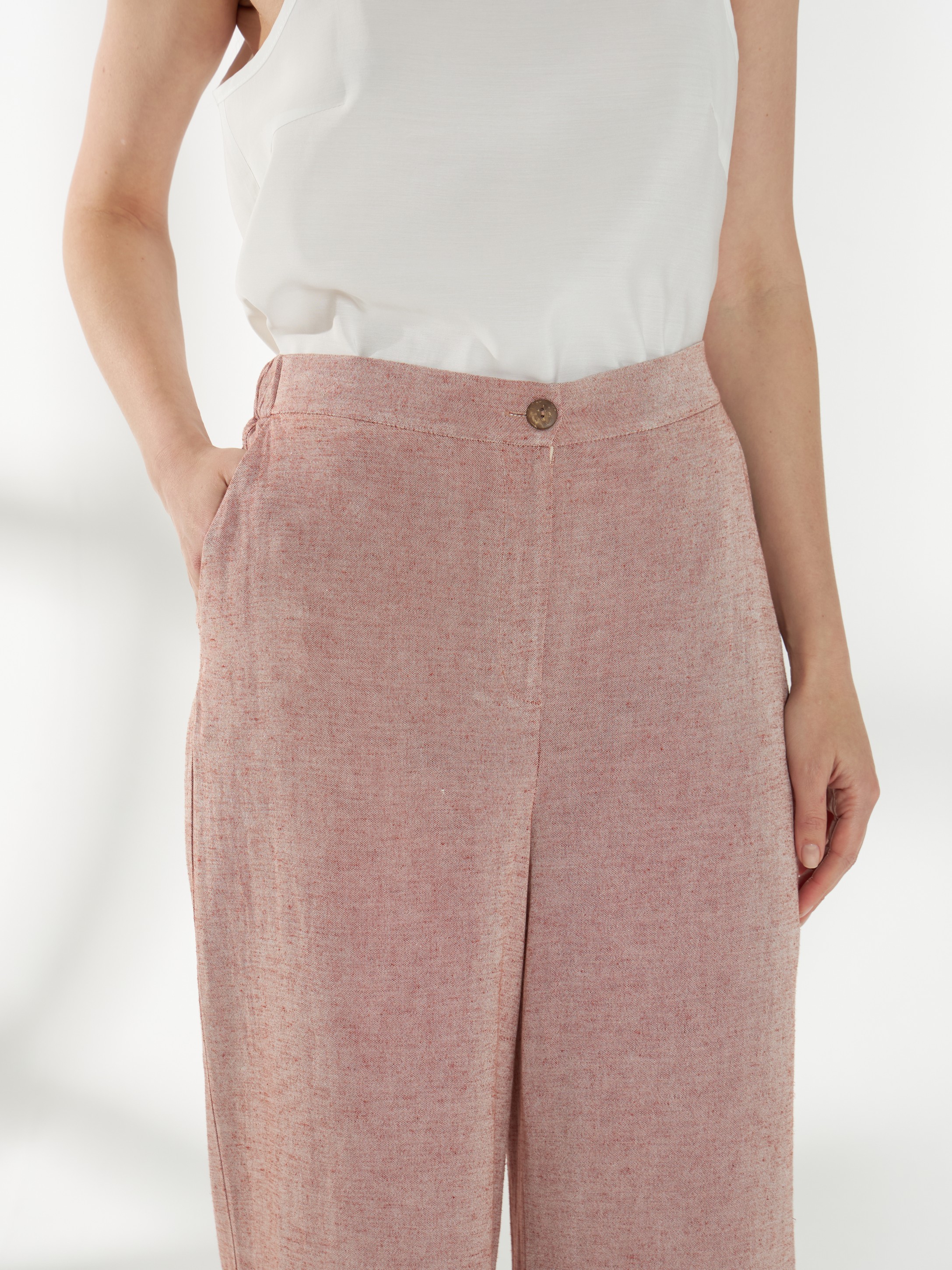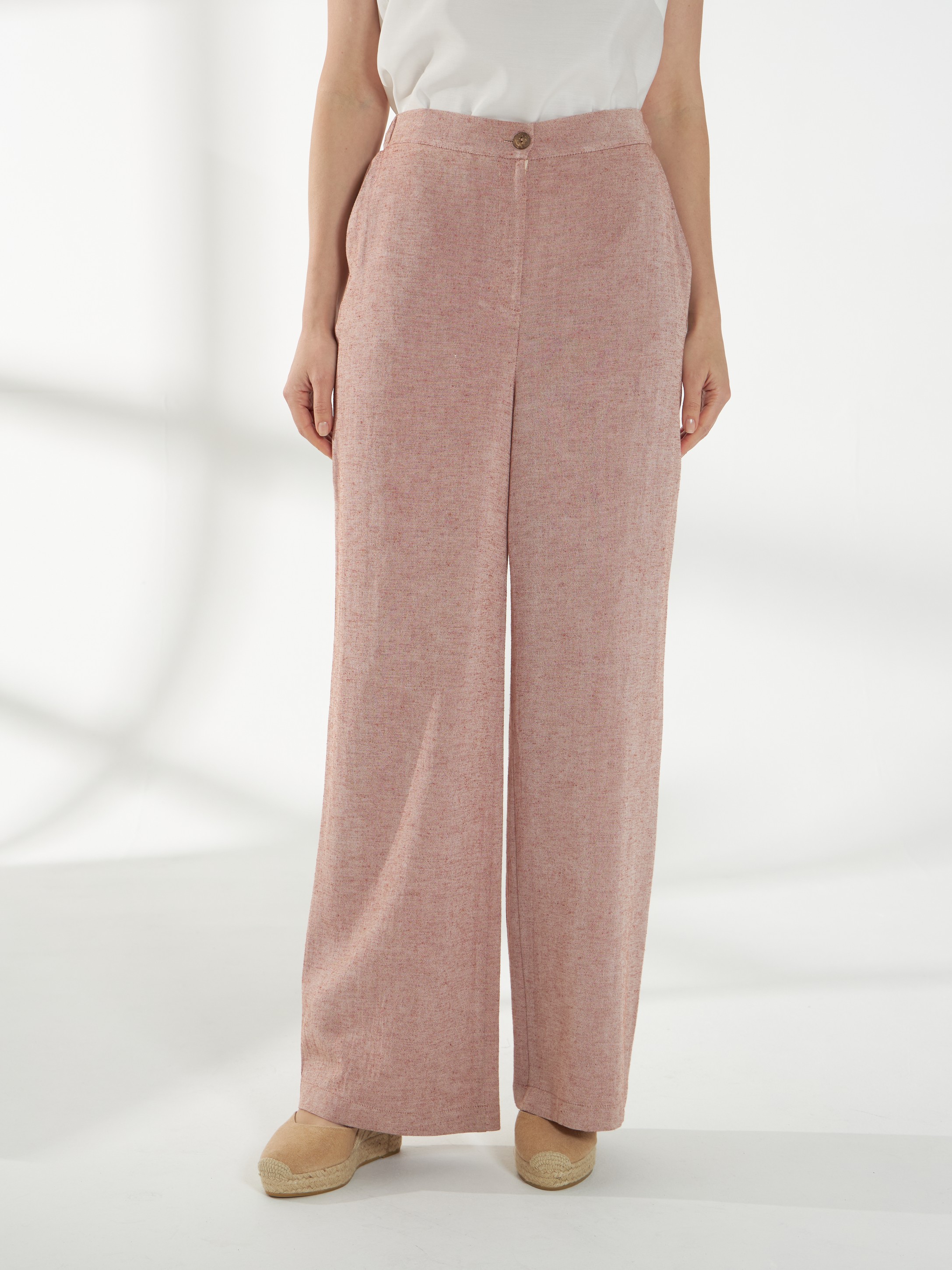 Широкие брюки из смесовой костюмной ткани со льном, в оттенке розового песка. Свободный силуэт, по бокам предусмотрены функциональные карманы, спереди-застежка-гульфик, сзади-резинка в поясе для удобной посадки. Модель легко драпируется и сохраняет аккуратный вид в течение дня. На фото брюки представлена с блузкой Д-258 РПК(В6).