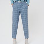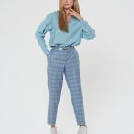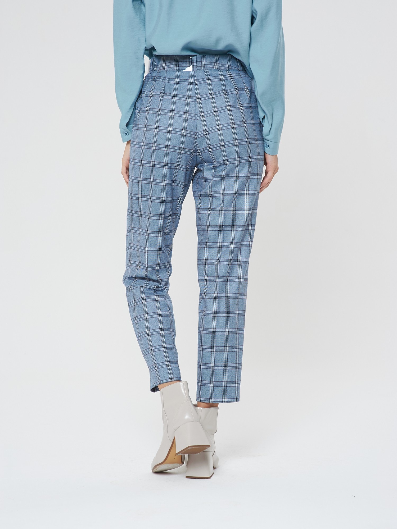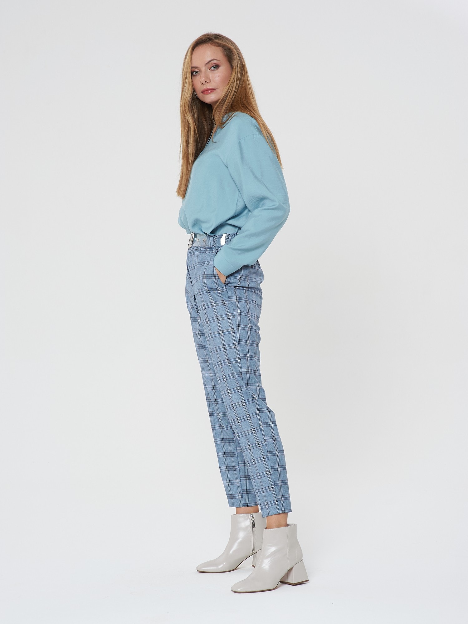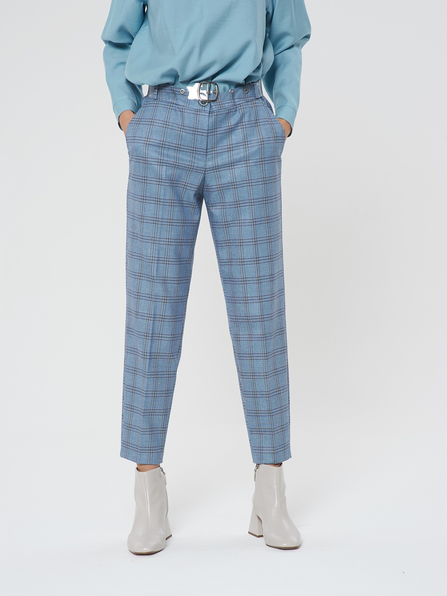 Брюки в клетку василькового оттенка. Прямой силуэт, карманы в боковых швах и шлевки для пояса. Прямой крой не будет стеснять движений на протяжении всего дня. Дополните блузкой Д-926 ОТБ(В20)