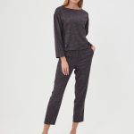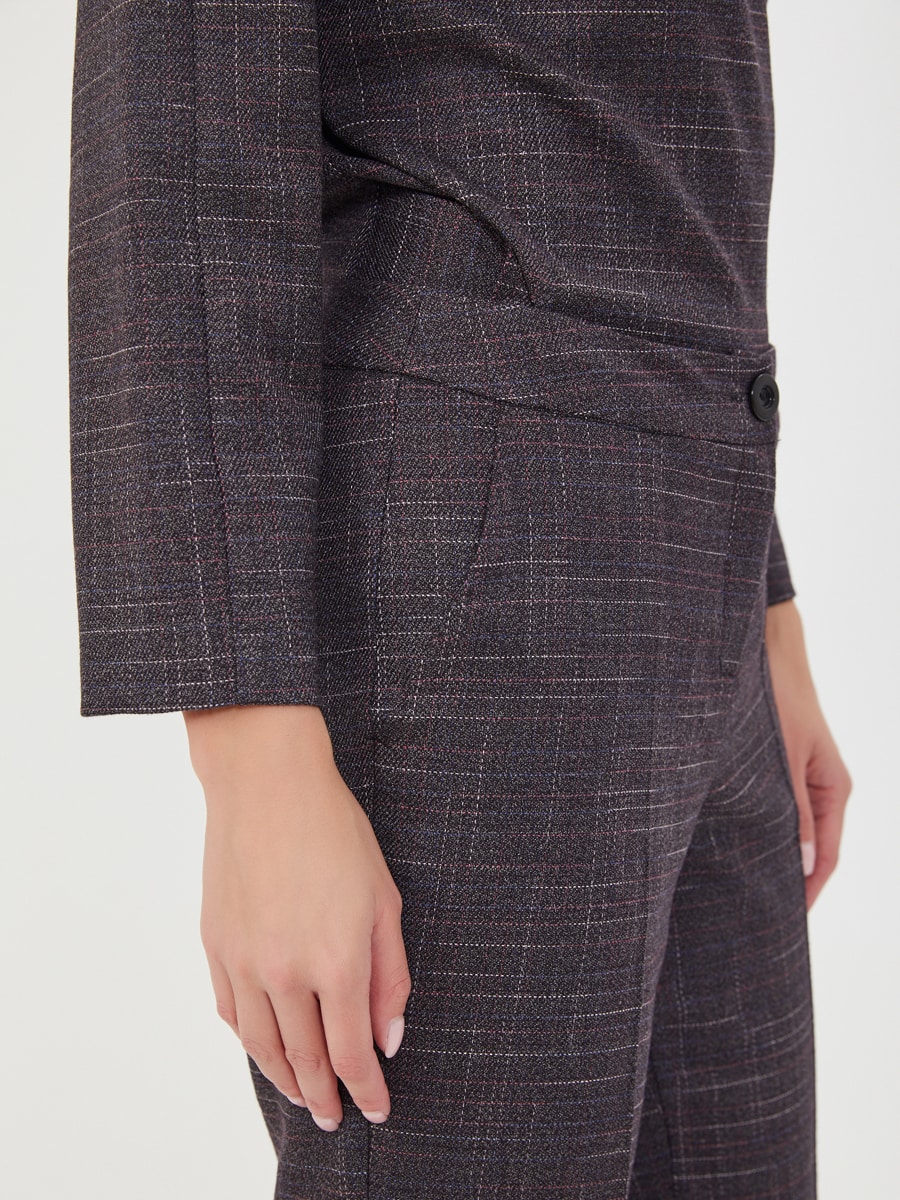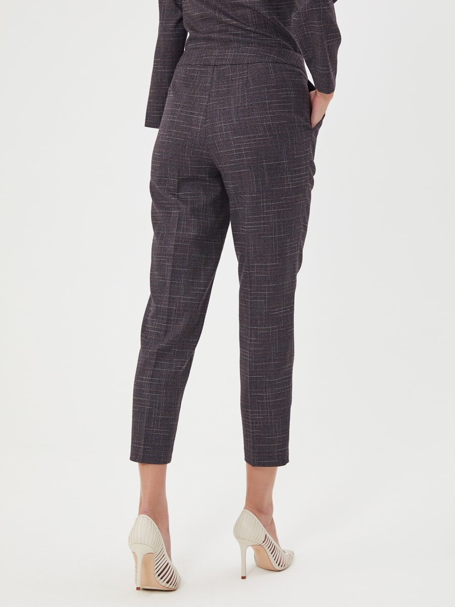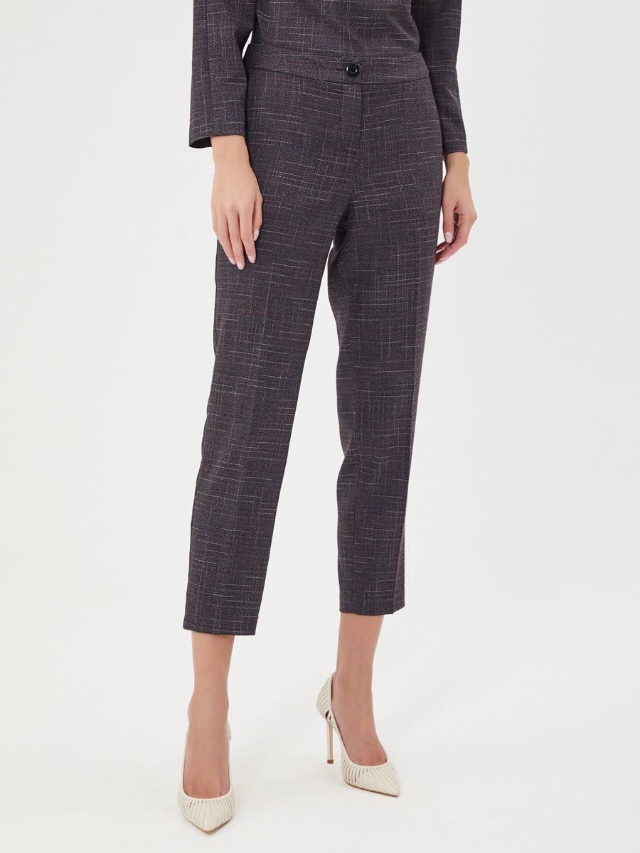 Описание: Брюки из серо-фиолетовой фактурной ткани. Карманы в боковых швах, классическая модель. Образ на фото дополнен блузкой Д-2009 МЖ(О) из той же ткани.