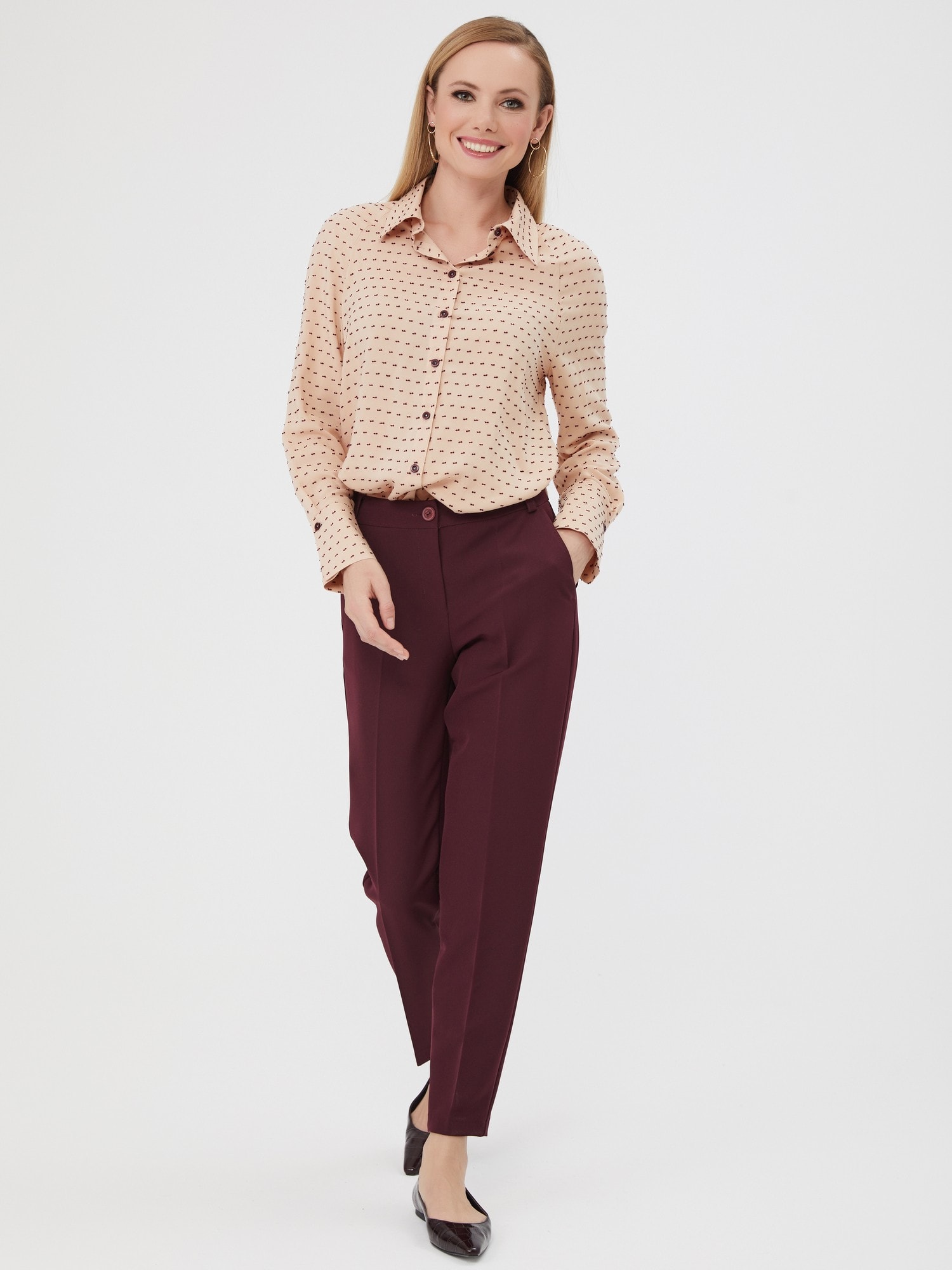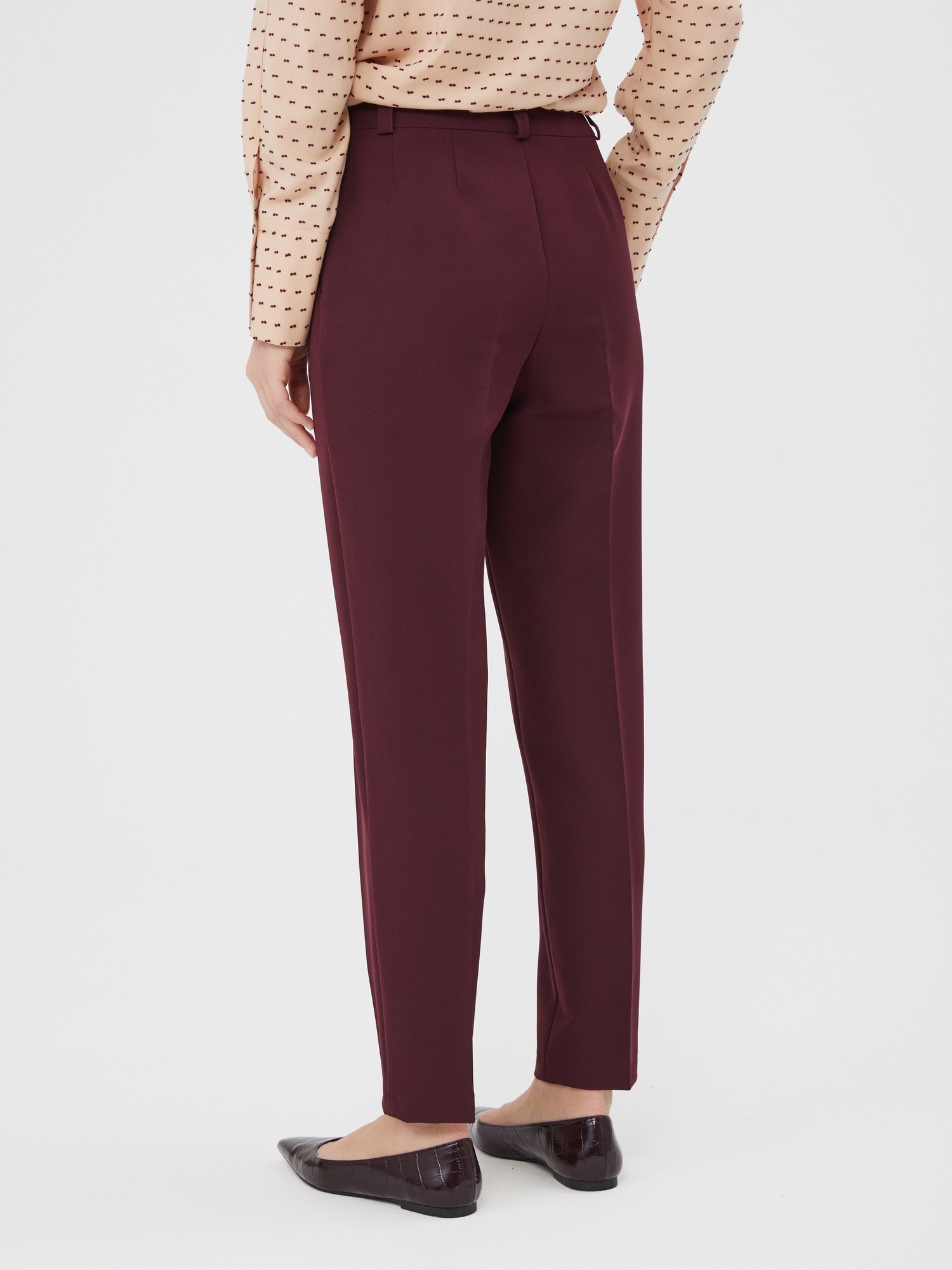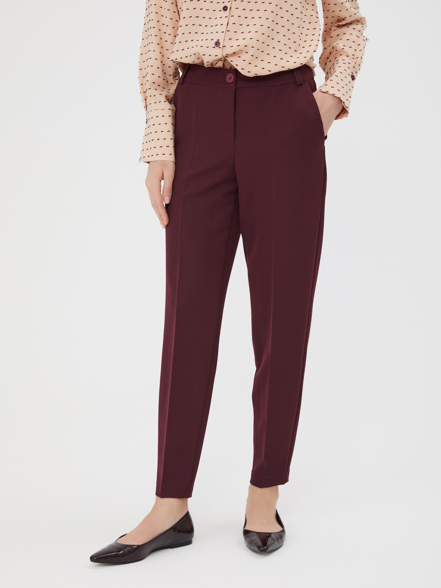 Бордовые брюки для образов в осенней палитре. Карманы, шлевки для пояса. Для полноценного комплекта сочетайте с блузкой Д-2005 ББ(О) и жакетом В-810 МЕР(О)