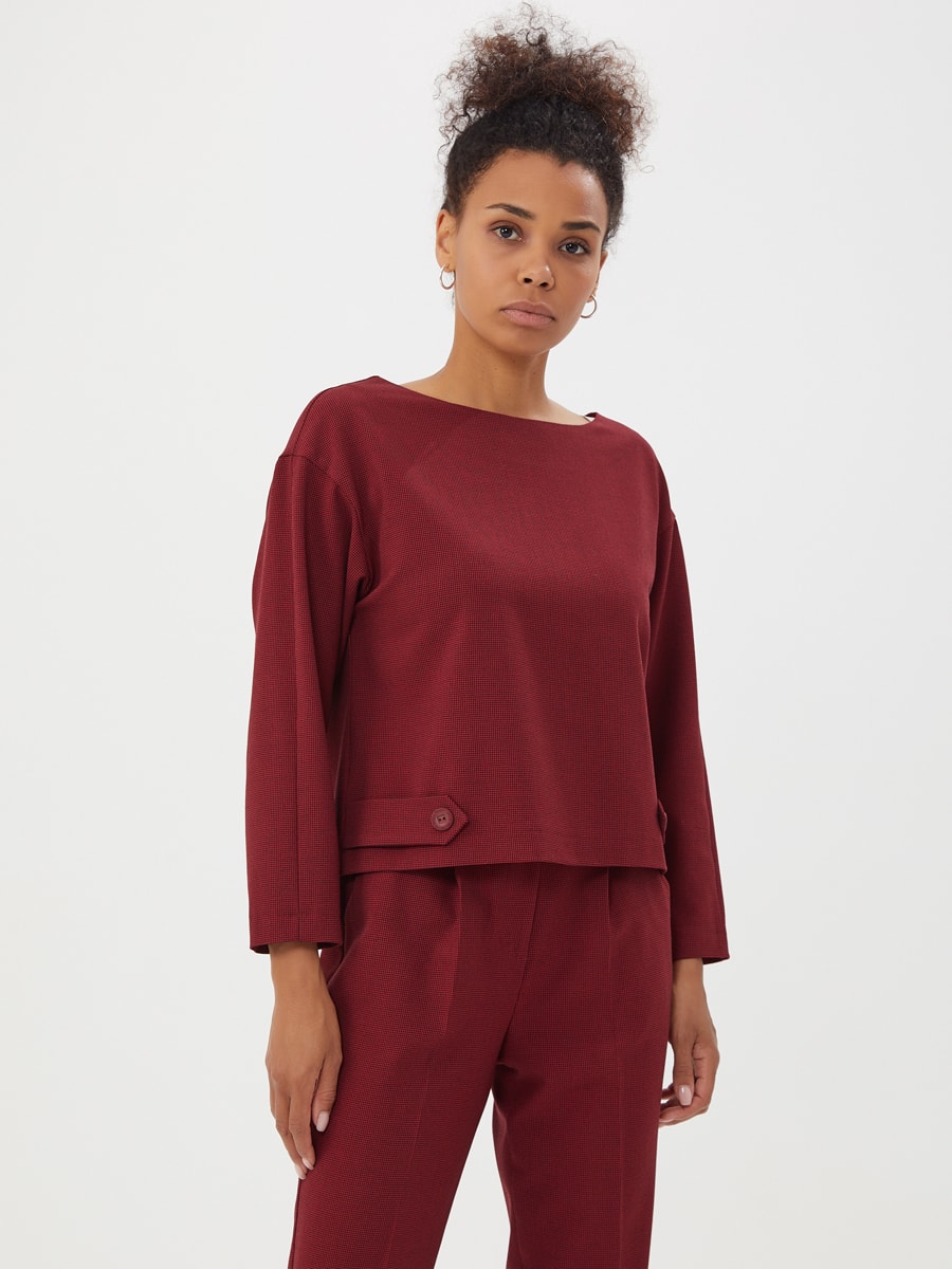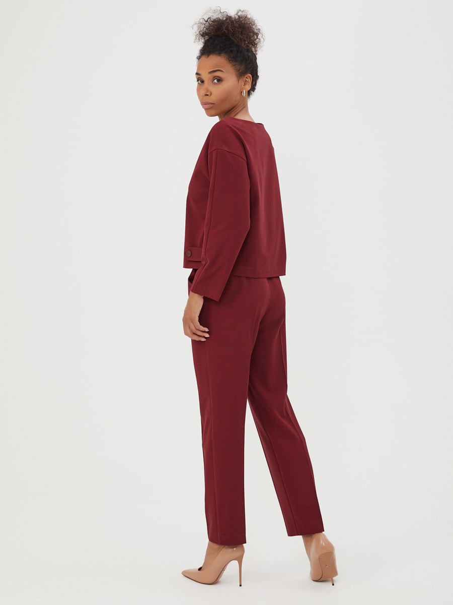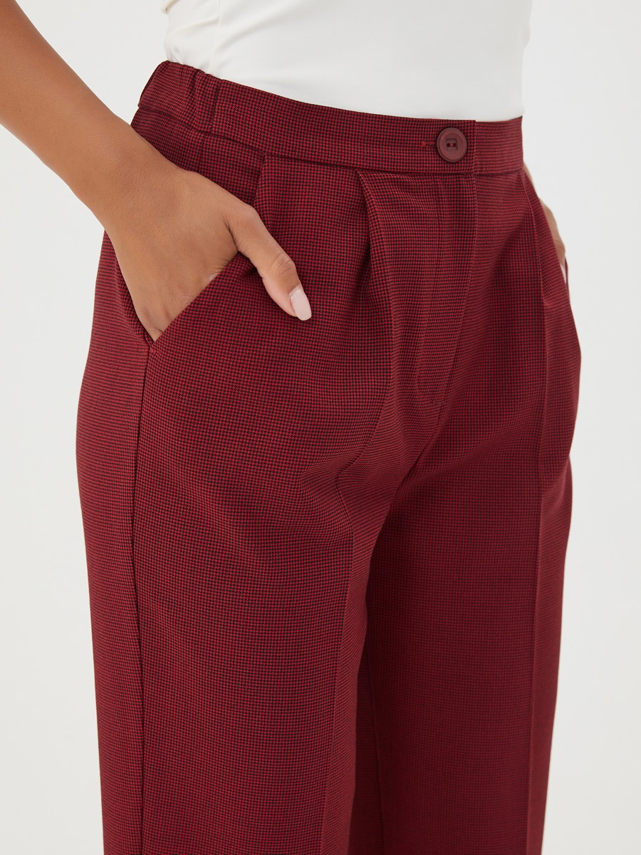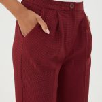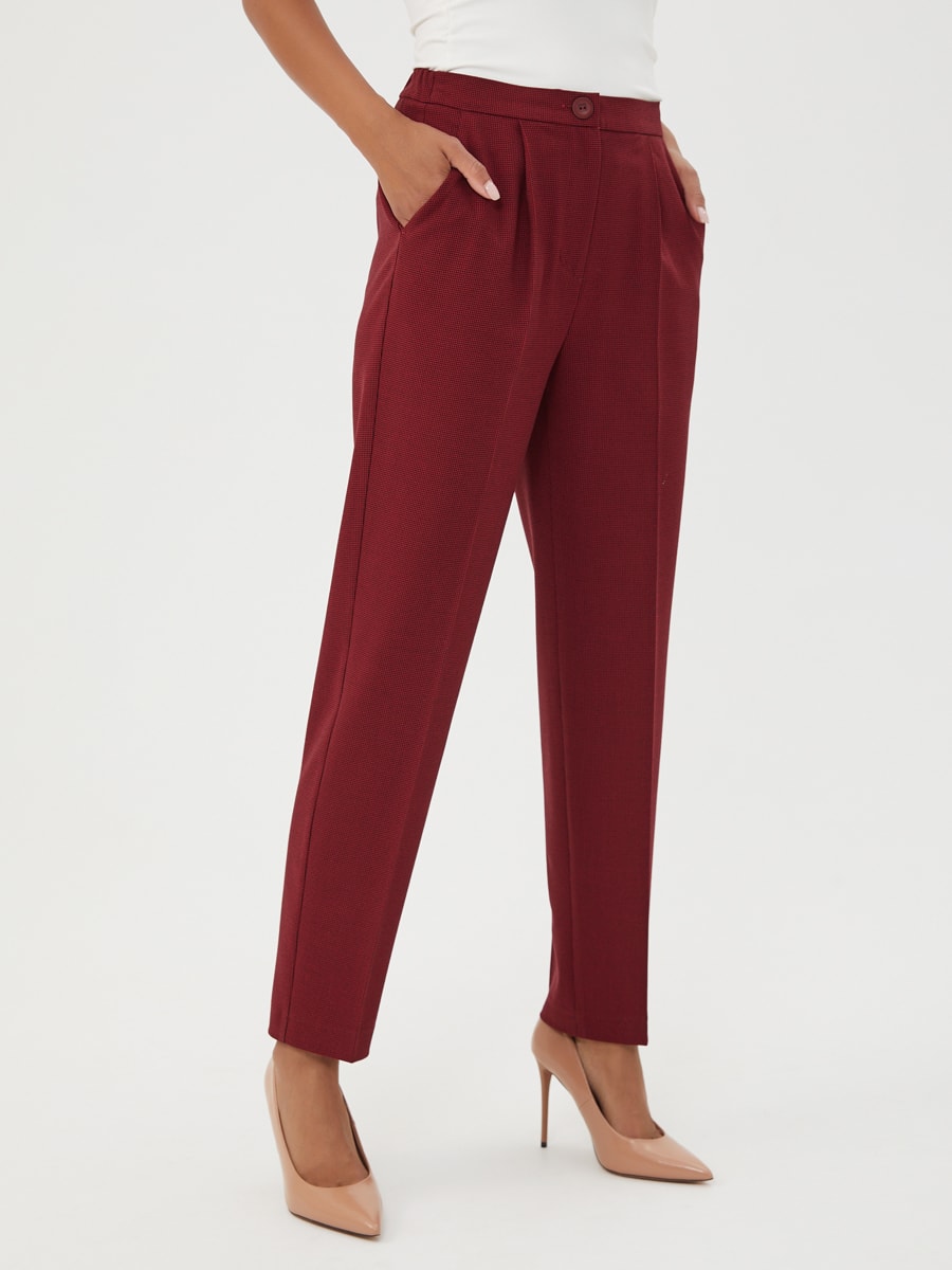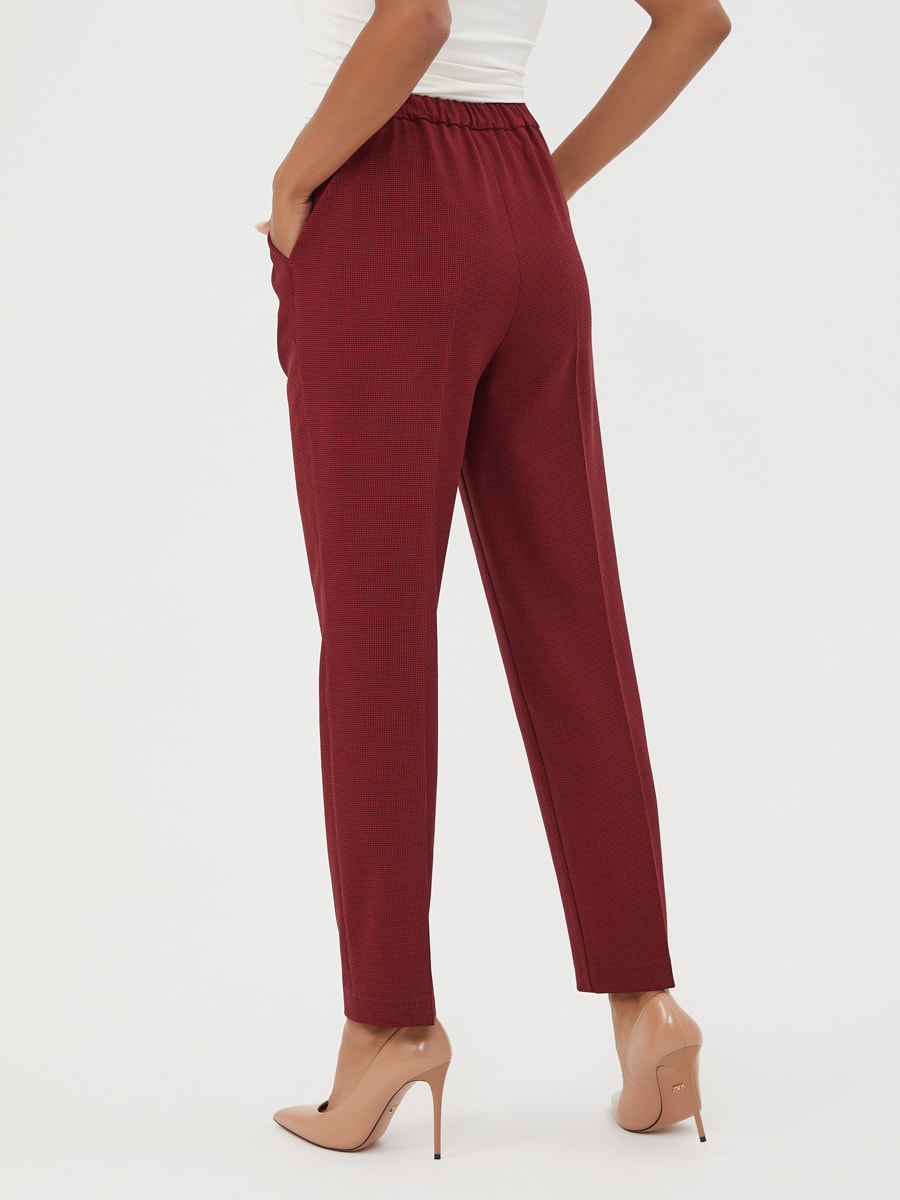 Описание: Брюки из ткани в мелкую клеточку, цвета граната. Прекрасно сочетаются со свитшотом Д-2009 ЧИ(О)