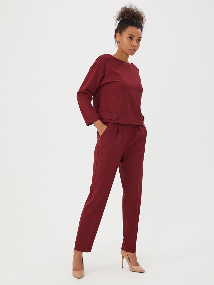 Описание: Брюки из ткани в мелкую клеточку, цвета граната. Прекрасно сочетаются со свитшотом Д-2009 ЧИ(О)