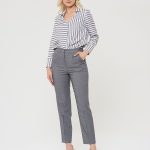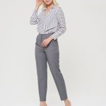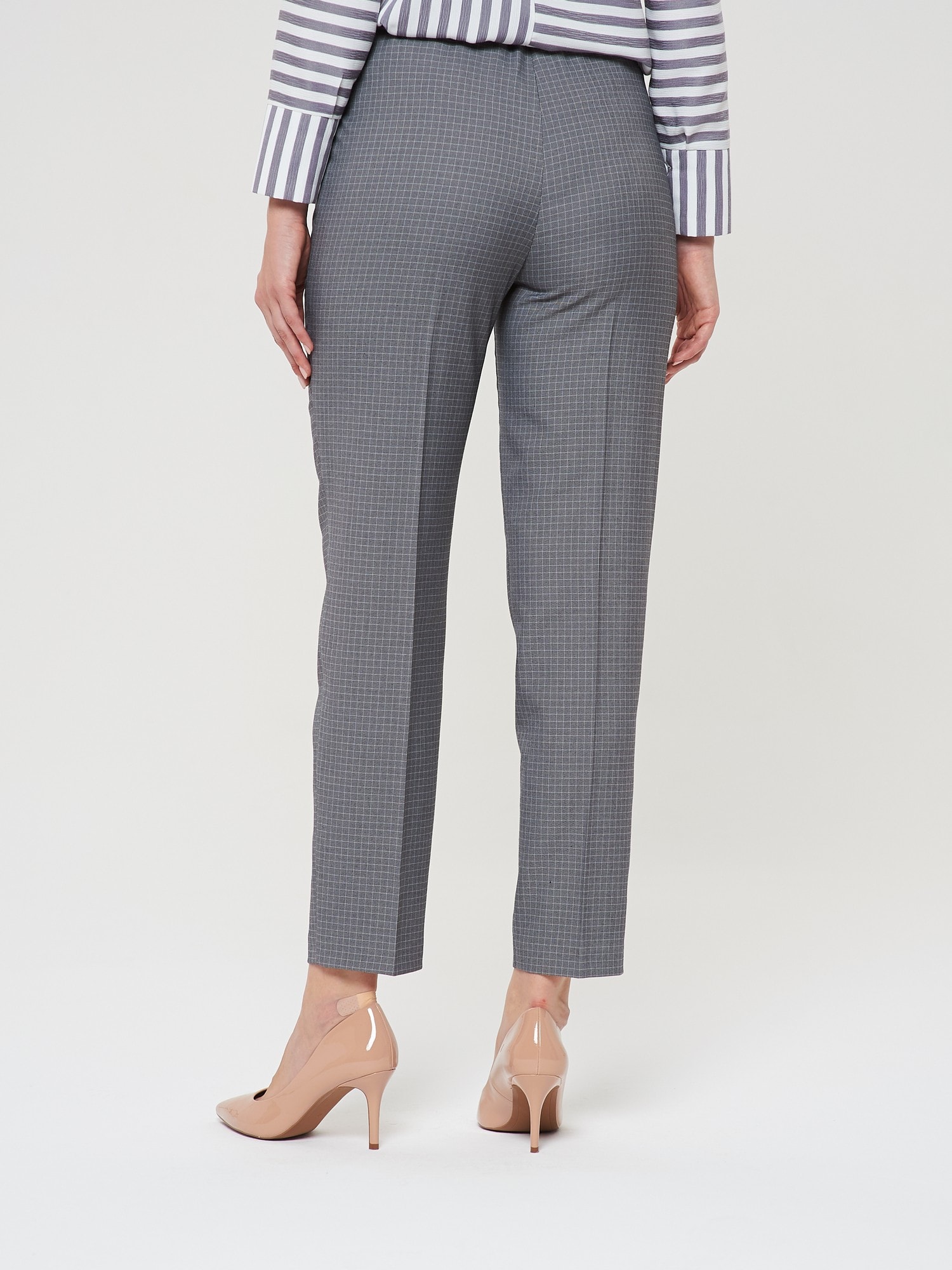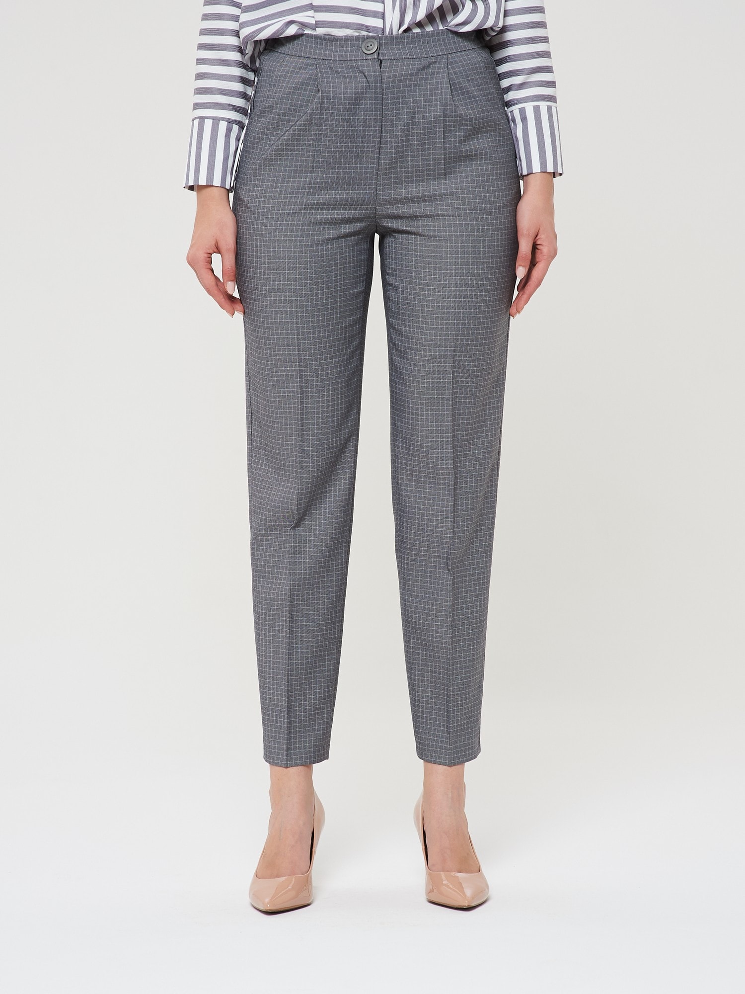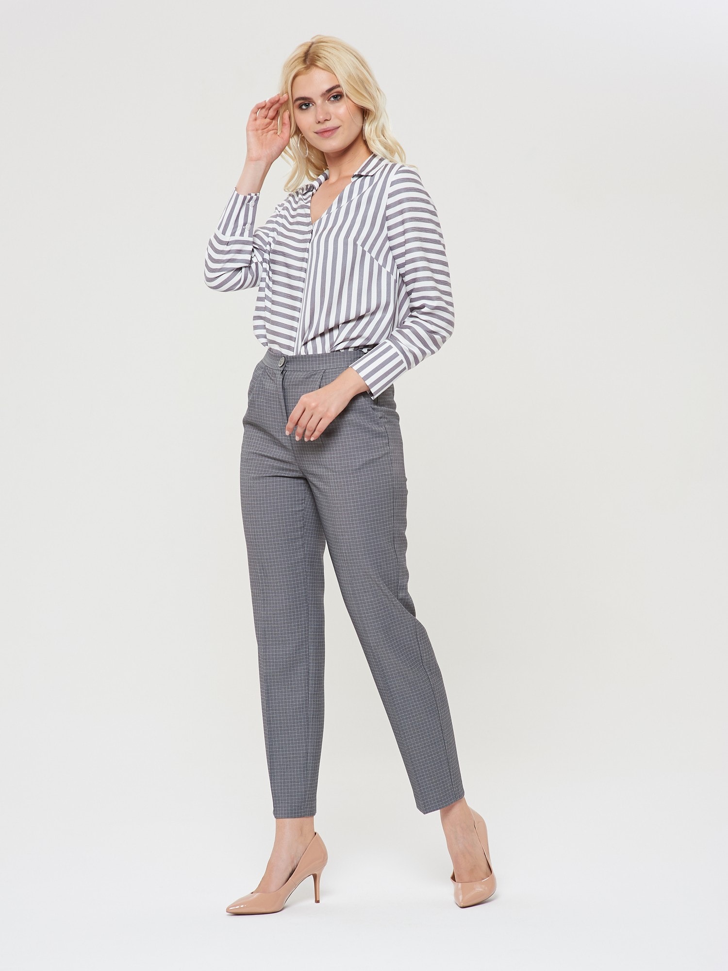 Классические прямые брюки с защипами для создания строгих и неформальных образов. Брюки светло-серого оттенка в мельчайшую "пустую" клеточку. Дополнены блузкой Д-913 КАП(О9)