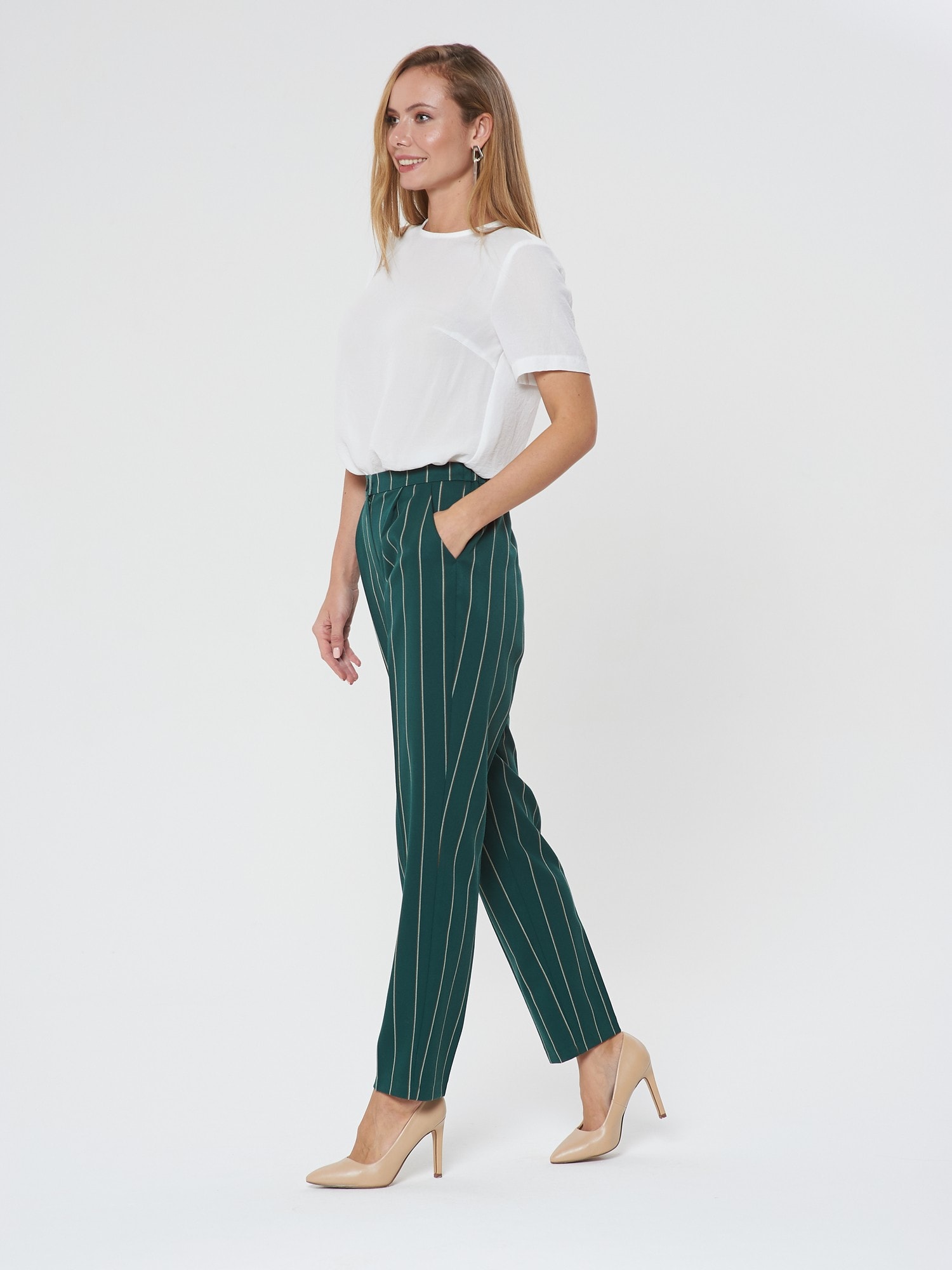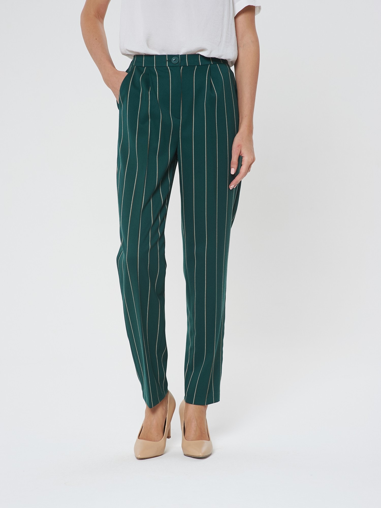 Брюки paper bag — наш хит . Высокая посадка, складки в районе пояса. Благородная измрудная ткань в тонкую клетку. Сочетайте с блузкой Д-810 ПЛ(В20) и жакетом В-901 МИР(В20)