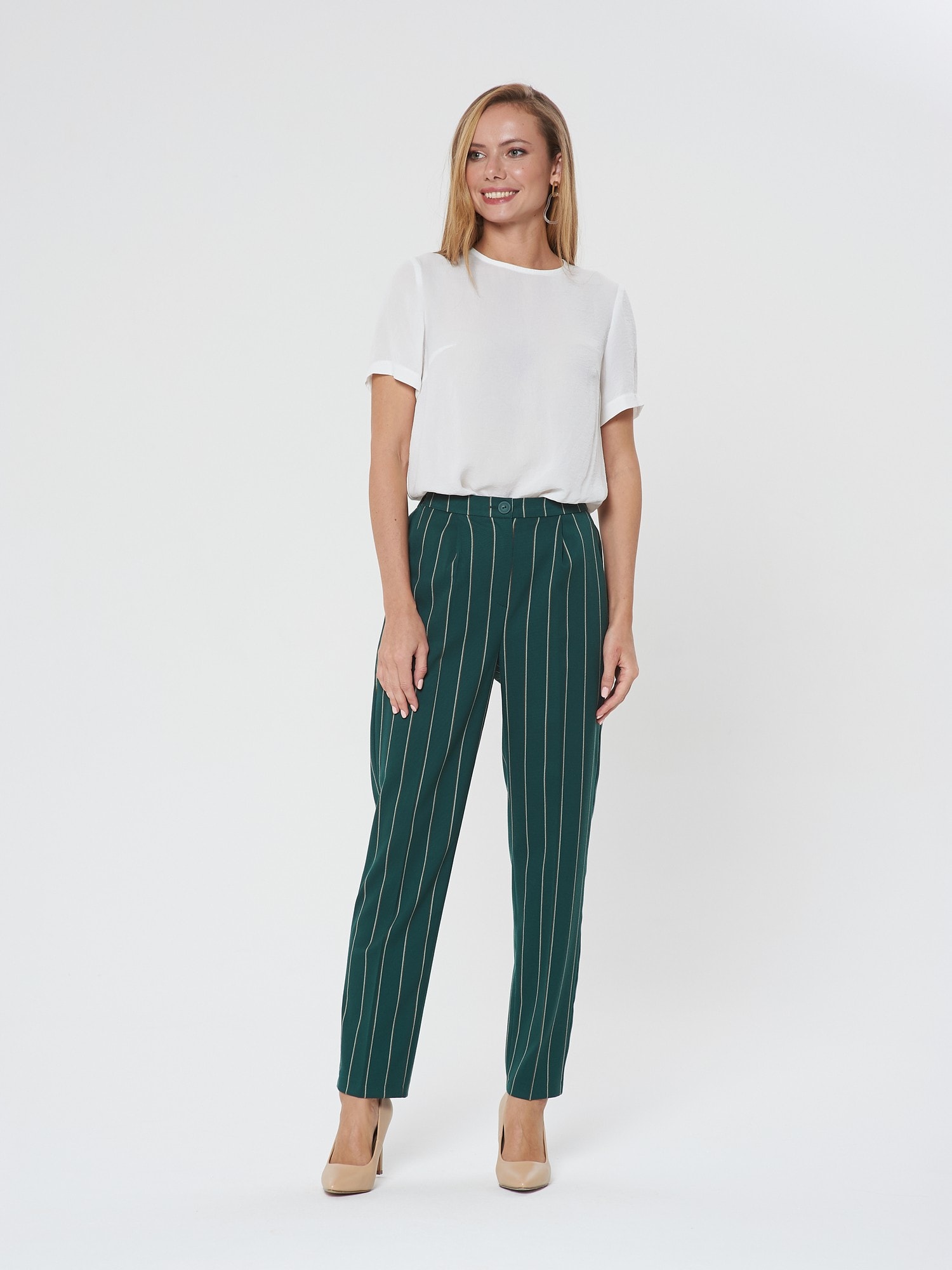 Брюки paper bag — наш хит . Высокая посадка, складки в районе пояса. Благородная измрудная ткань в тонкую клетку. Сочетайте с блузкой Д-810 ПЛ(В20) и жакетом В-901 МИР(В20)
