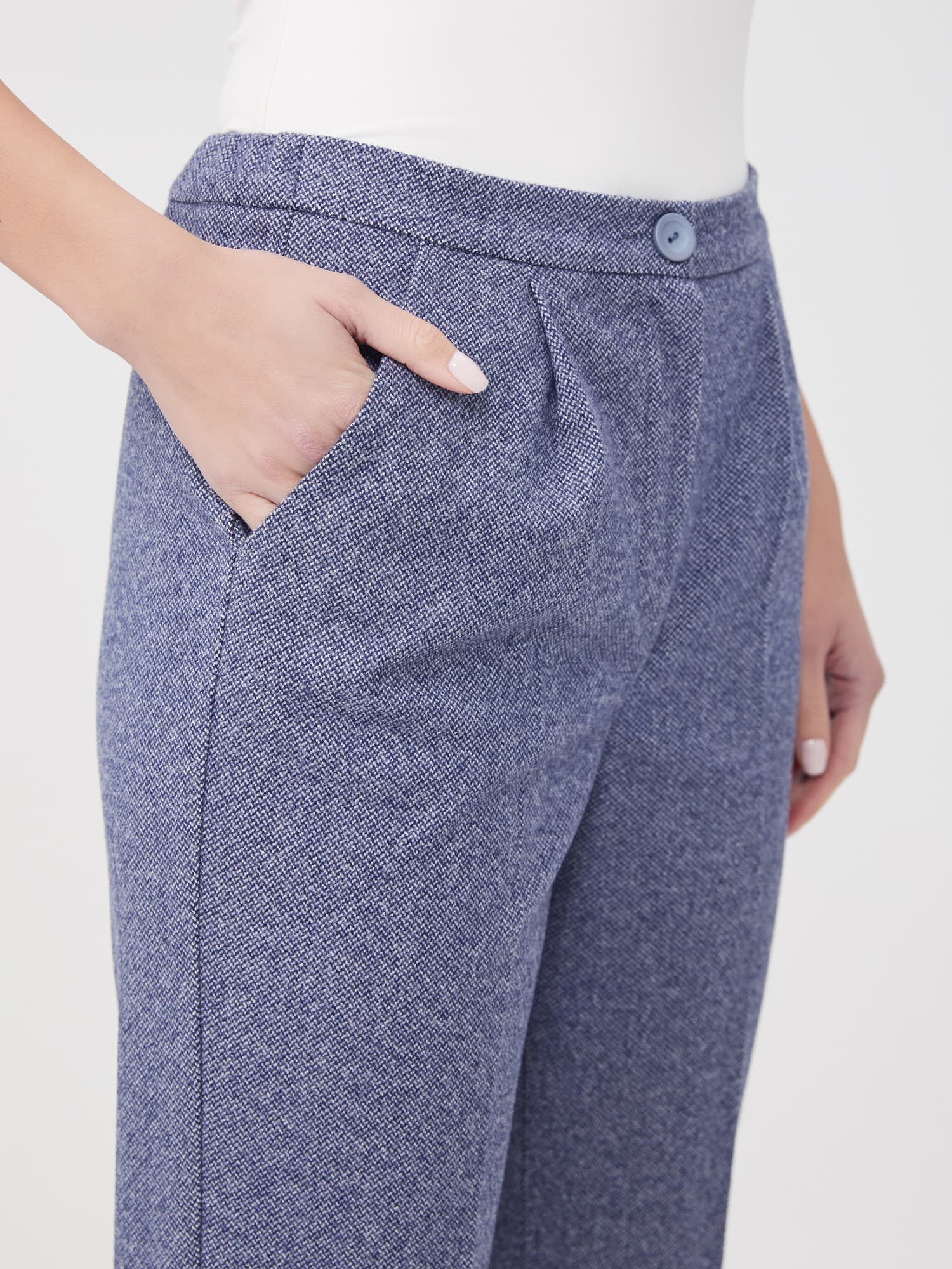 Описание: Брюки прямого кроя классической длины. Выполнены из теплого и тактильно приятного материала поливискозы. Карманы, стрелки, средняя посадка пояса, в задней части пояса резинка. Вместе с блузкой Д-2009 МП(О) создайте стильный брючный комплект для офиса. Принт твид в оттенке морская пена.