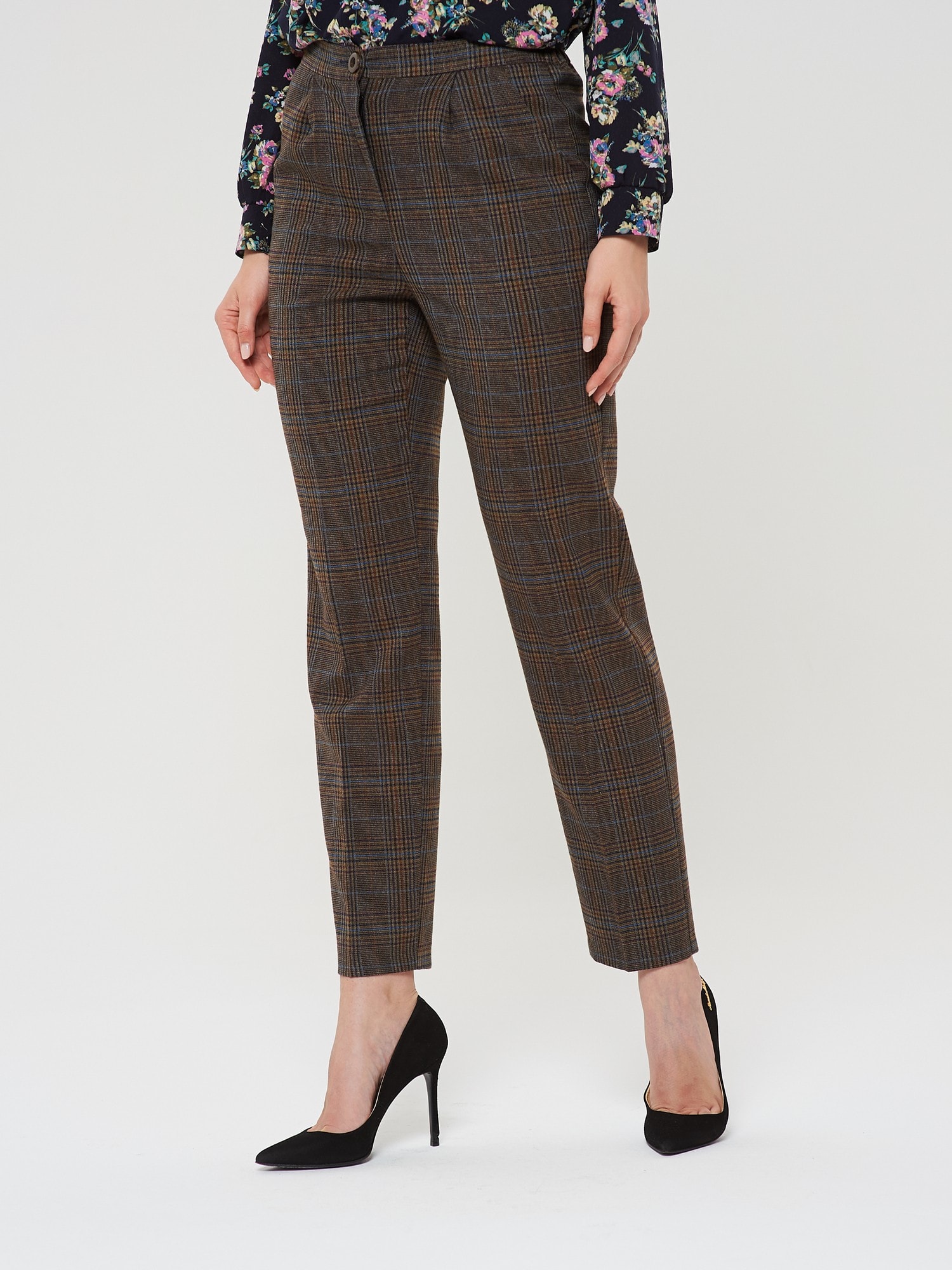 Клетчатые брюки с идеальной посадкой. Резинка на поясе по спинке. Длина по щиколотку. Дополнены блузкой Д-915 НЕР2(О9) и жакетом В-902 ТФ(О9)