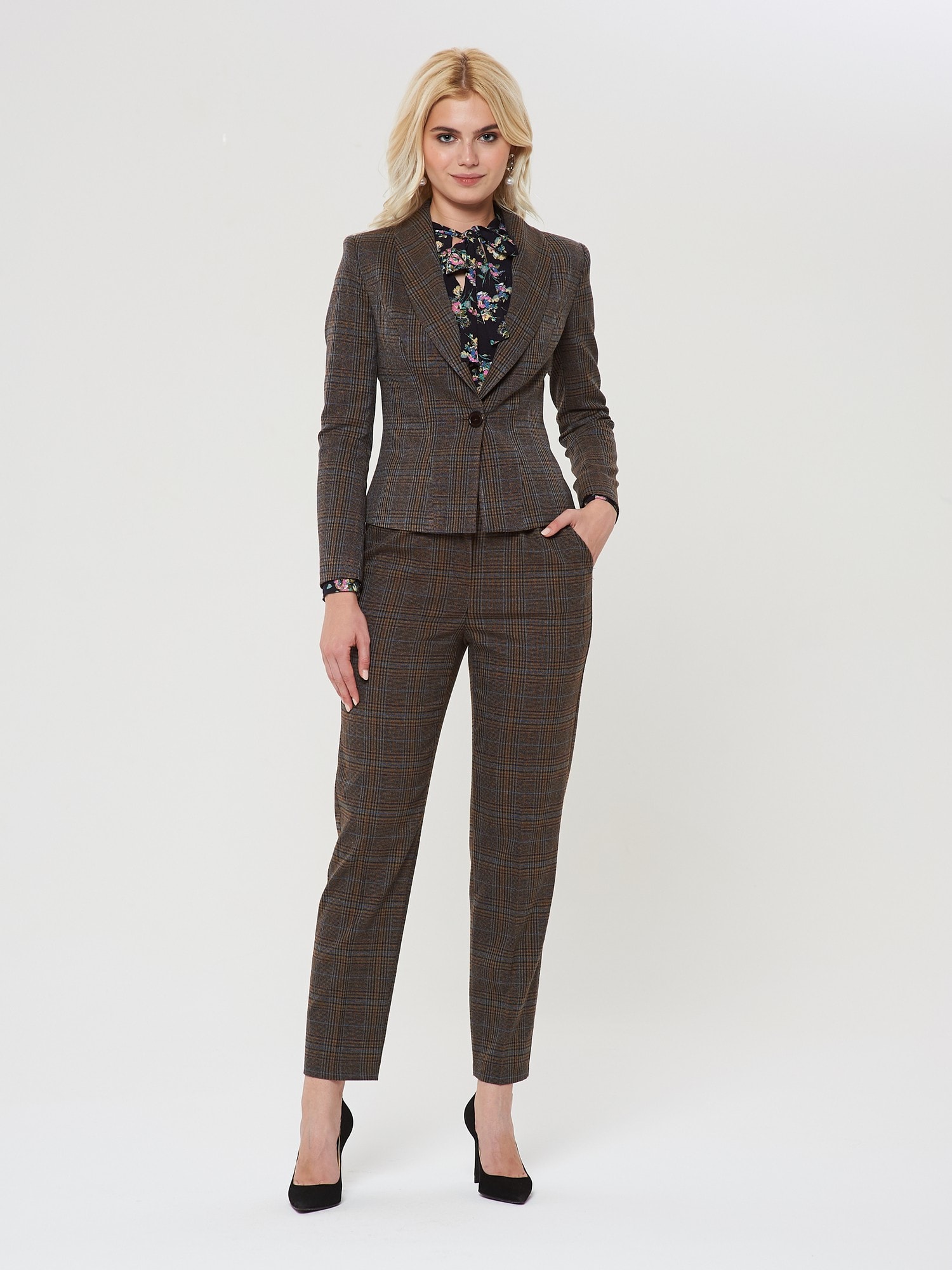 Клетчатые брюки с идеальной посадкой. Резинка на поясе по спинке. Длина по щиколотку. Дополнены блузкой Д-915 НЕР2(О9) и жакетом В-902 ТФ(О9)