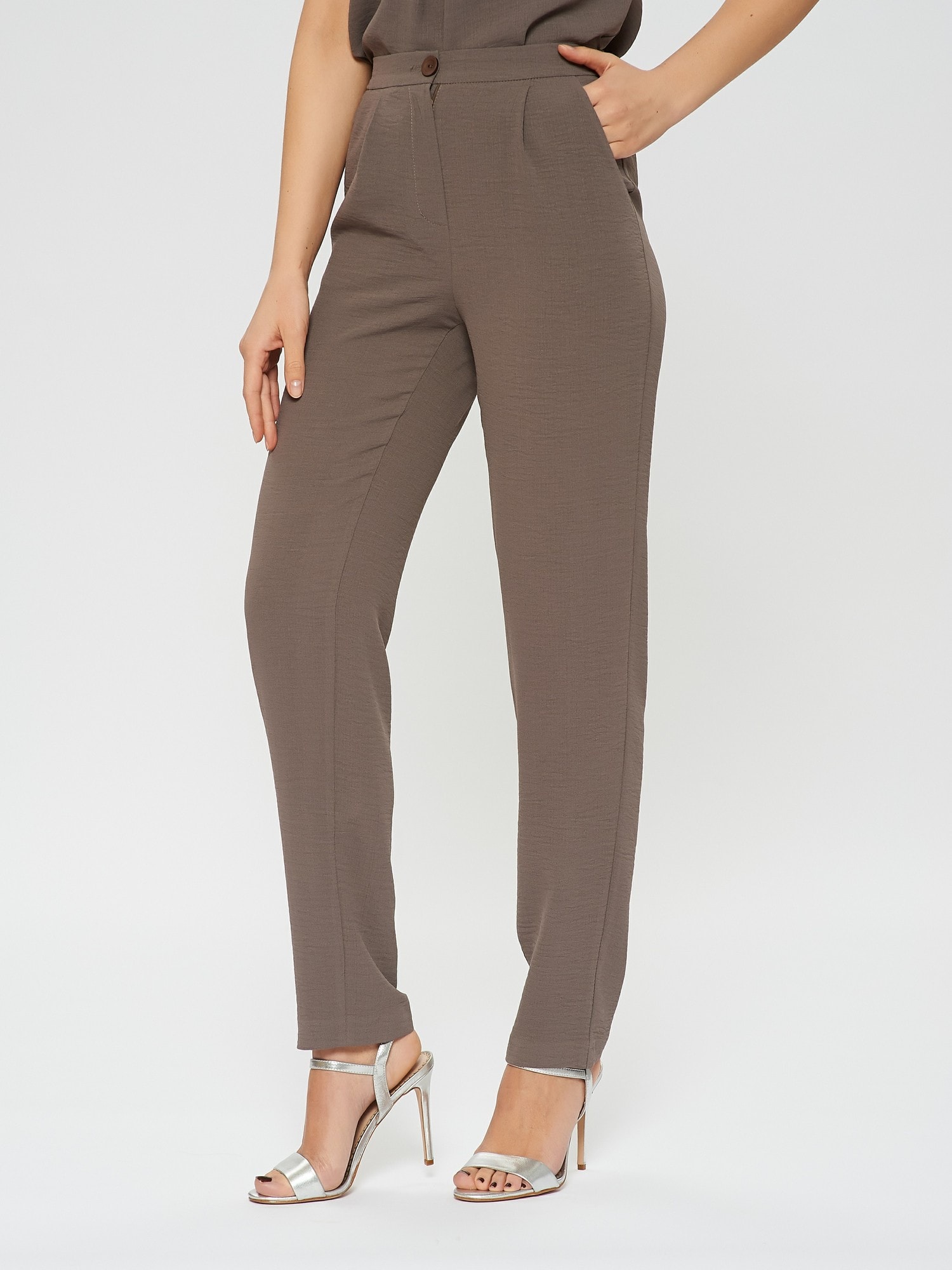 Кофейные брюки с небольшими защипами. Карманы в боковых швах. Составьте полный образ с блузкой Д-905 ТРЮ(В20). Нейтральный цвет брюк позволяет комбинировать их с чем угодно.
