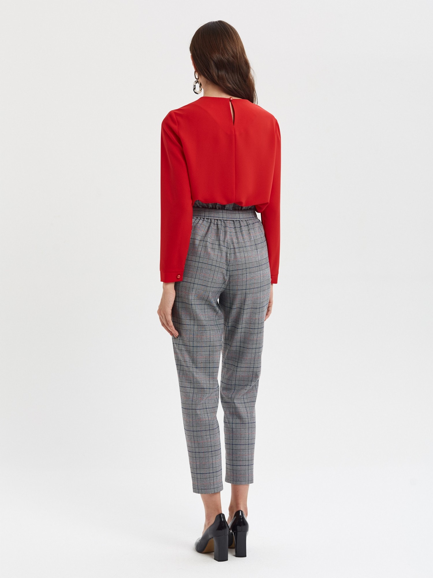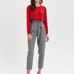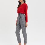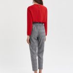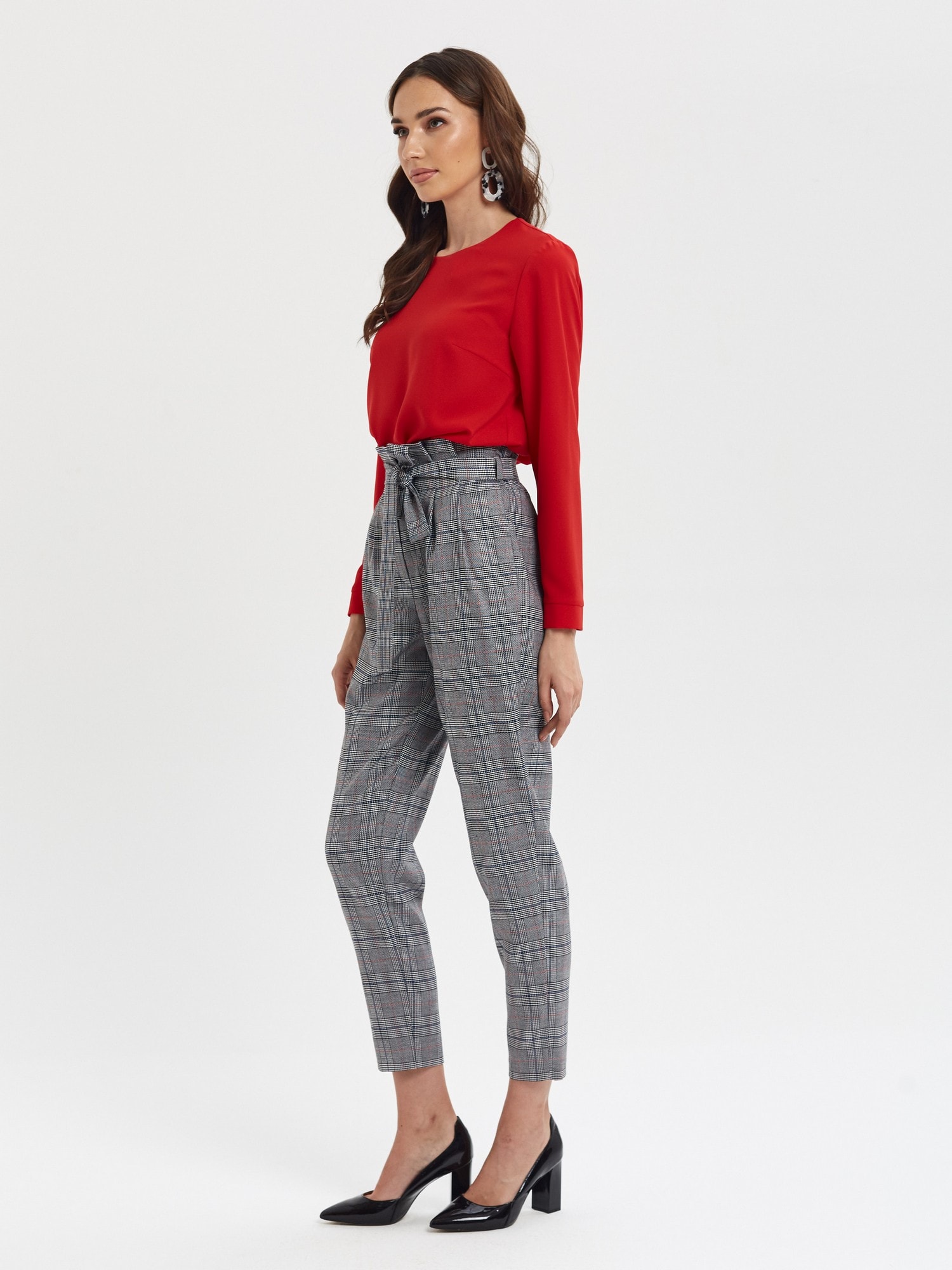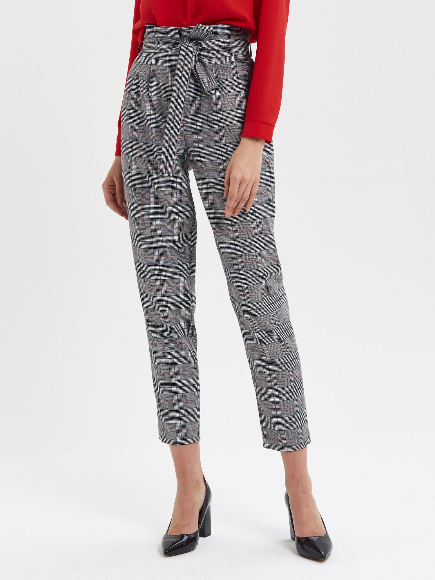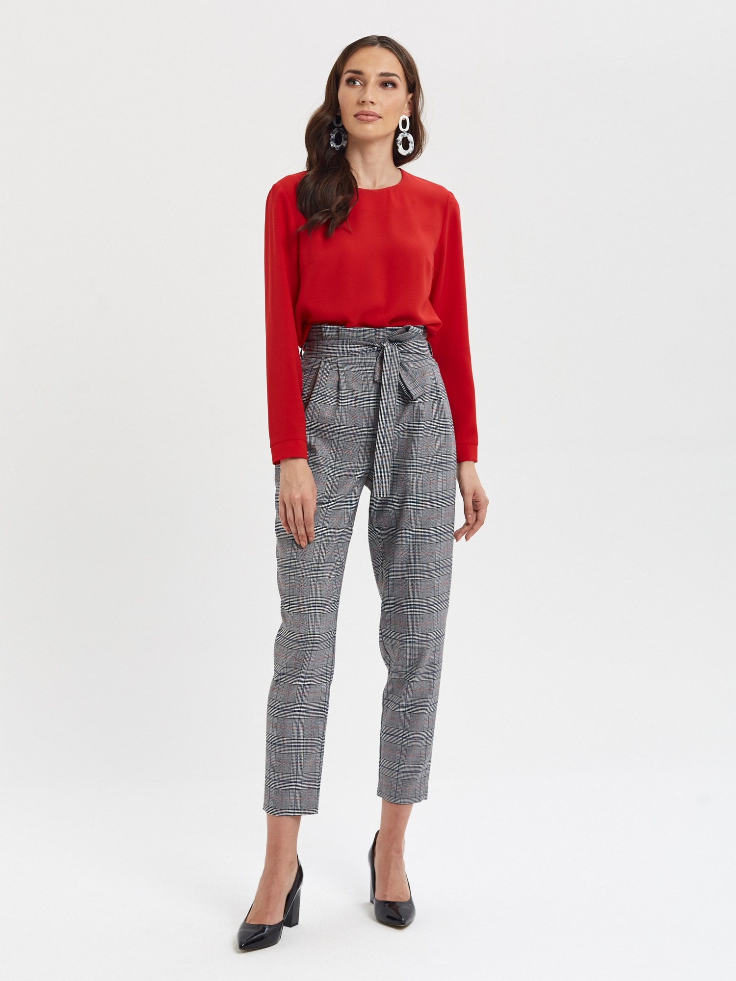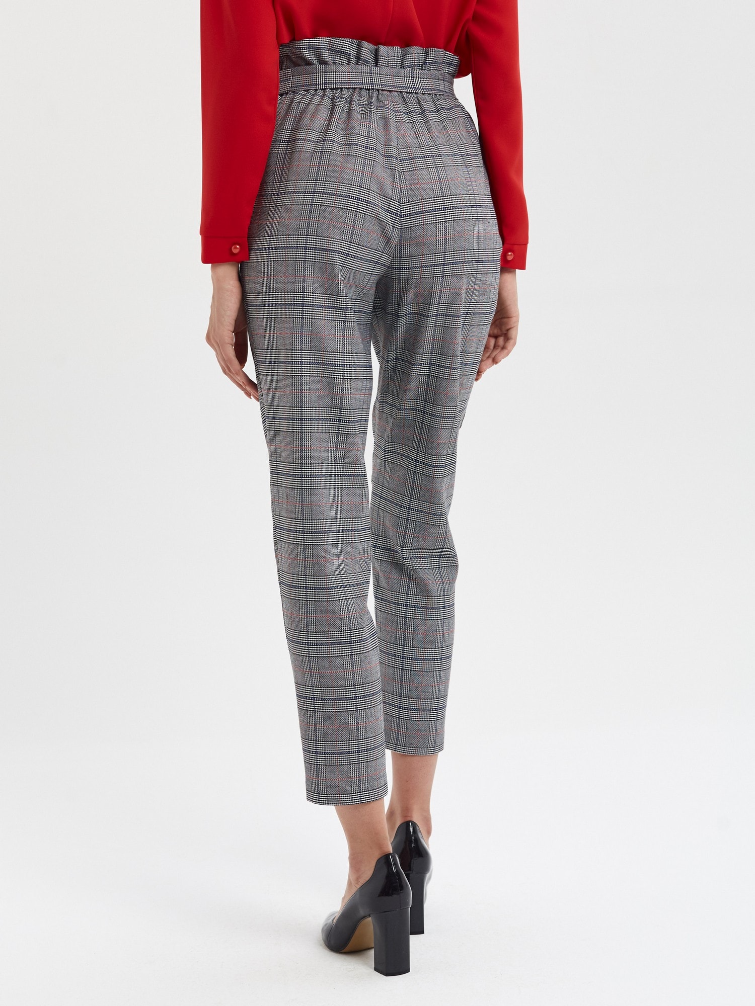 48% вискоза, 48% полиэстер, 4% эластан Размеры 42-52 Рост модели 178 см Брюки в неоклассическом стиле. Модель выполнена из серой клетки "Экстерхази" с цельнокроенным складчатым поясом. На линии талии расположены шлевки для прилагающегося пояса. Такой фасон брюк разнообразит и украсит ваш гардероб новыми формами. Сочетайте с блузкой Д-909 СНГ(О9) и пальто Н-813 Б(О9)