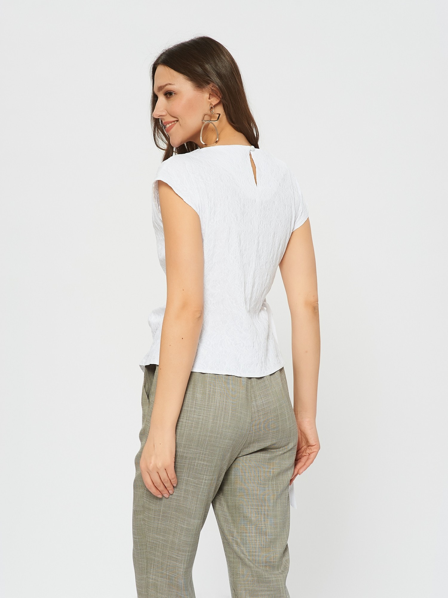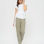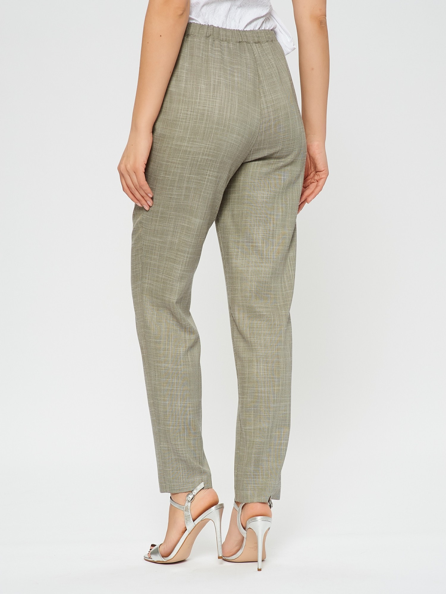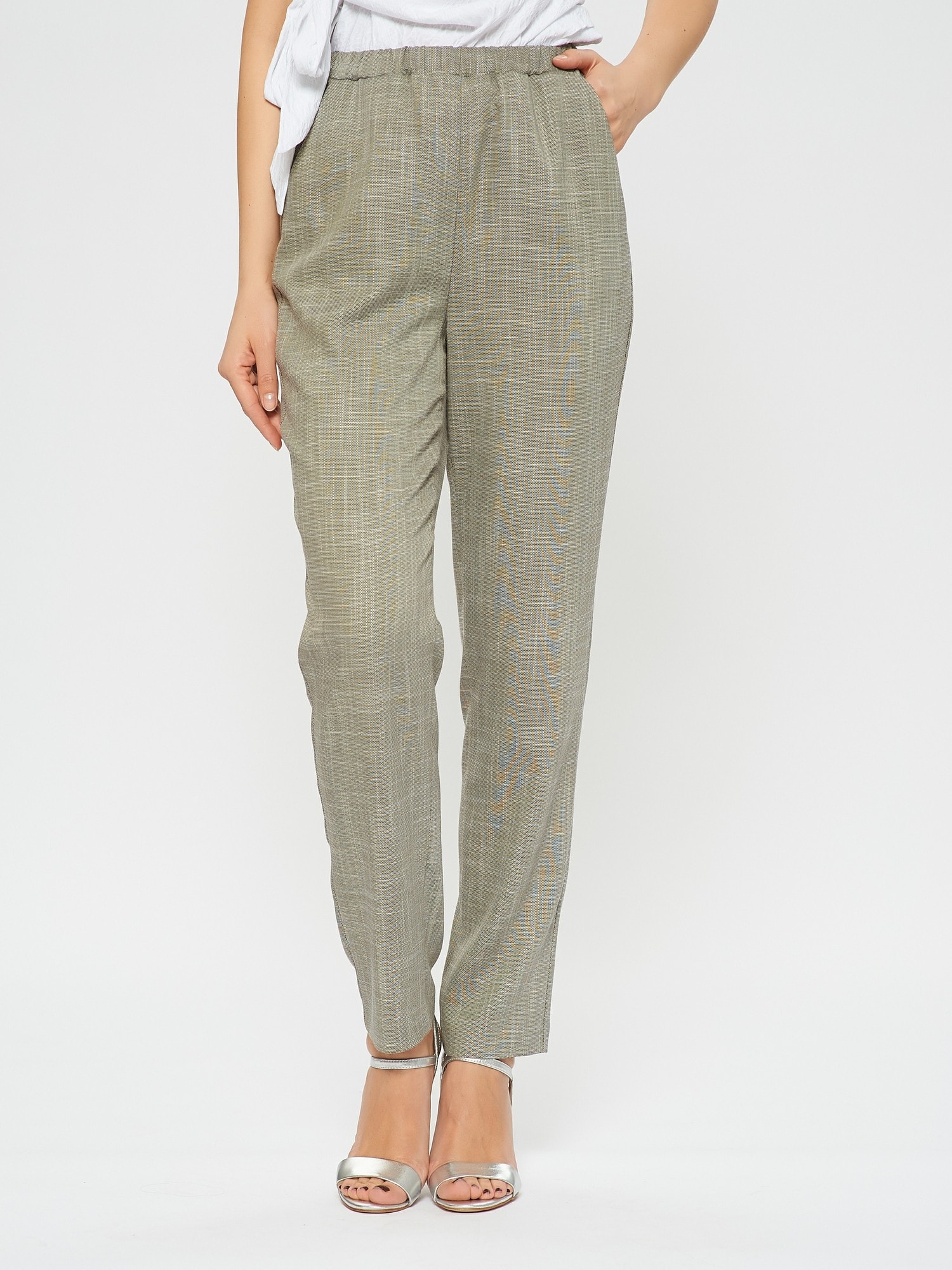 Прямые брюки серого оттенка из фактурной ткани. Пояс на резинке, без гульфика. Дополните образ жакетом В-909 ГРИ(В20) и блузкой Д-927 МУН(В20)