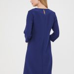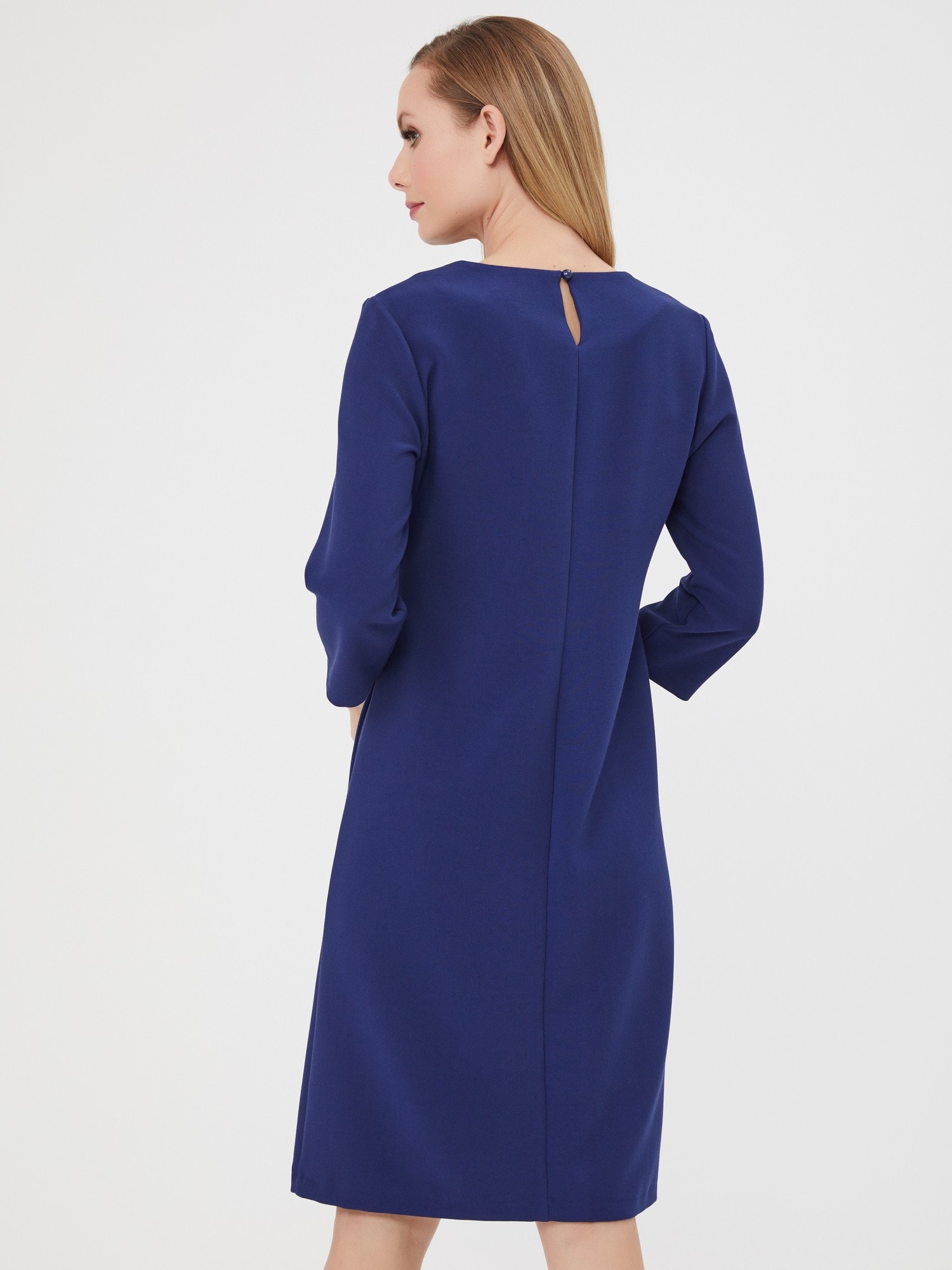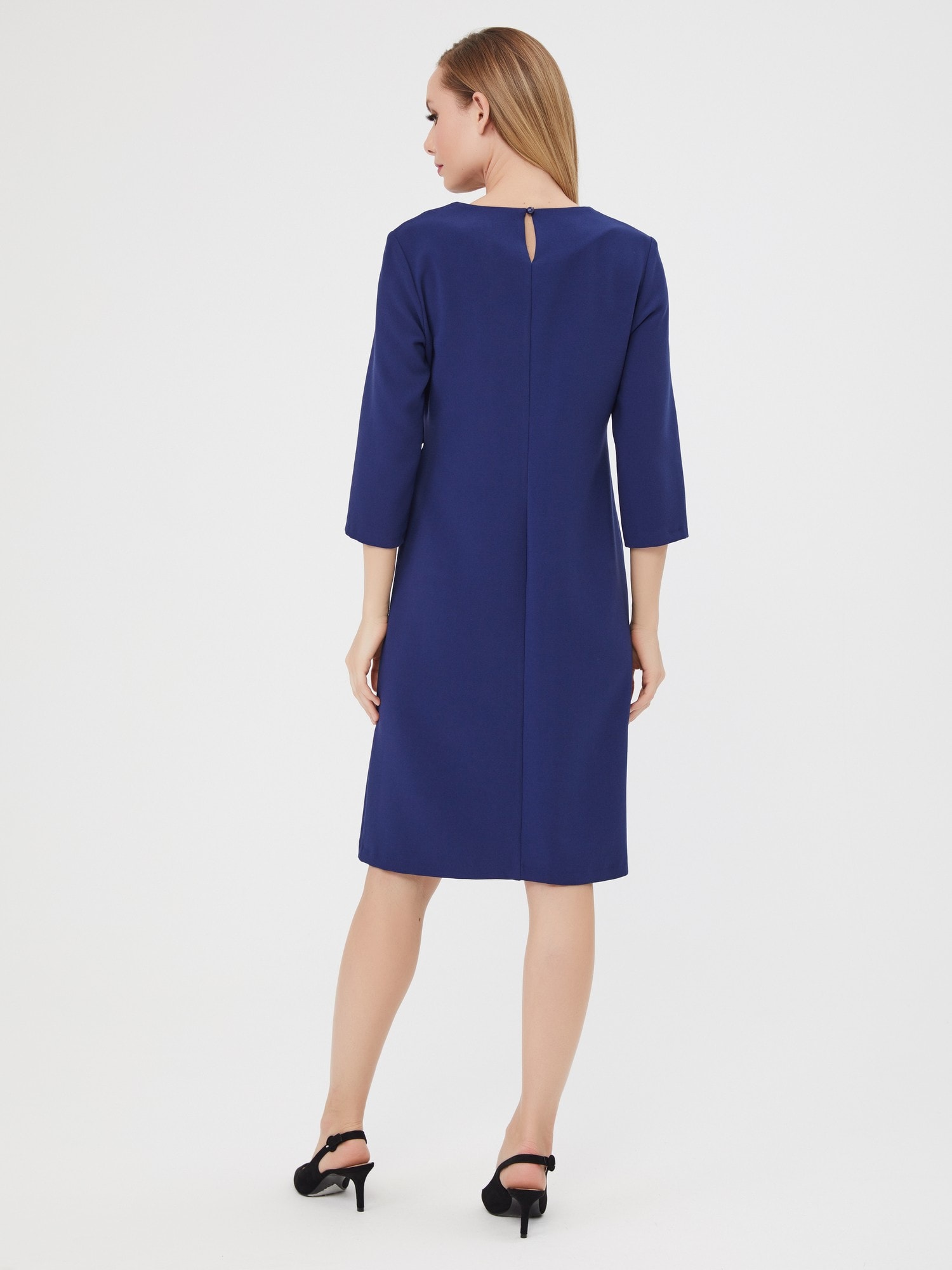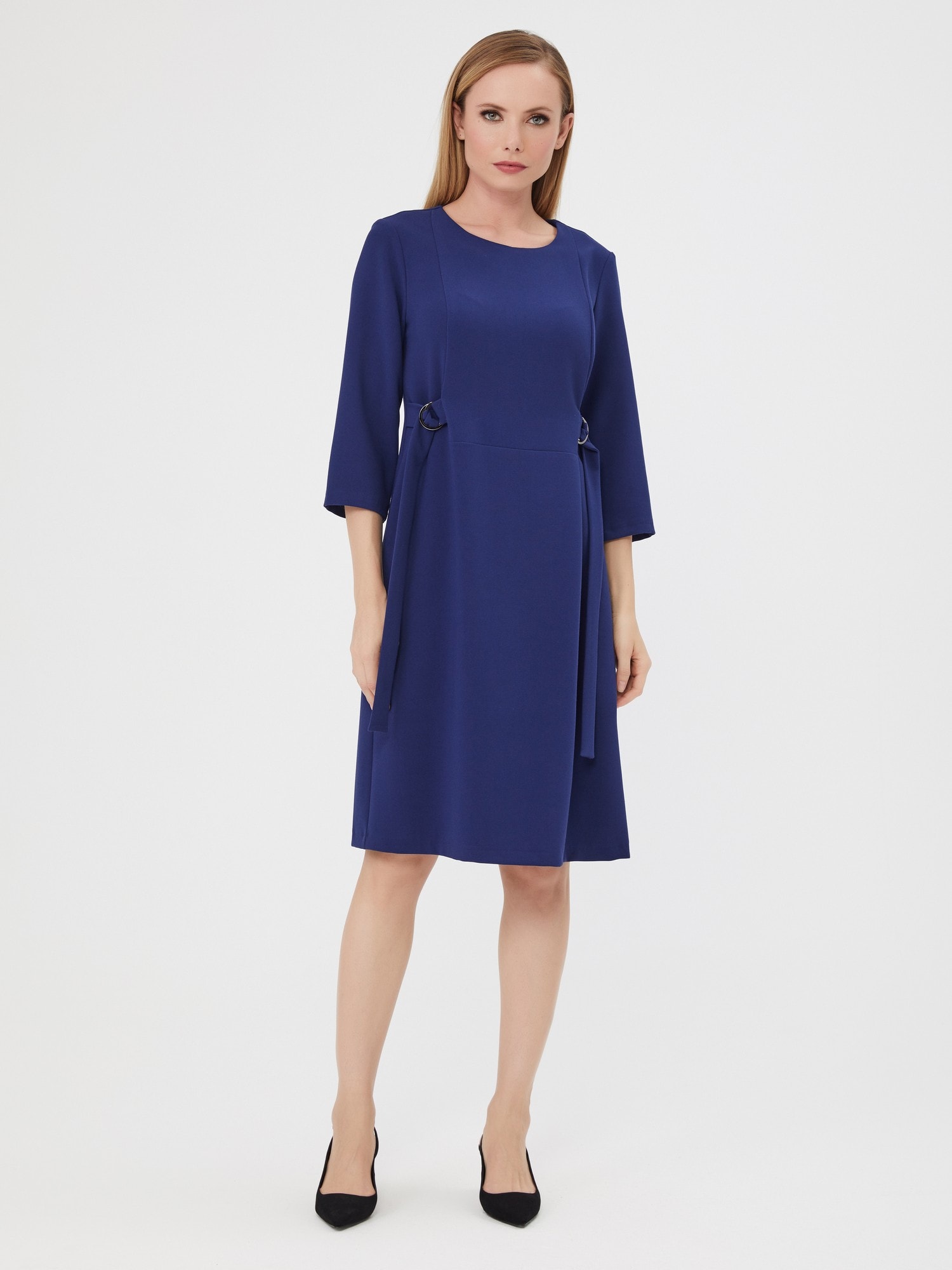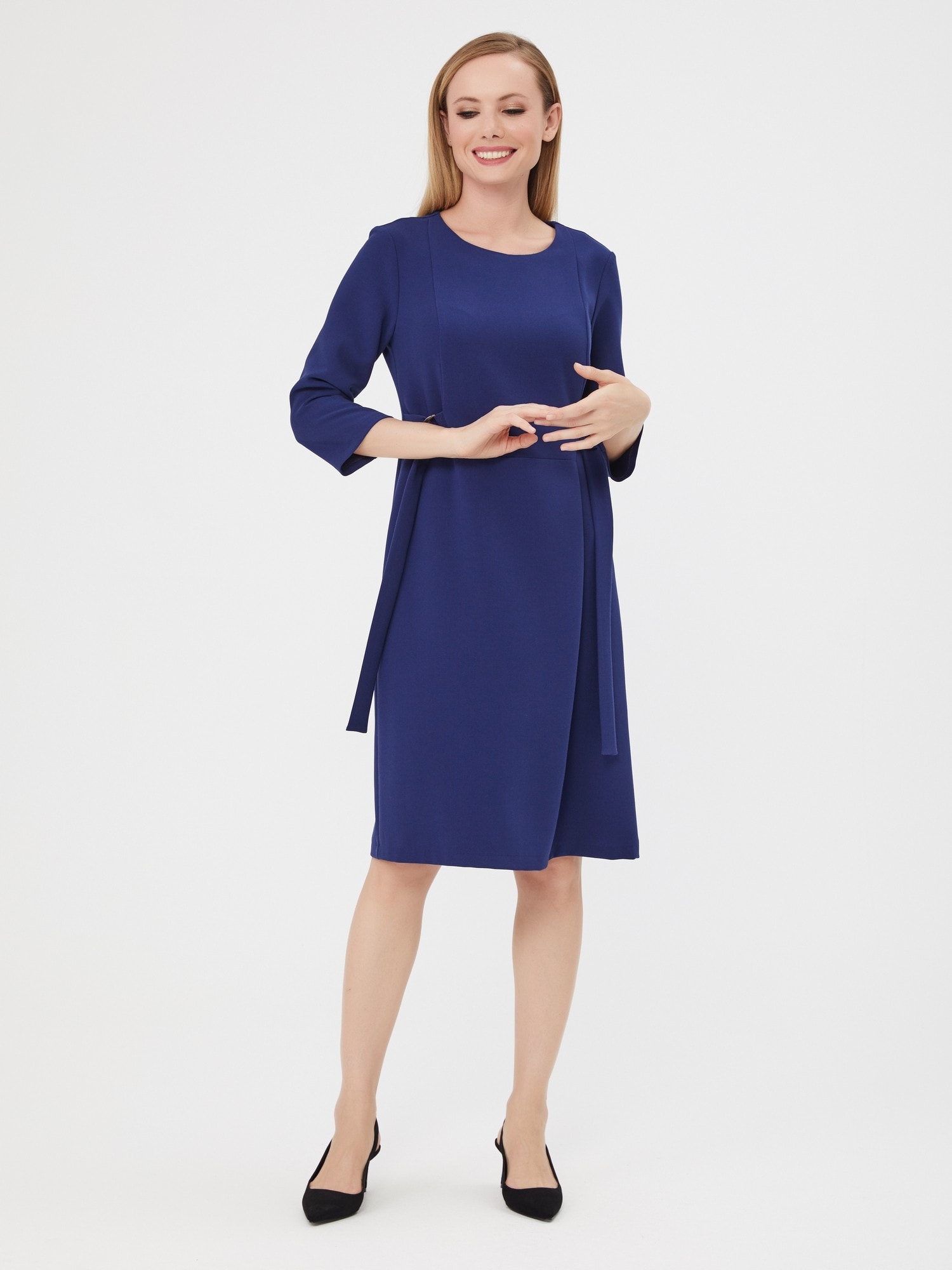 Синее платье с поясами-затяжками на талии. Пояса можно как завязать на спинке, так и оставить незакрепленными. Эта модель внесет разнообразие в фасоны и гамму вашего гардероба.