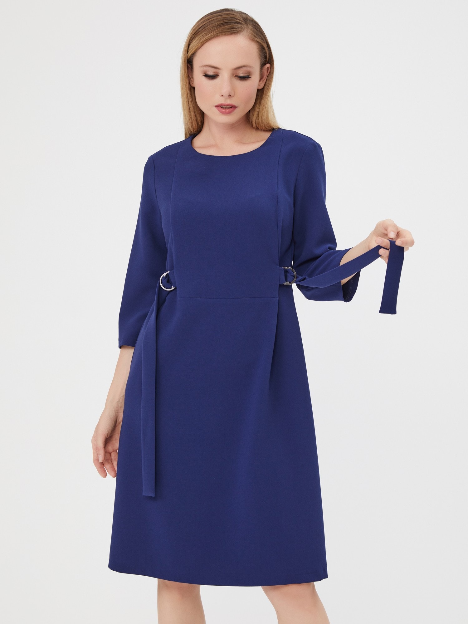 Синее платье с поясами-затяжками на талии. Пояса можно как завязать на спинке, так и оставить незакрепленными. Эта модель внесет разнообразие в фасоны и гамму вашего гардероба.
