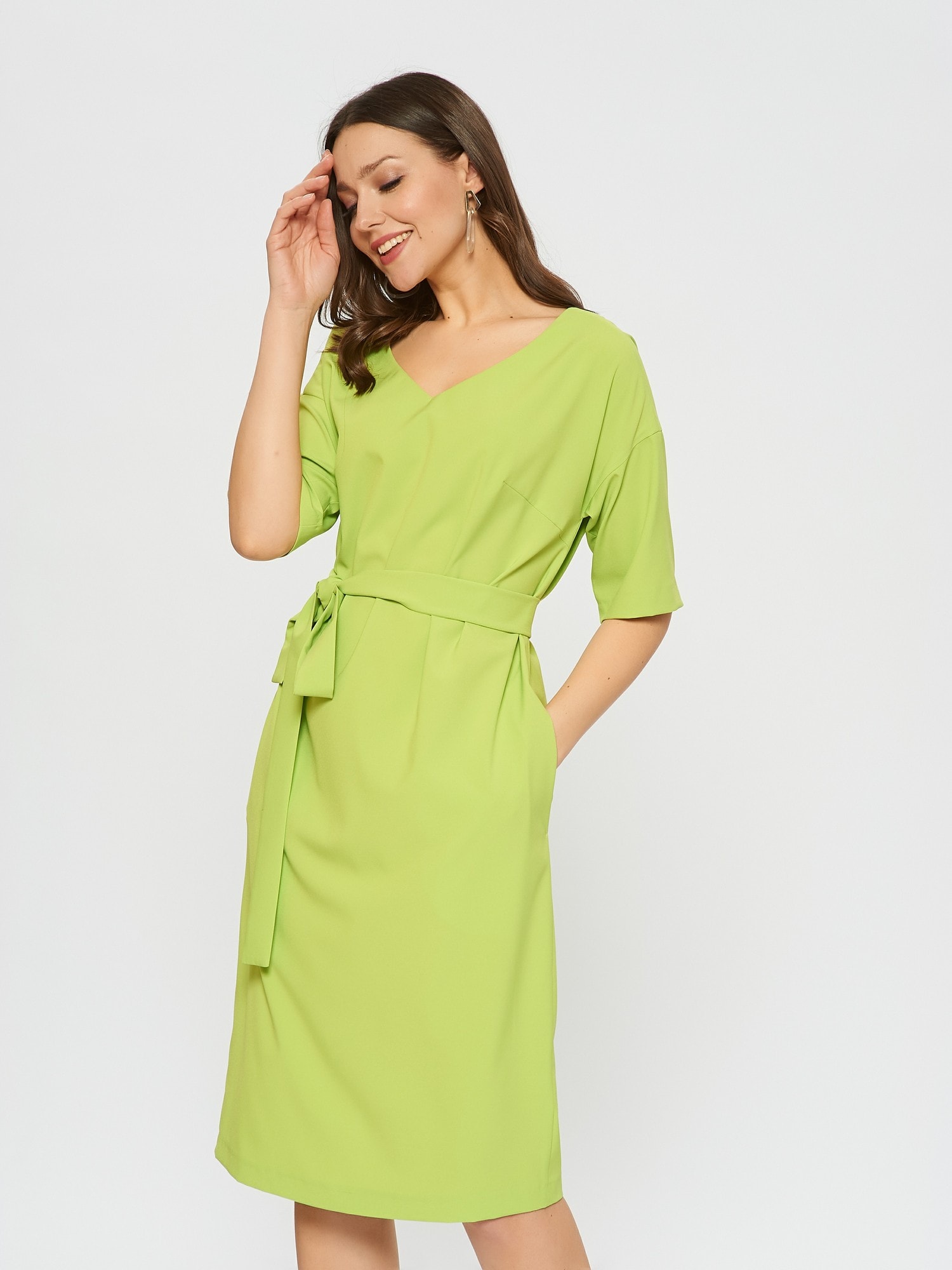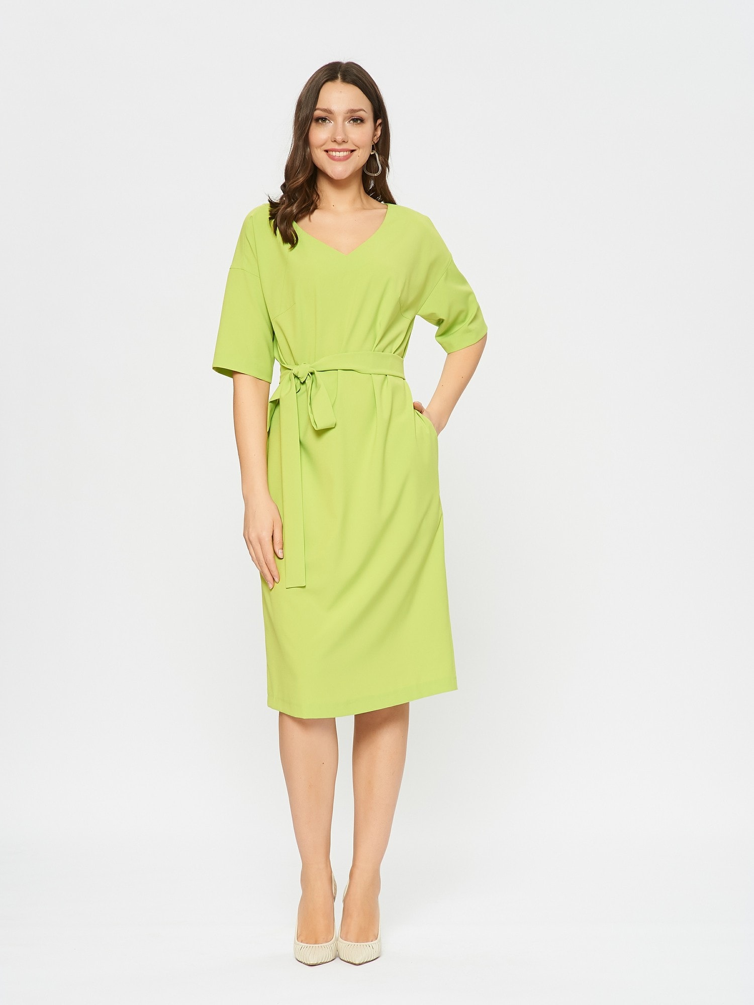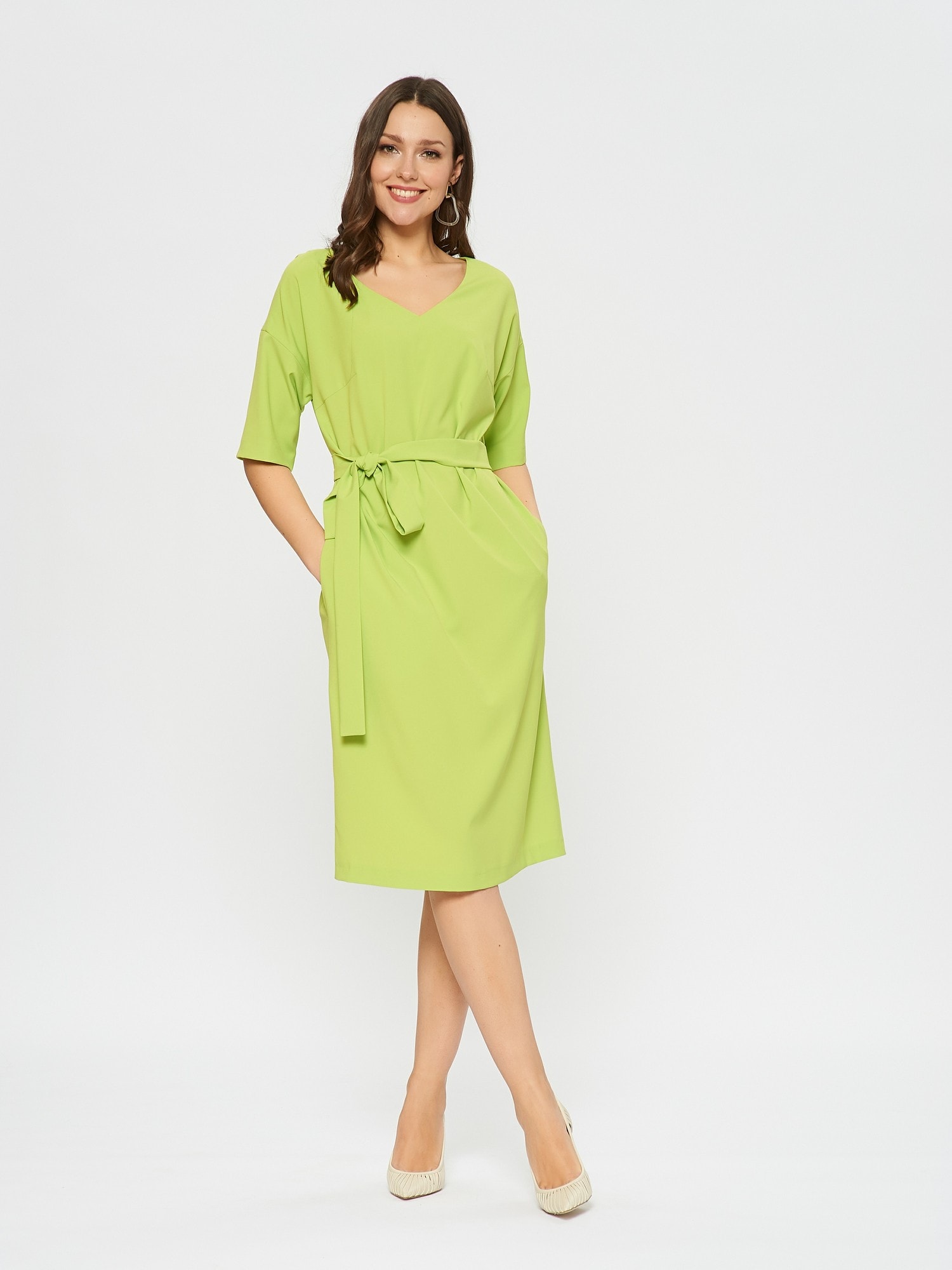 Платье в самом трендовом оттенке лета - сочный лайм. Рукав до локтя и карманы делают его максимально комфортным для повседневной носки. Пояс легко подчеркнет талию. Заряжайте позитивом этим ярким платьем ваших коллег и знакомых.