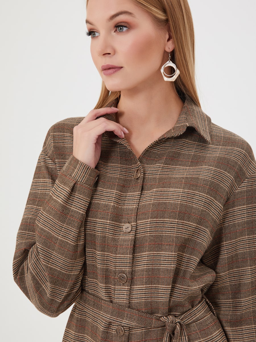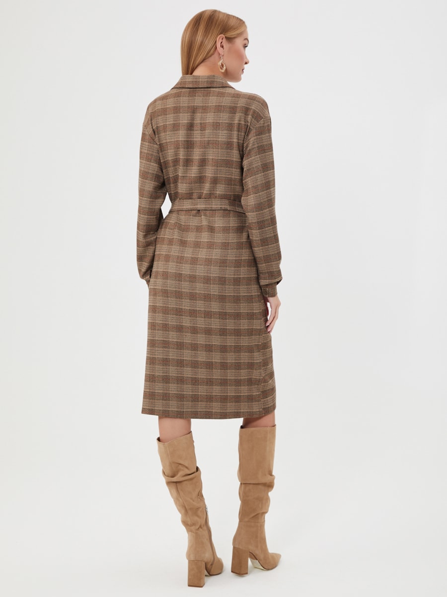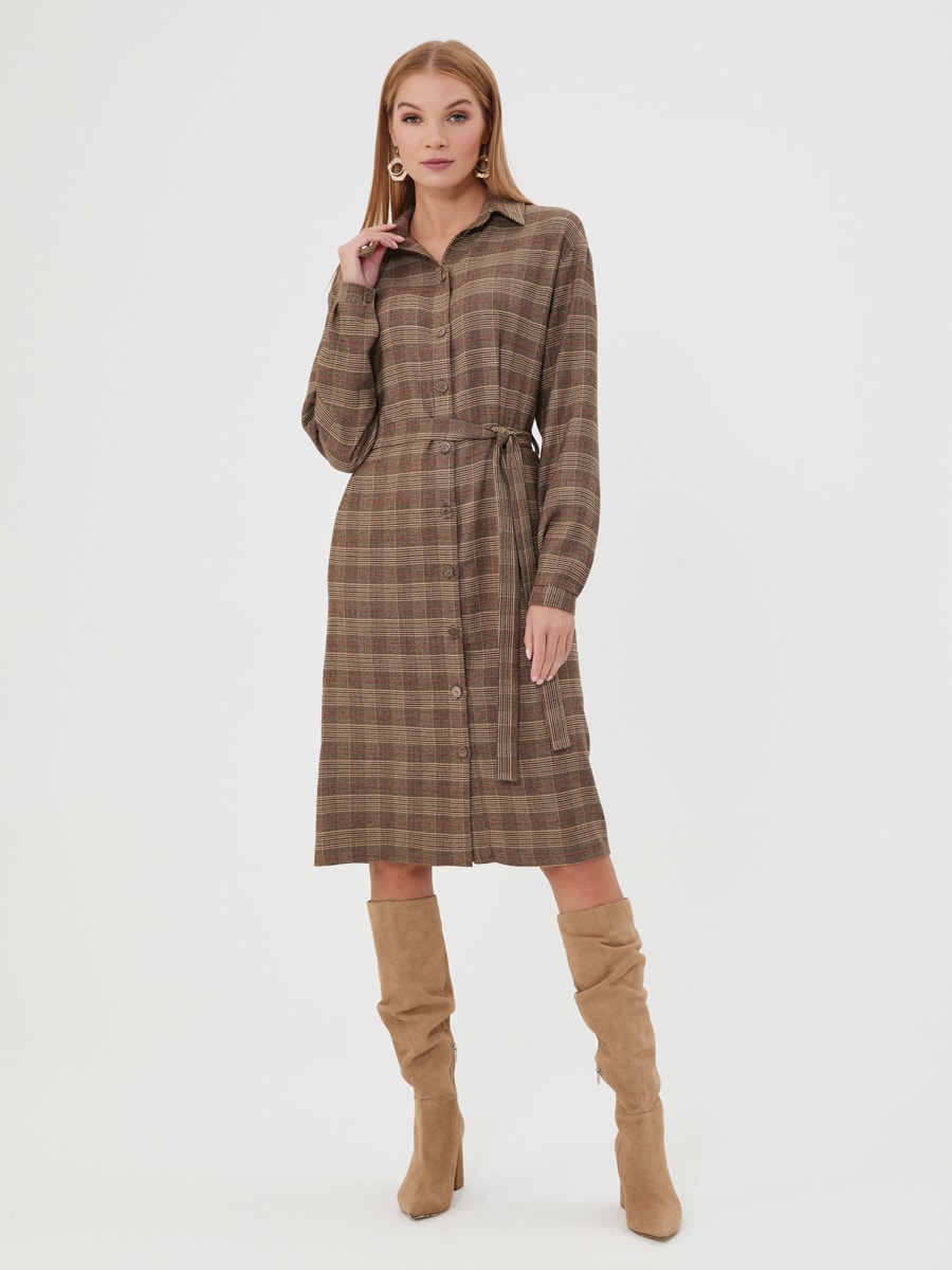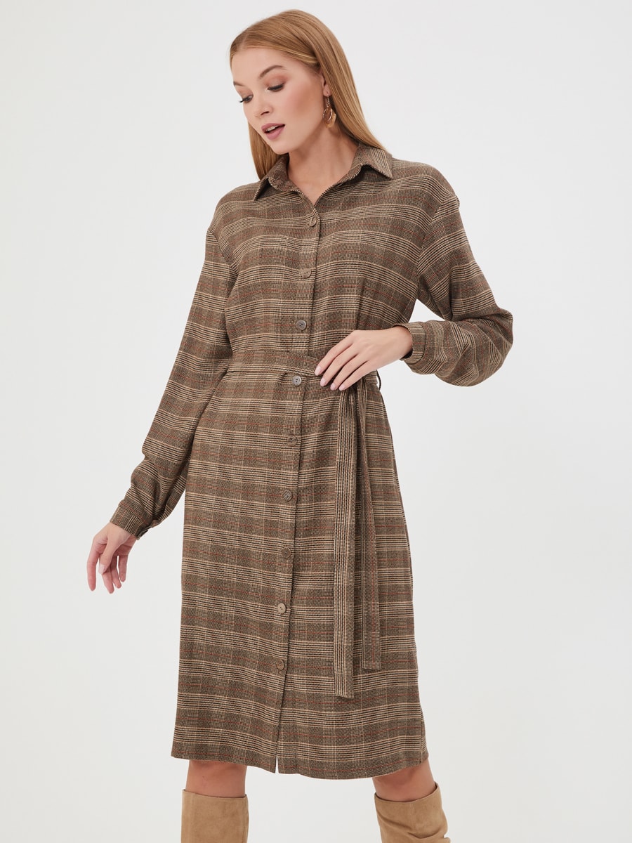 Описание: Платье-рубашка для осенних вечеров, в клетку. Мягкая ткань, пояс в комплекте. Носите как самостоятельную вещь, так и как накидку.
