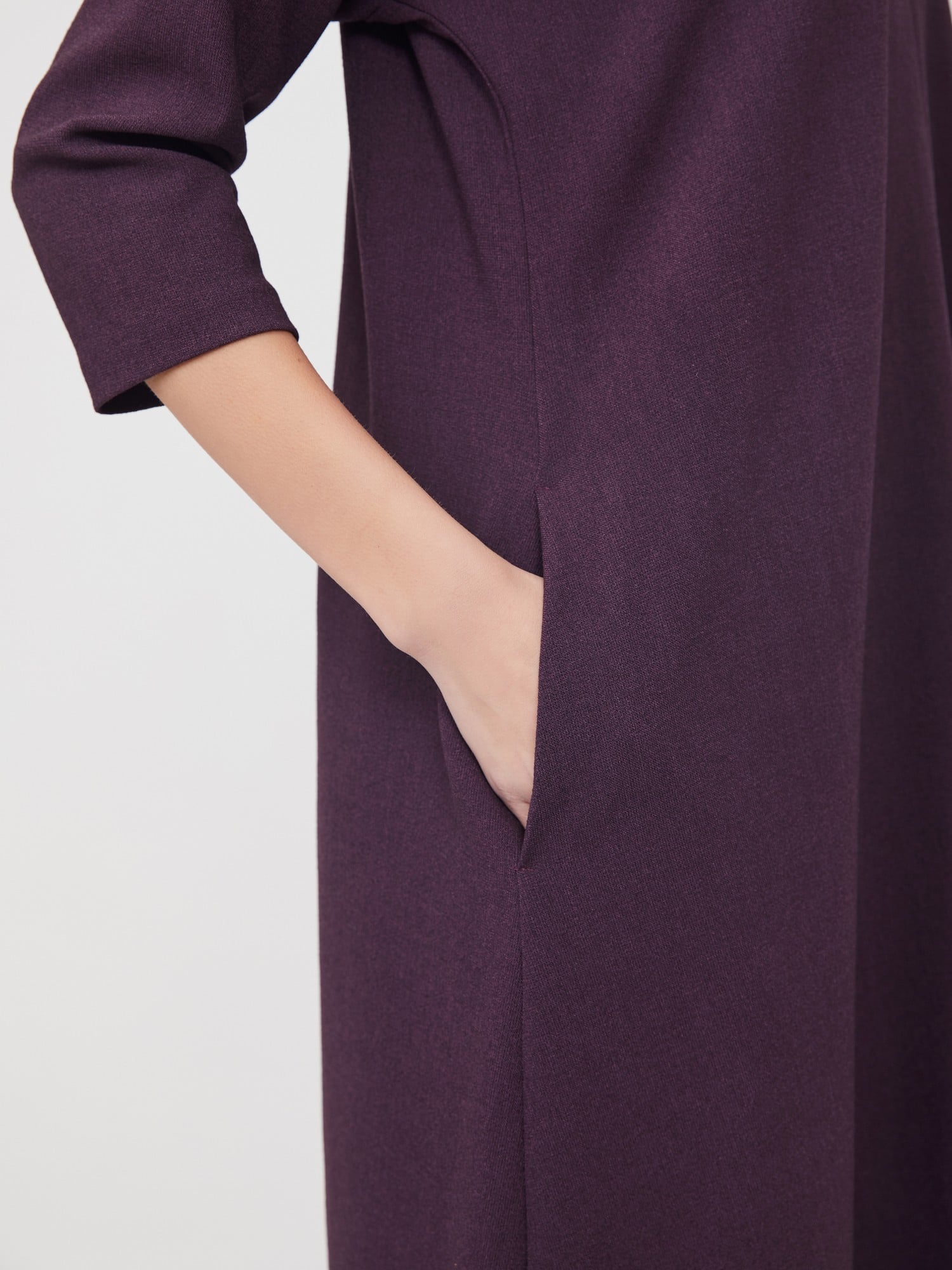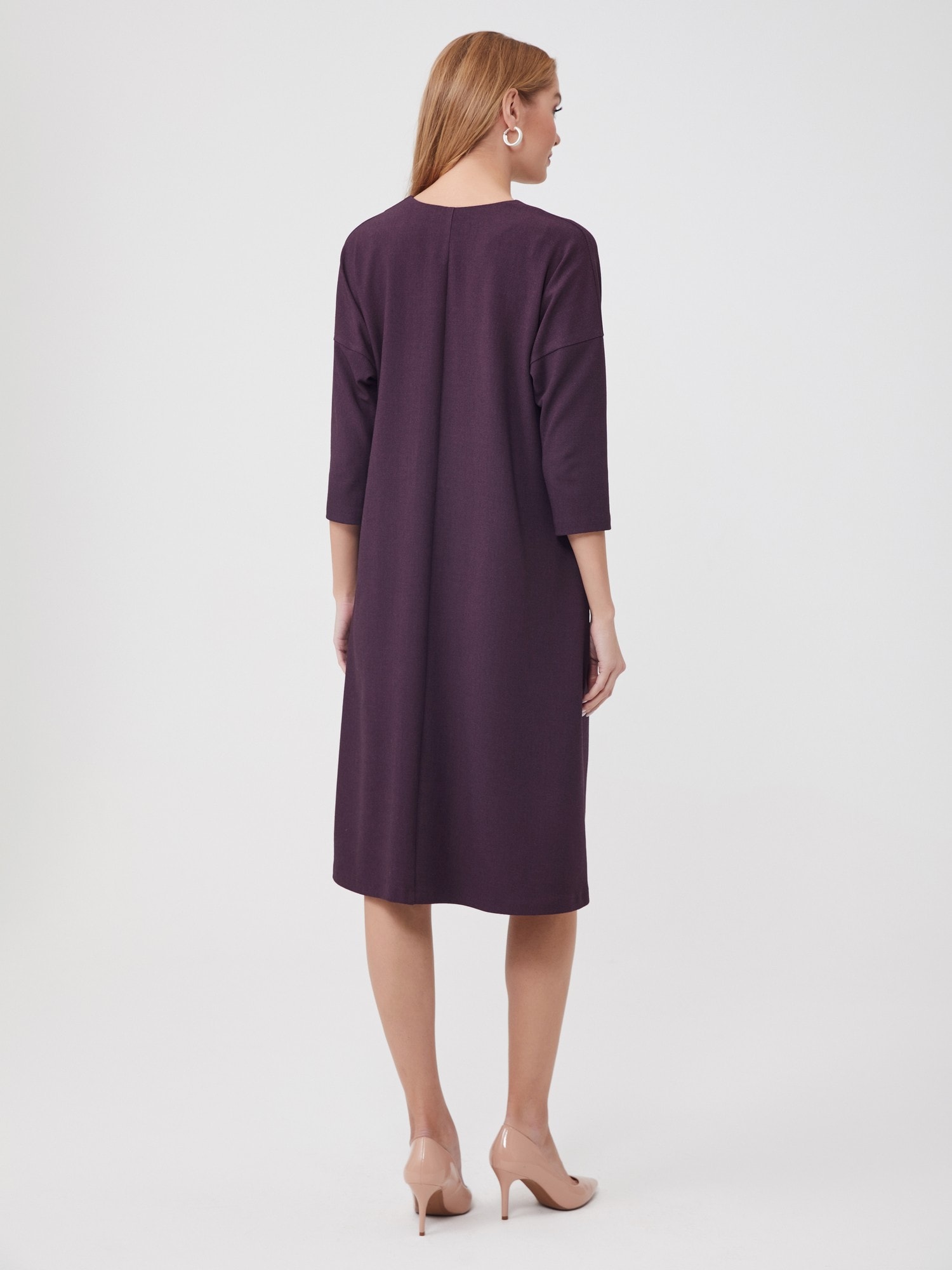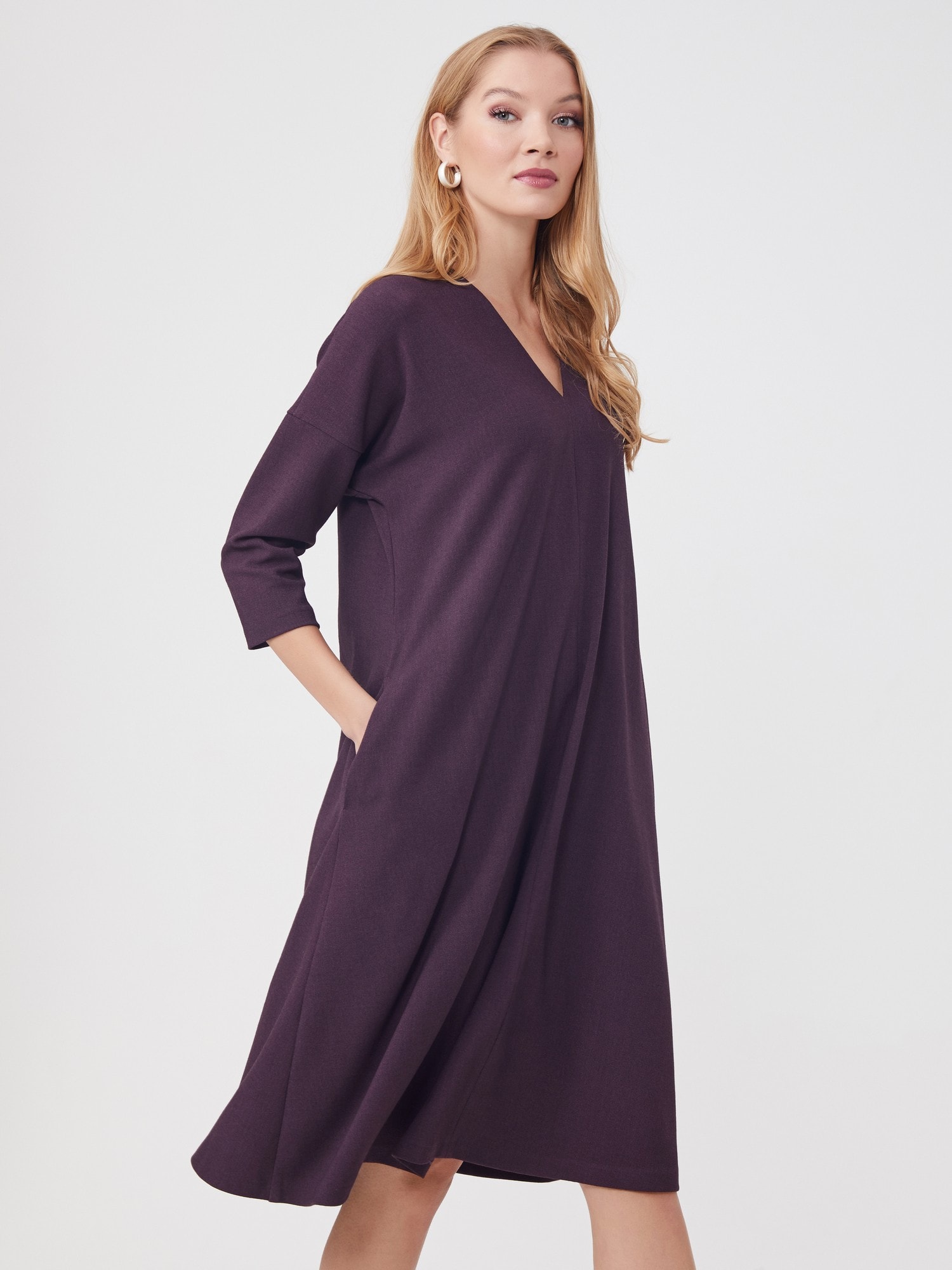 Описание: Платье в сливовом оттенке длины миди. V-образный вырез. Благодаря объемному крою можно легко играть с силуэтом, при желании добавив к платью пояс. Спущенная линия плеча и не широкий рукав для комфортной посадки. В боковых швах спрятаны карманы, чтобы всегда иметь с собой самое необходимое.