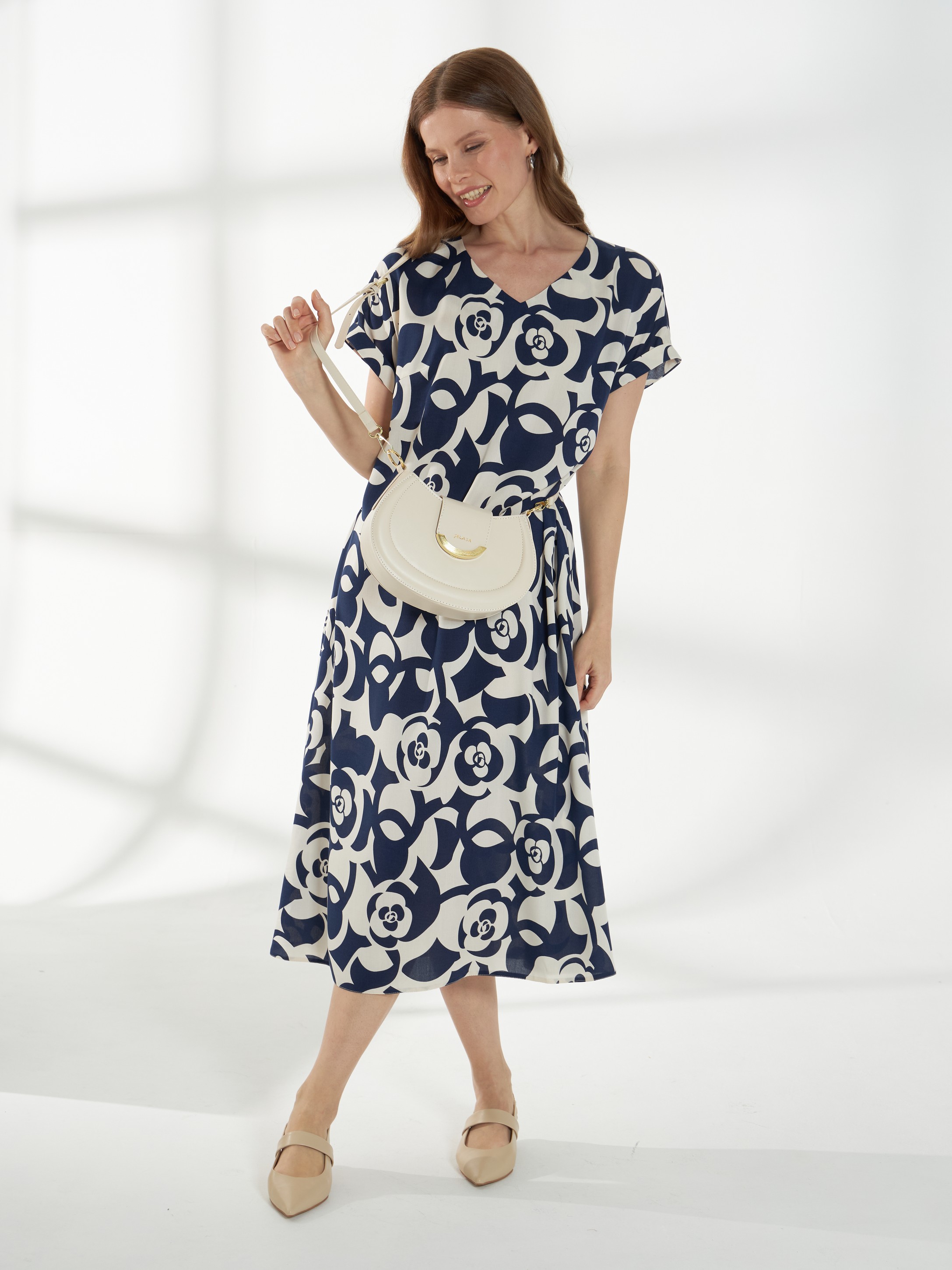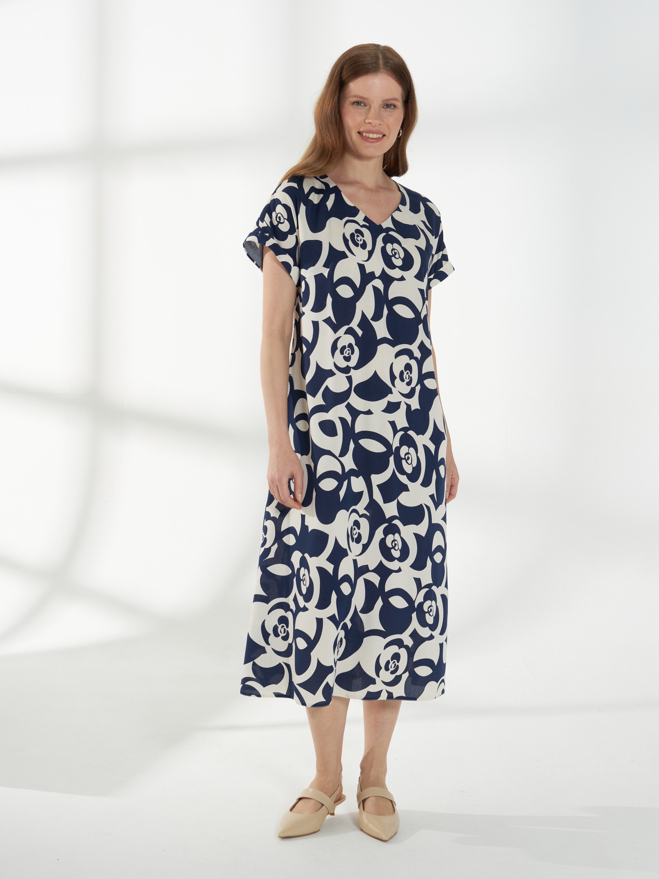 Легкое платье из вискозного штапеля с цветочным принтом «Роза». Свободный А-силуэт мягко ниспадает по фигуре и обеспечивает комфорт в течение дня. Длина миди делает модель универсальной для повседневных и более нарядных образов. Цельнокроеный короткий рукав добавляет легкости, а горловина в форме сердечка аккуратно подчеркивает линию декольте. В боковых швах предусмотрены удобные карманы. Материал приятен к телу, дышащий и комфортный в носке.