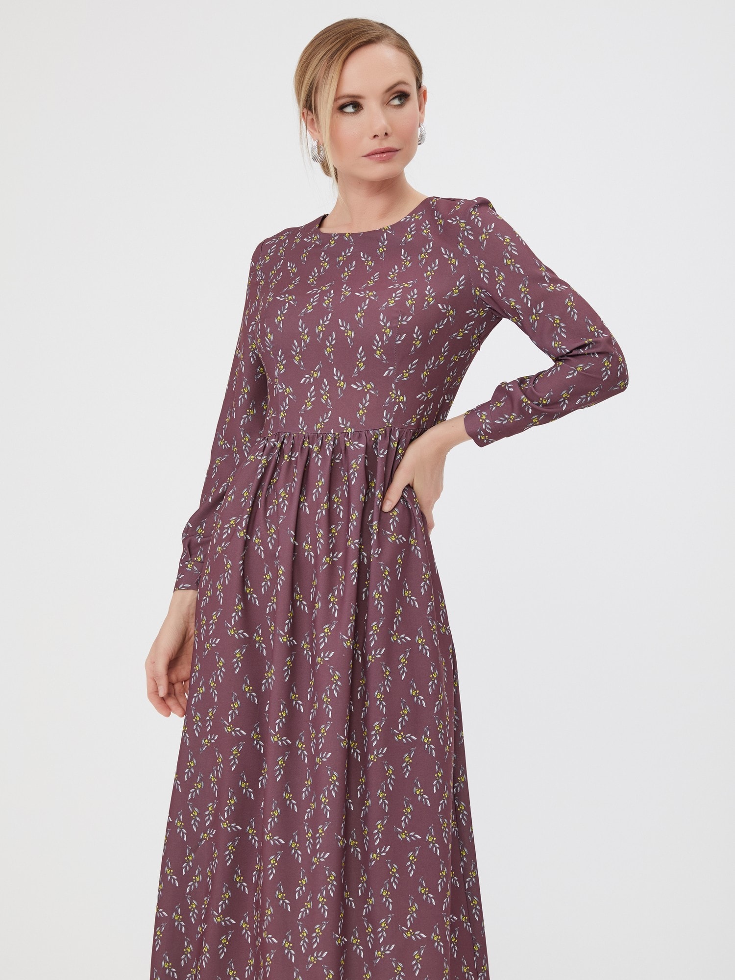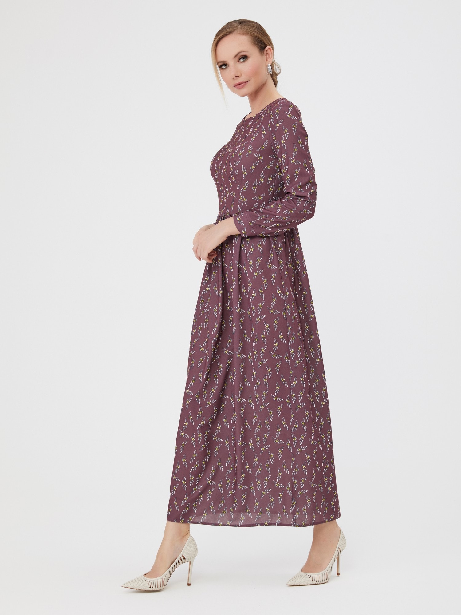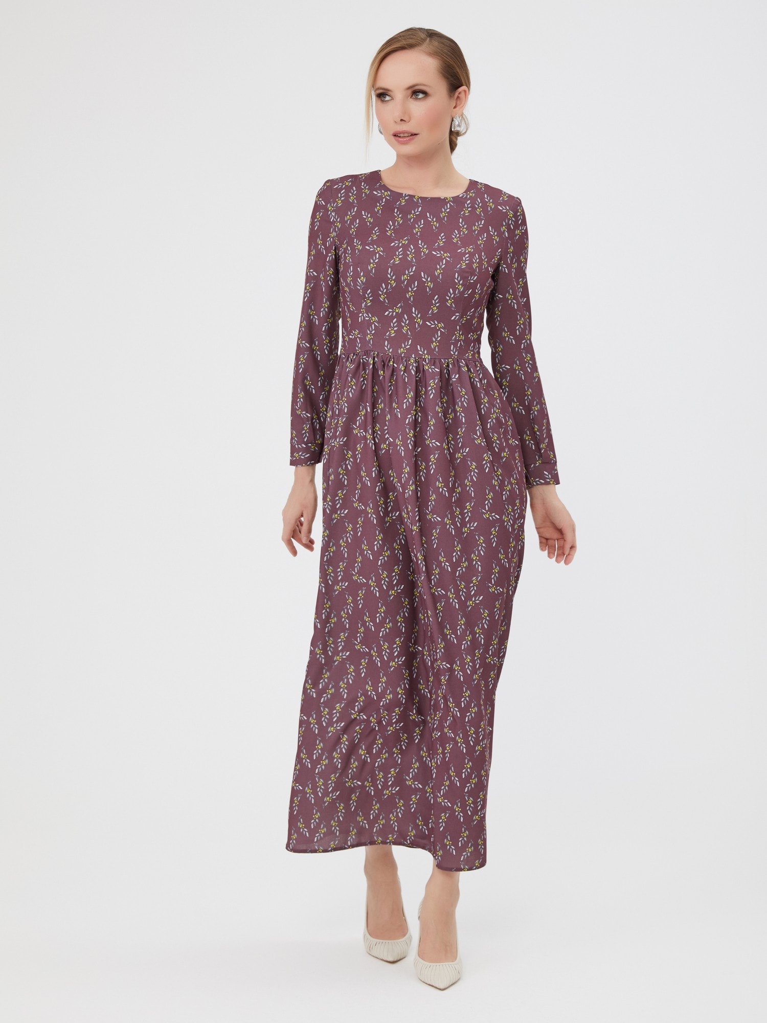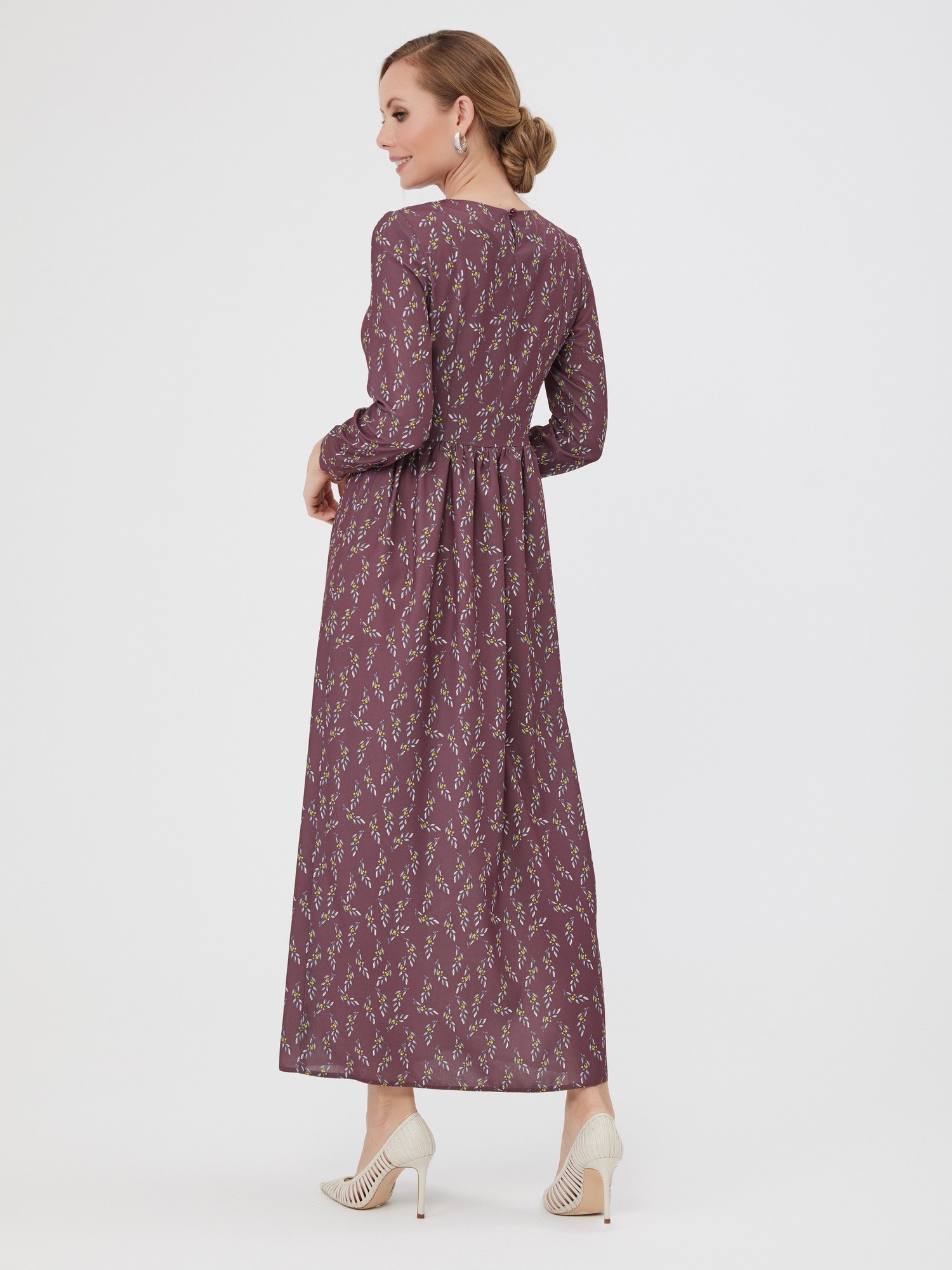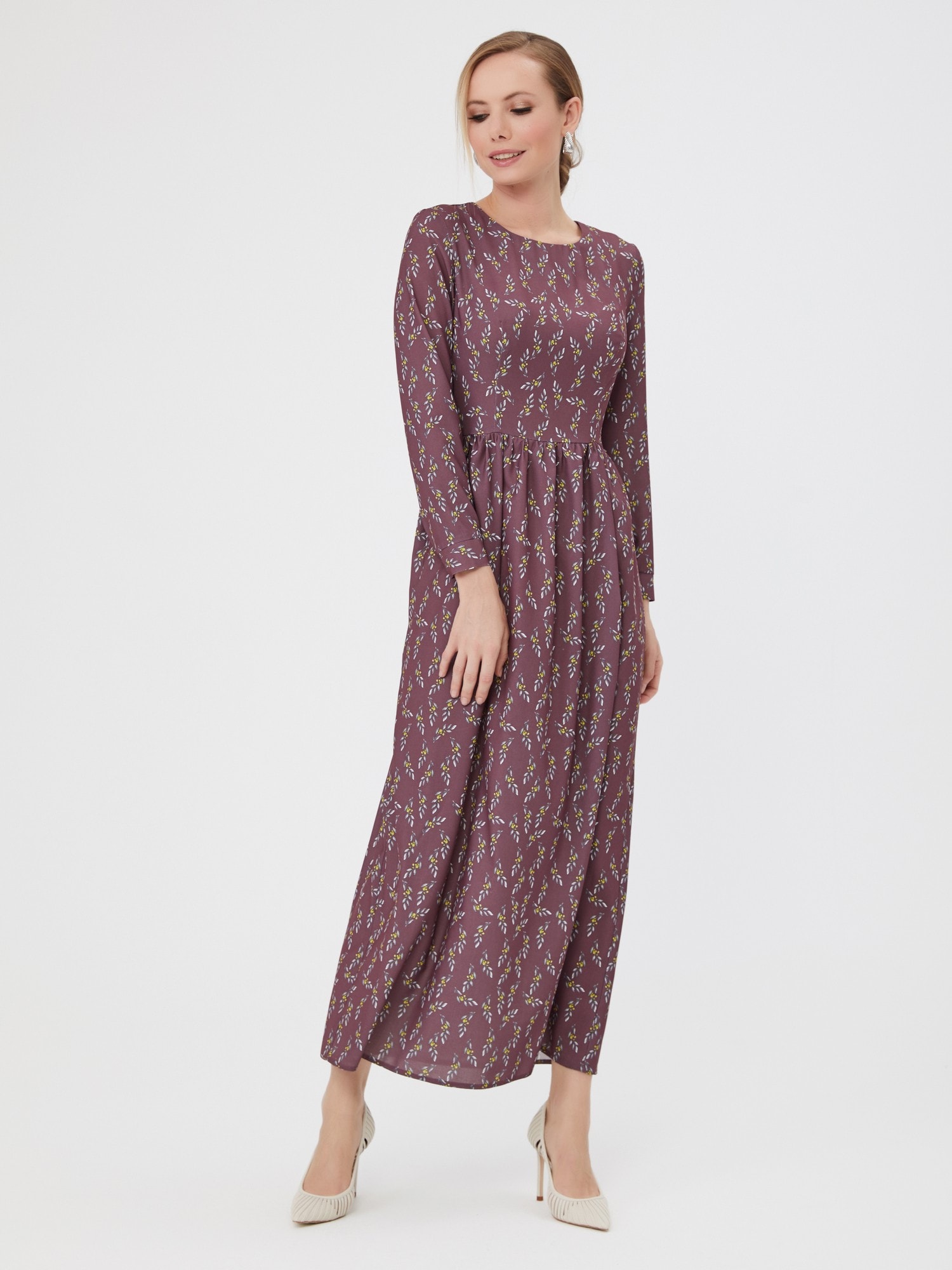 Длинное платье в мелкий цветочный принт. Романтичная юбка со сборкой, застежка на спинке.