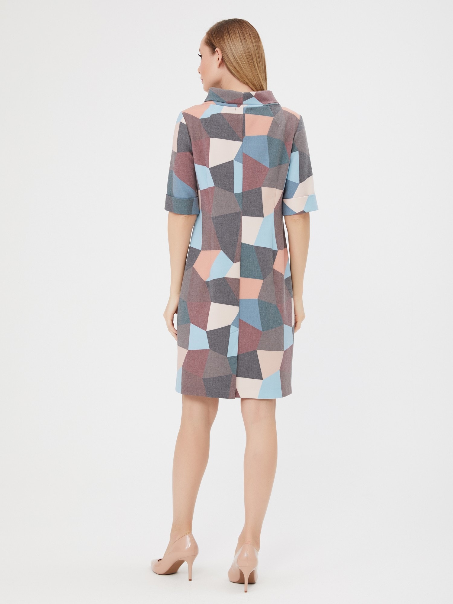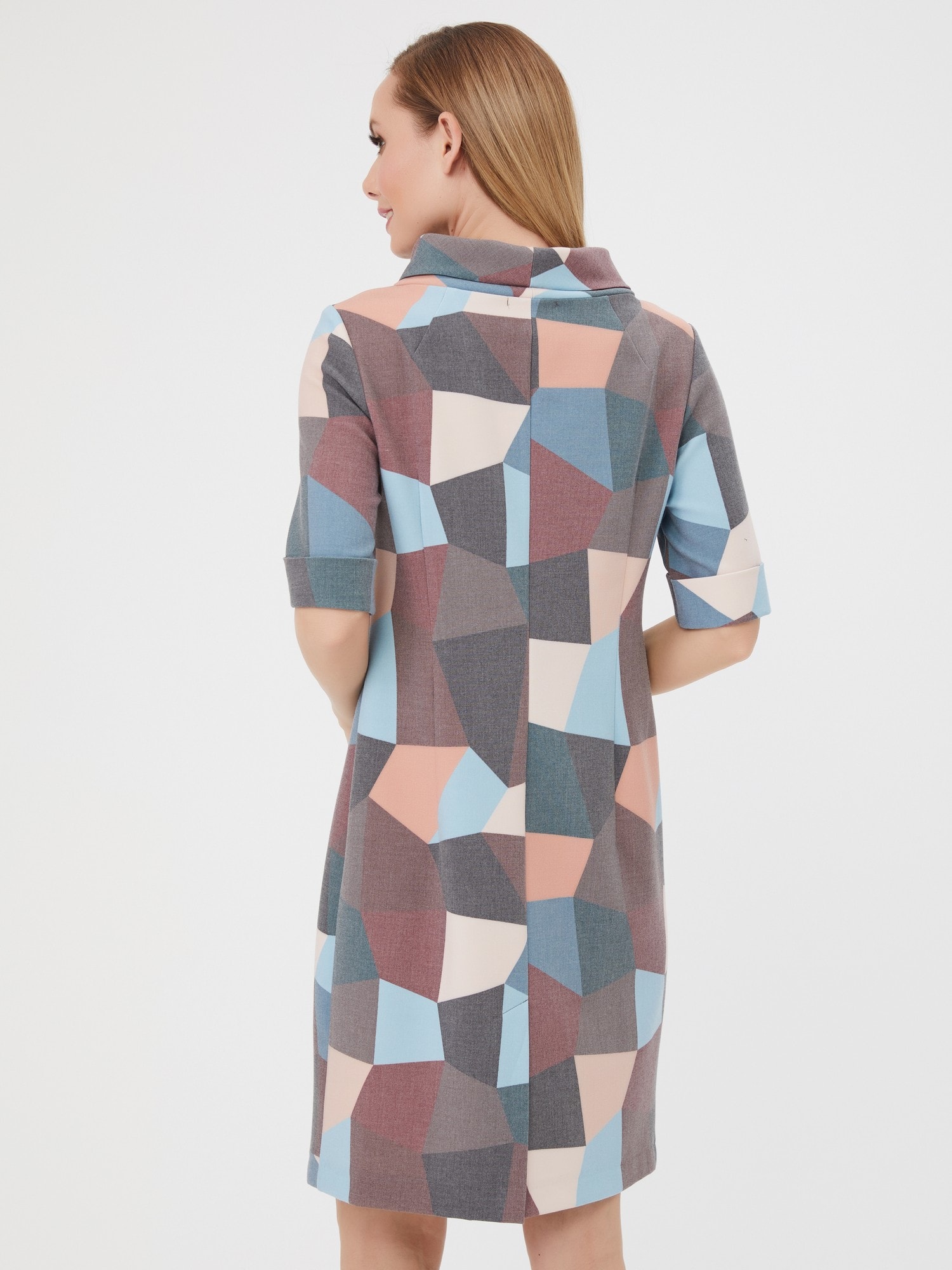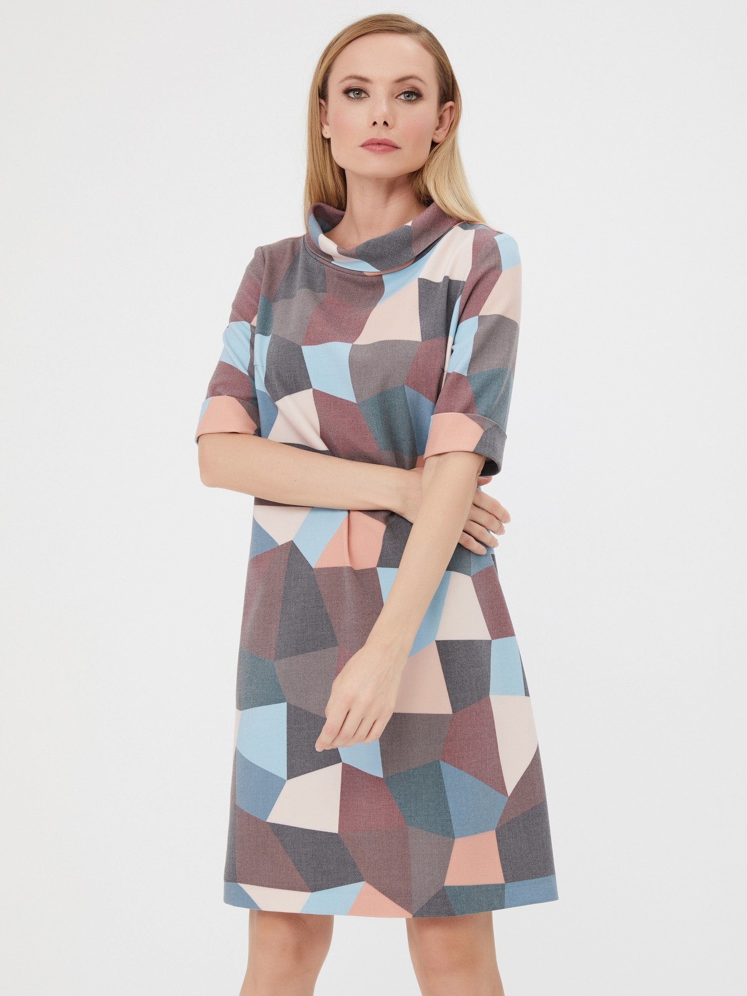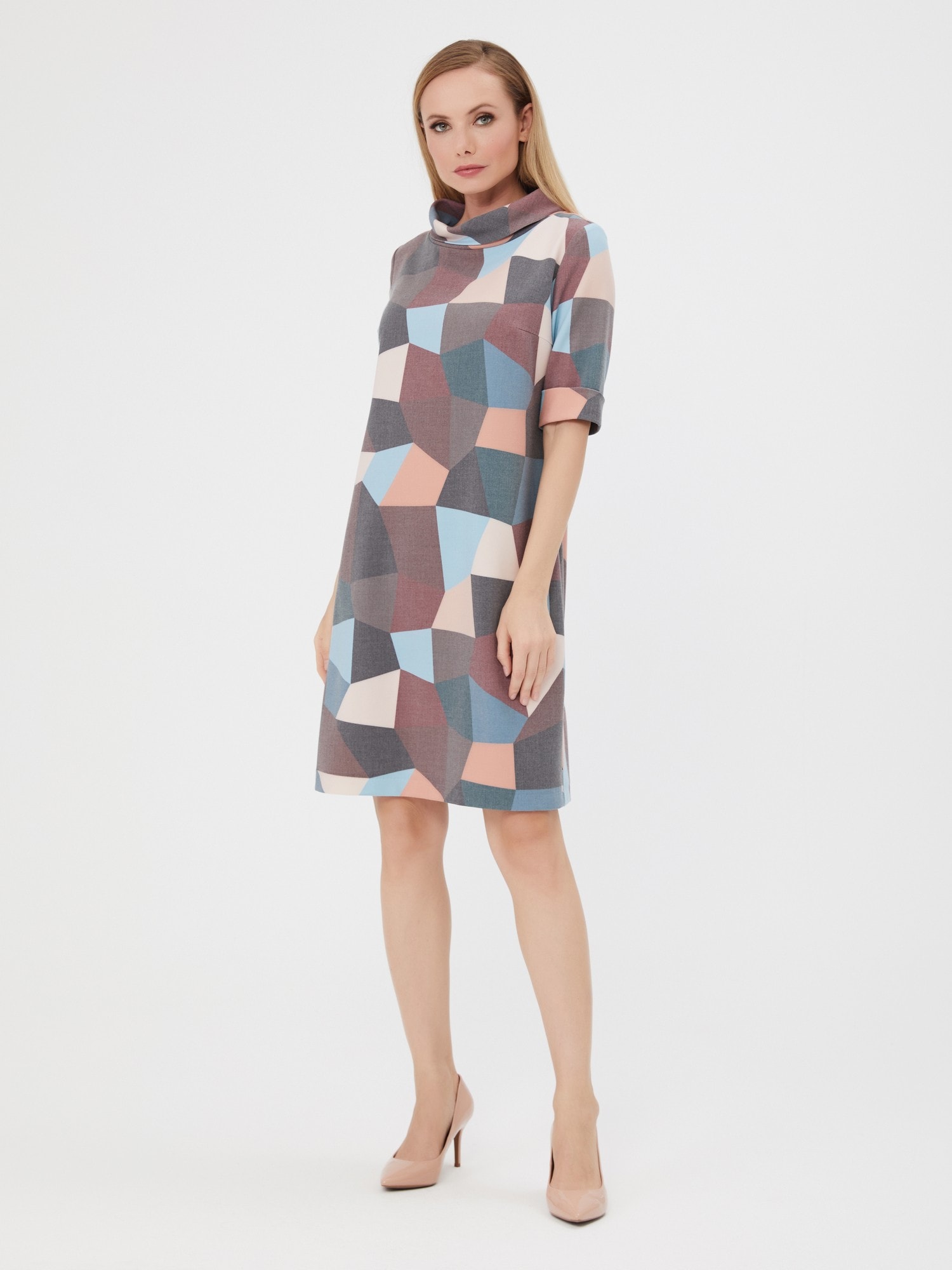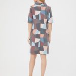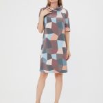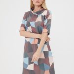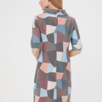 Элегантное платье с отложным воротником-хомутом. Приглушенные оттенки абстрактного принта в сочетании с лаконичной формой делают платье идеальным на каждый день. Изготовлено из приятной, комфортной ткани.
