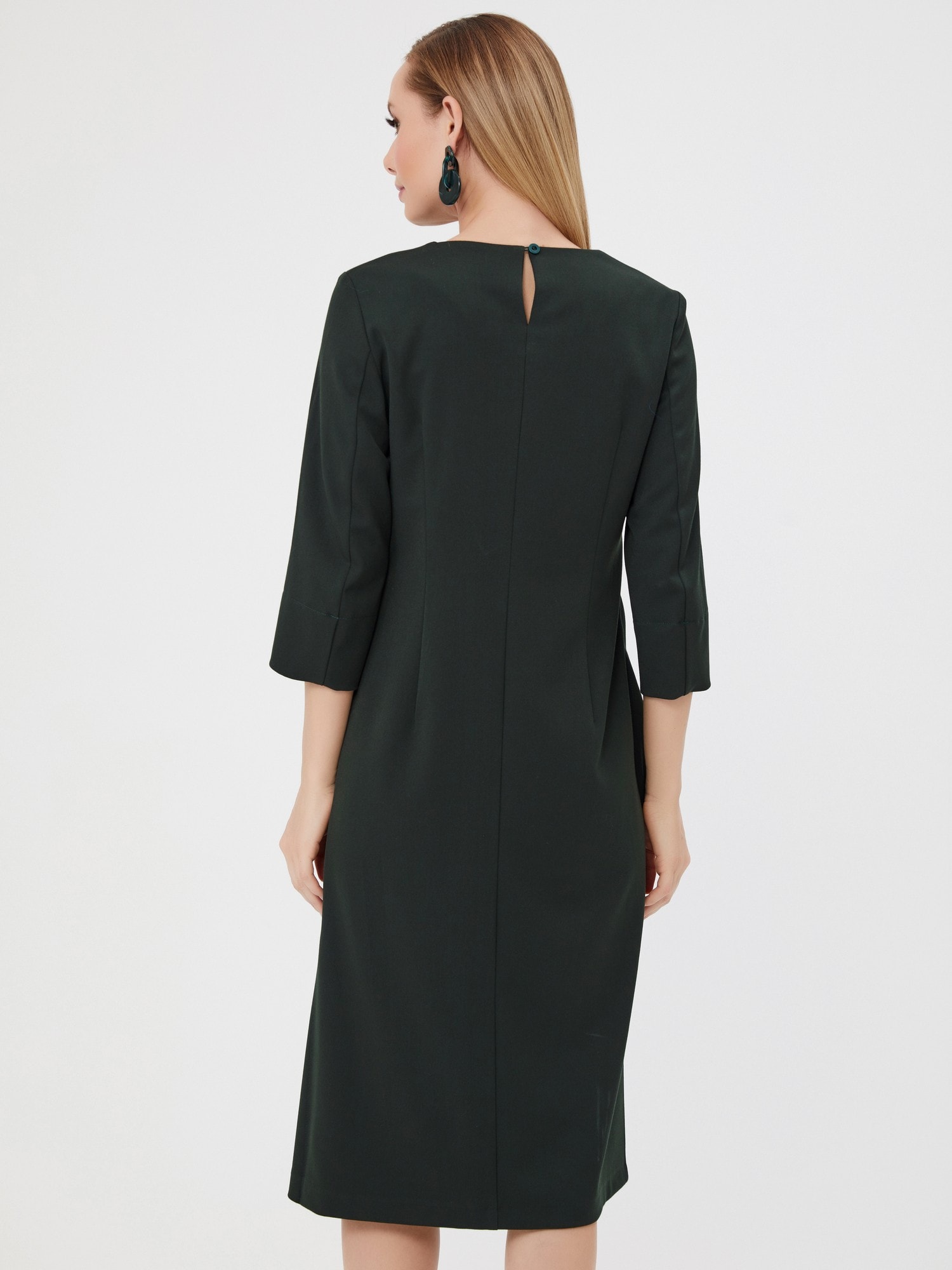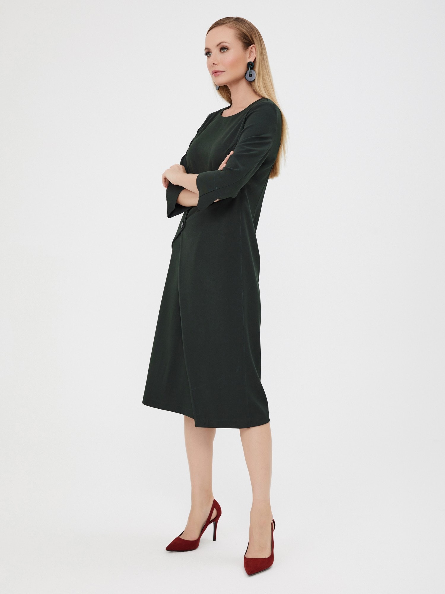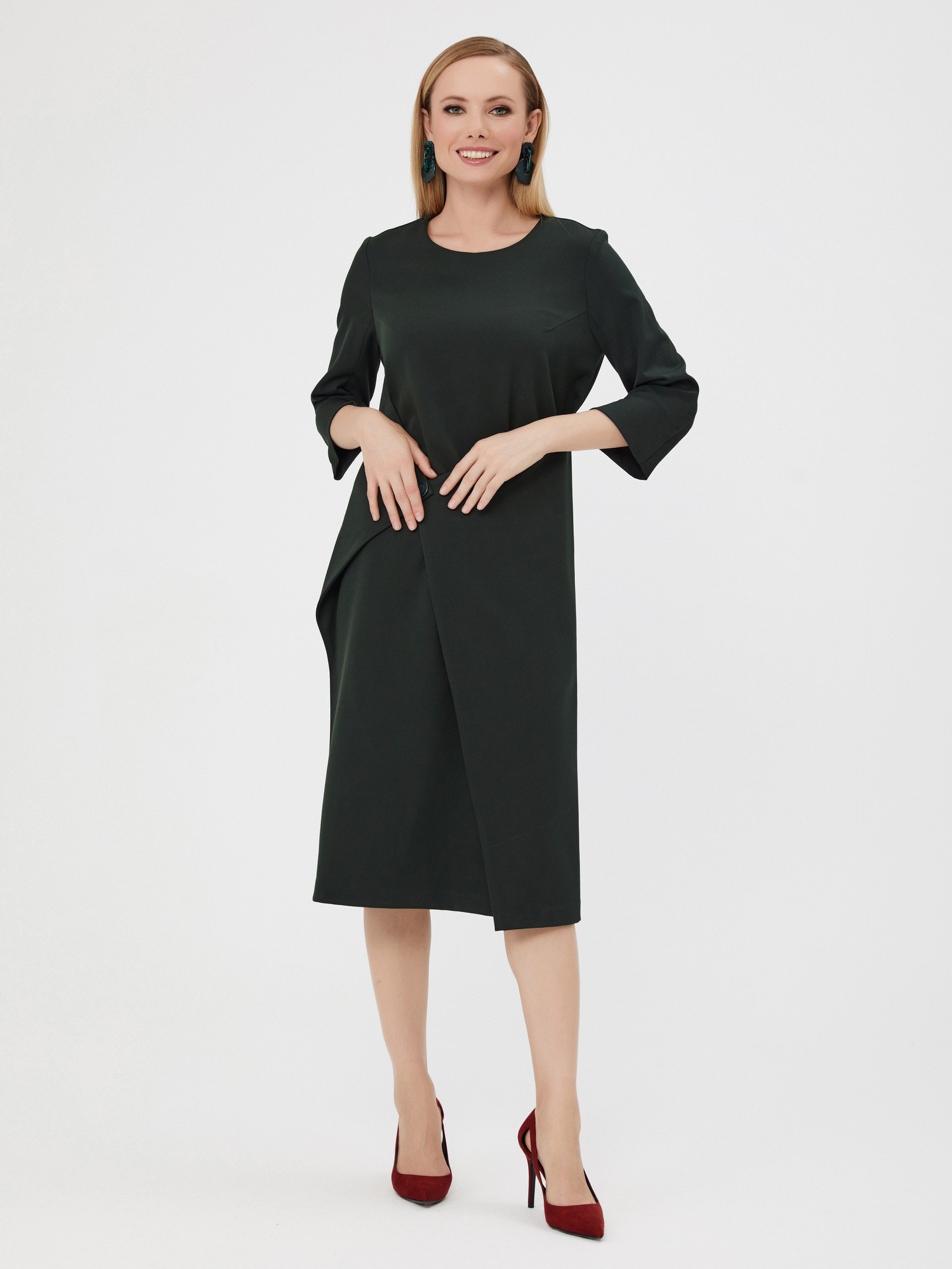Платье-трансформер с ассиметричной деталью. Хит этой осени! Выполнено из насыщенного изумрудного цвета. Это платье выделит вас из толпы своей оригинальностью и идеальной посадкой. Деталь можно застегнуть как спереди, так и сзади.