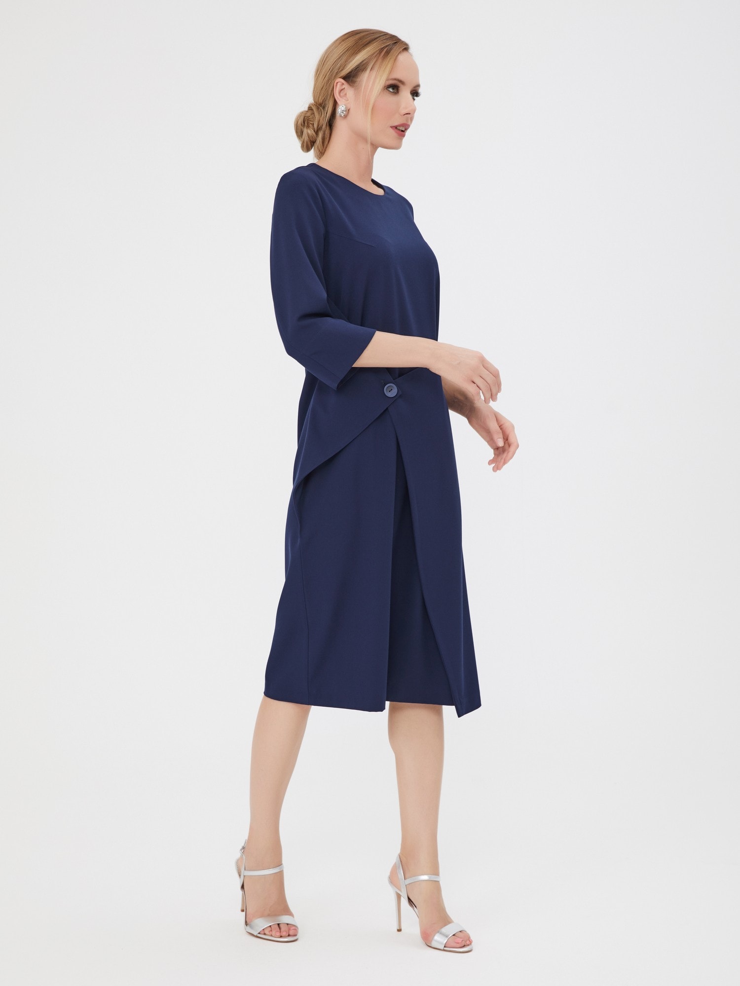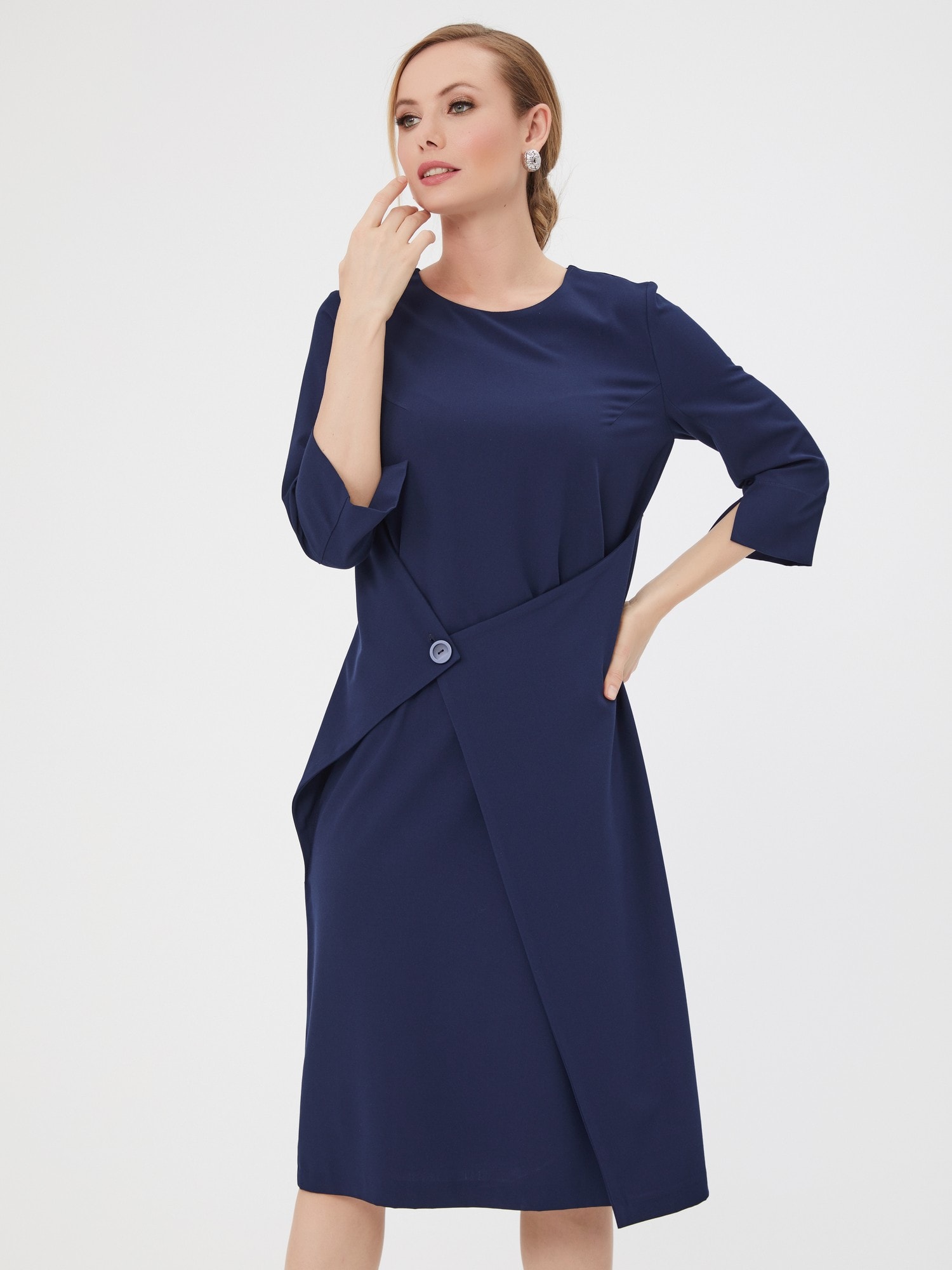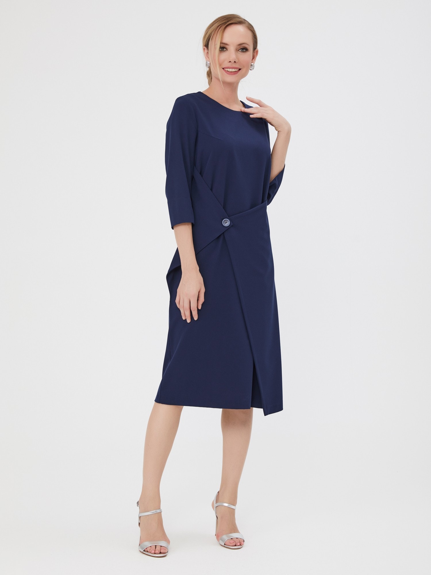 Платье-трансформер с ассиметричной деталью. Хит этой осени! Выполнено из насыщенного синего цвета. Это платье выделит вас из толпы своей оригинальностью и идеальной посадкой. Деталь можно застегнуть как спереди, так и сзади.
