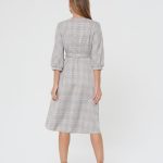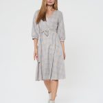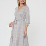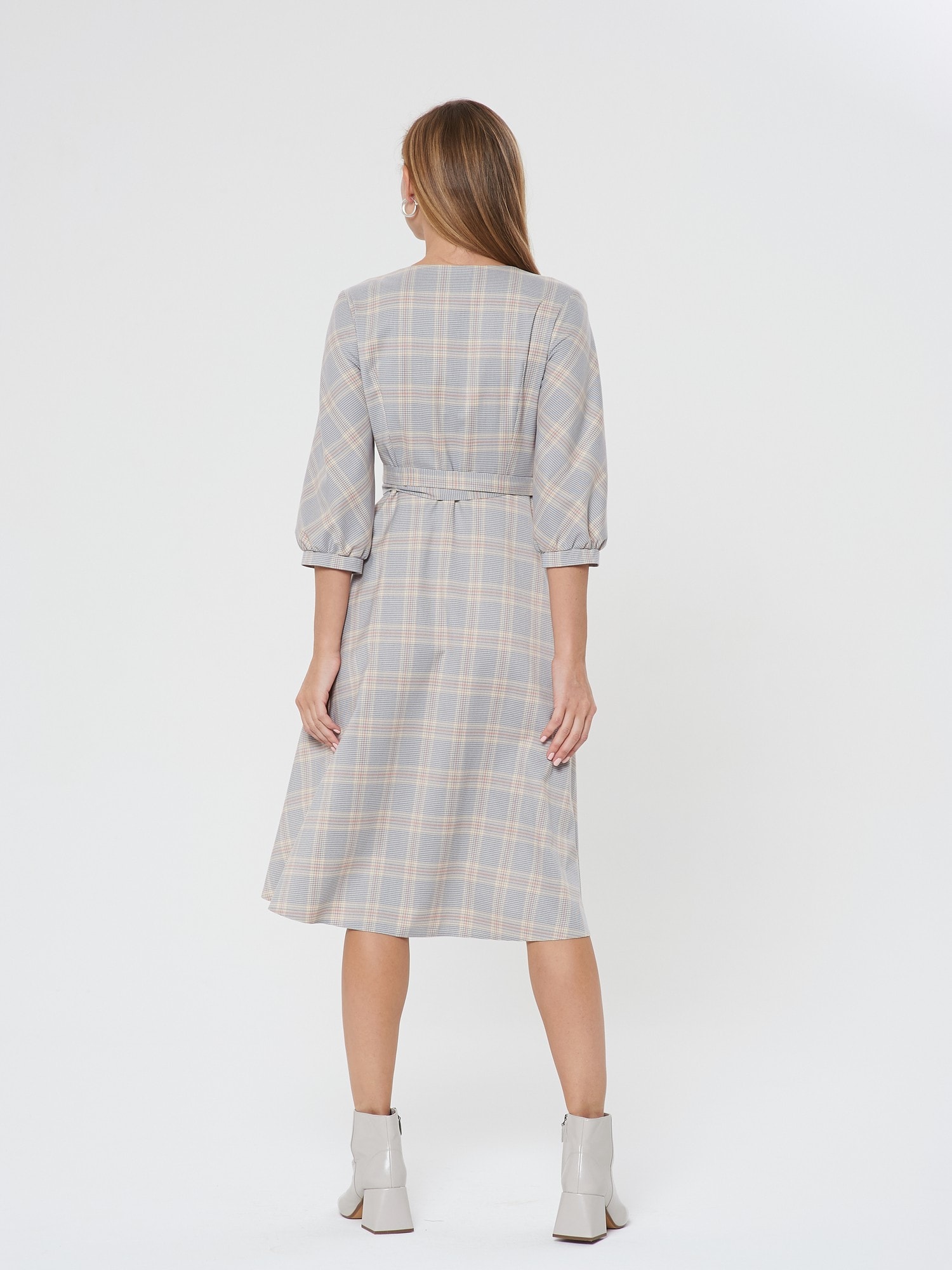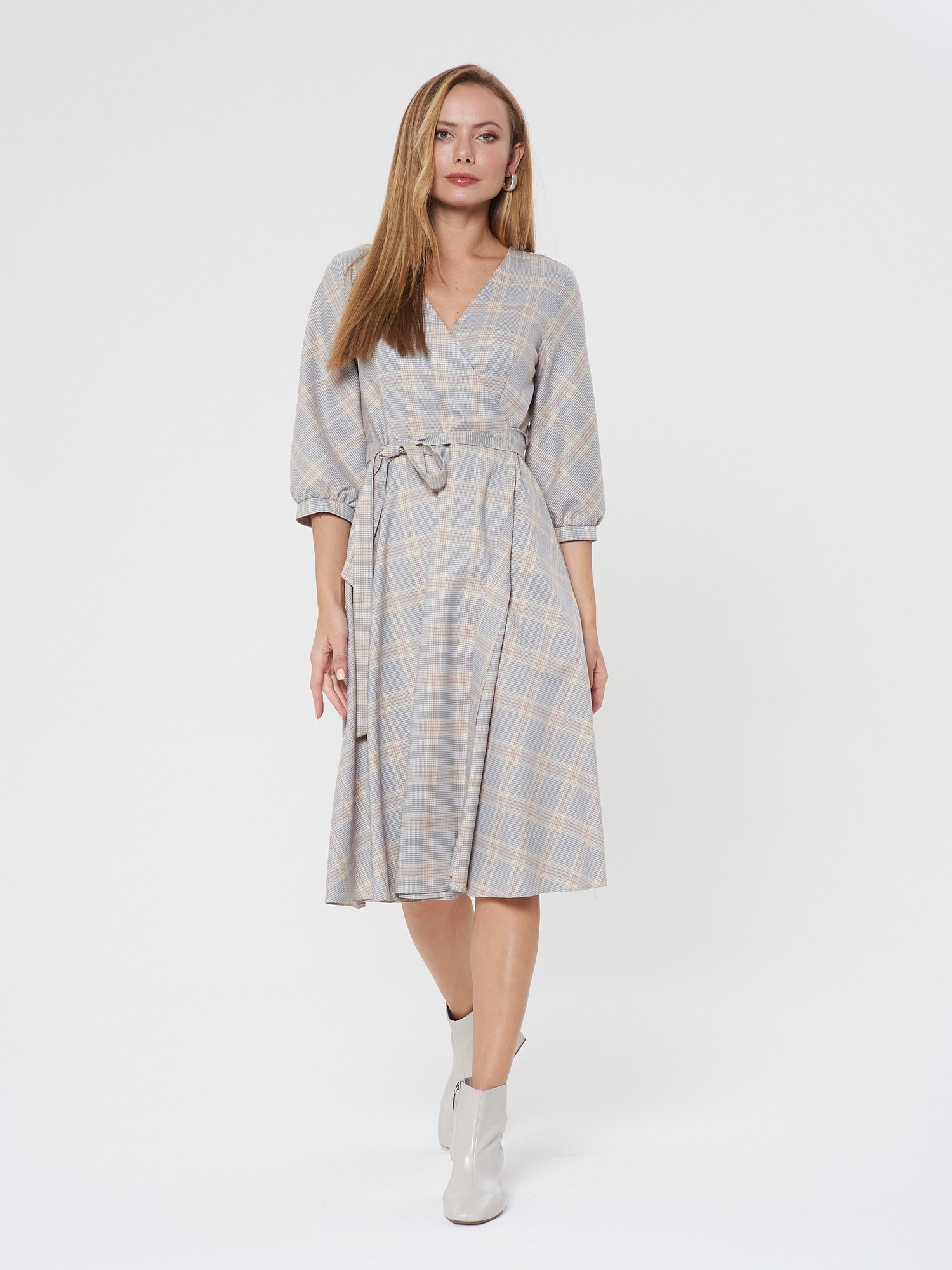 Нежное платье с запахом. Выполнено из серо-розовой шотландки. Объемные рукава собраны на манжеты. Струящаяся юбка будет украшать ваши движения при ходьбе.