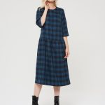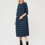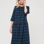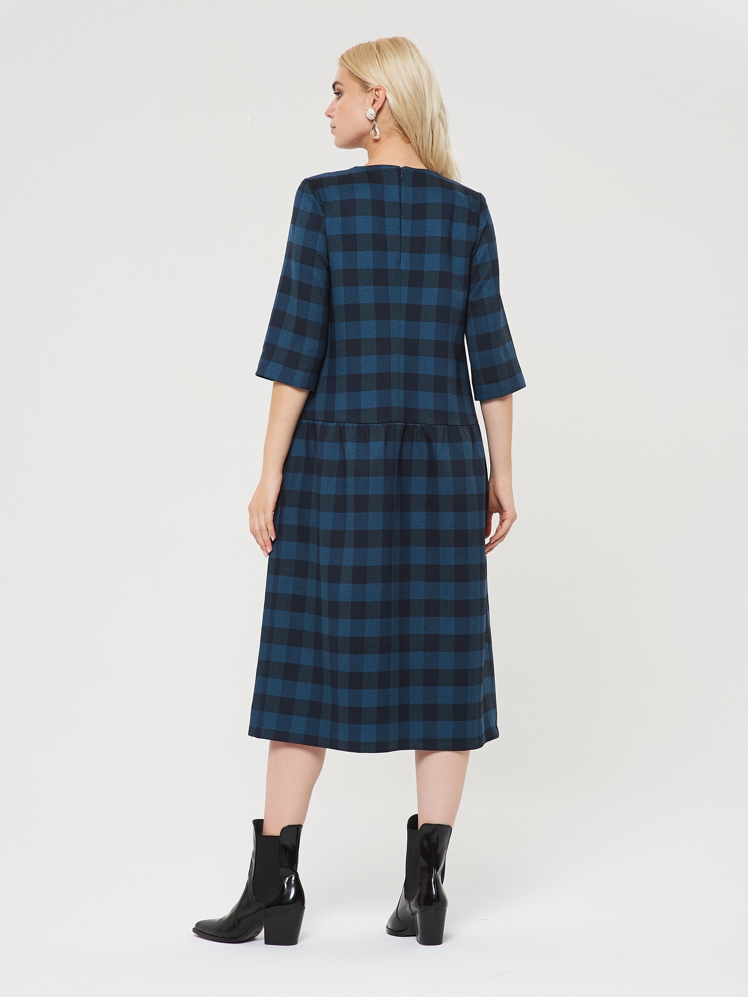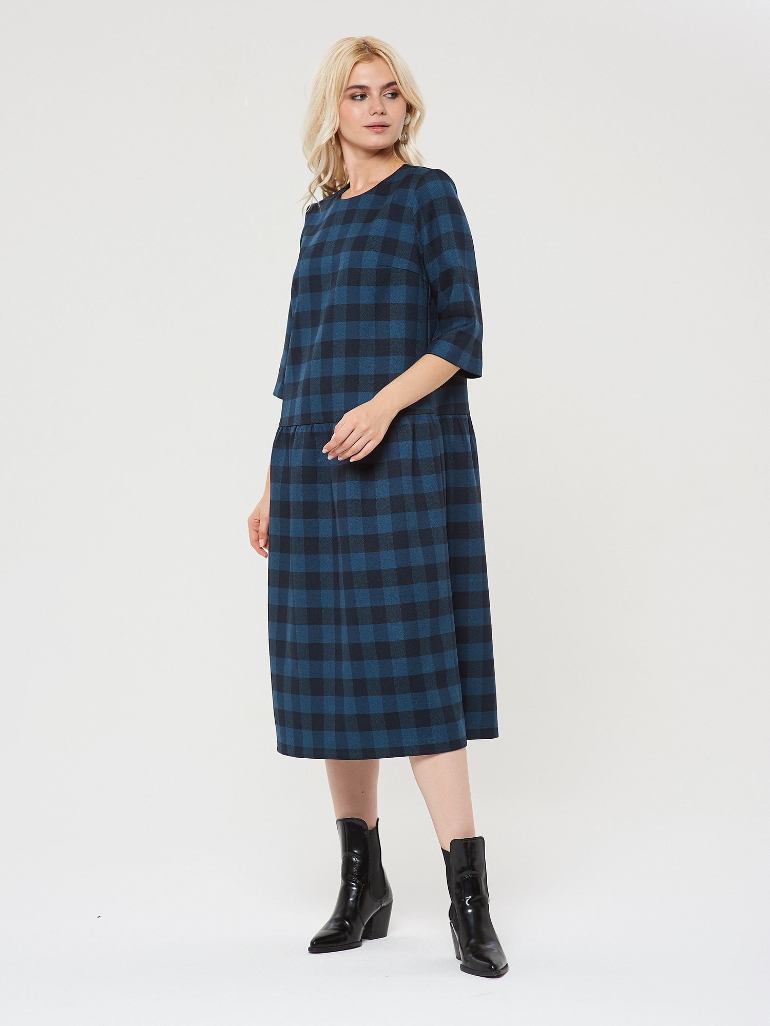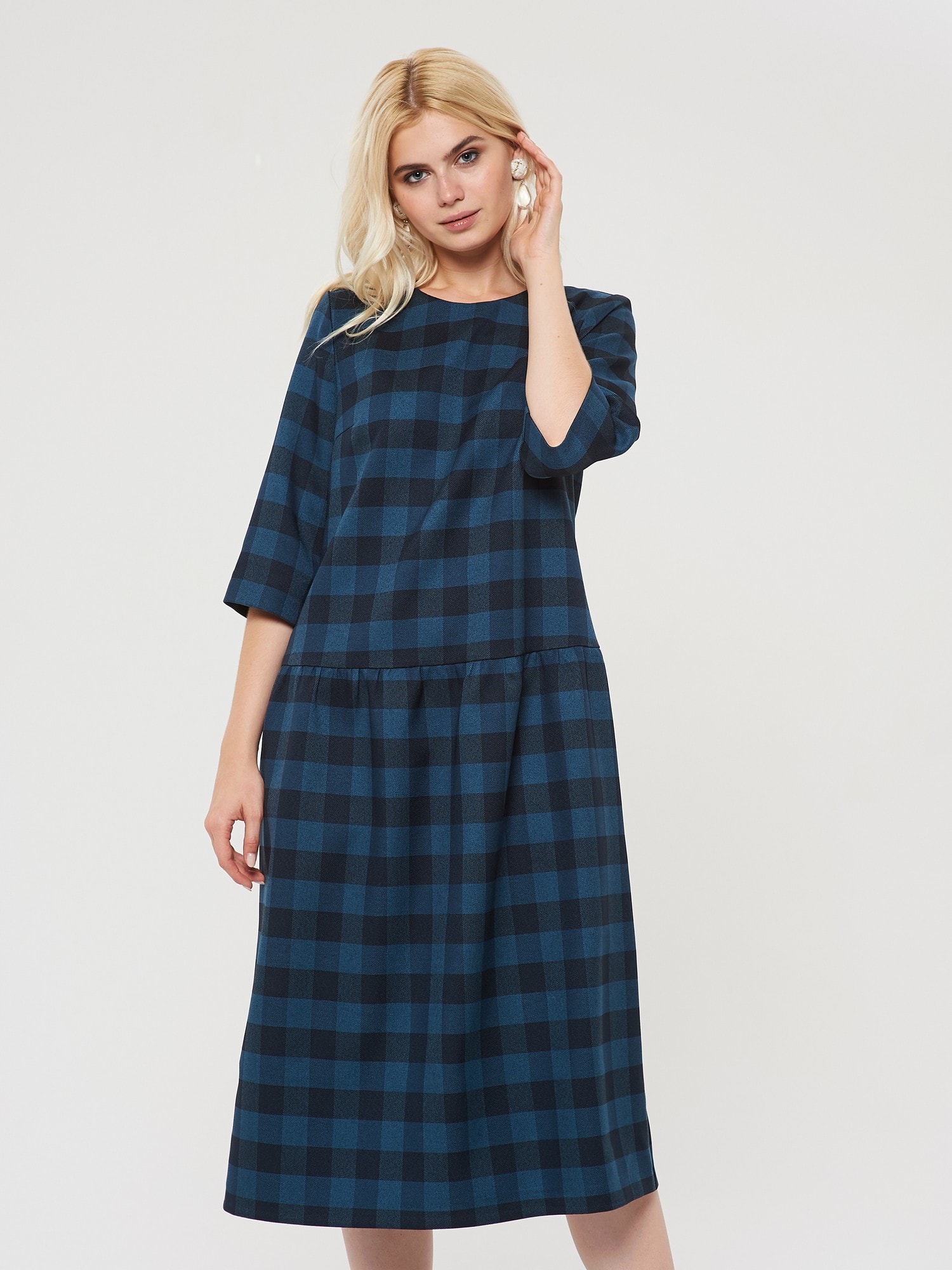 Платье baby-doll со спущенной линией талии. Выполнено из ткани в черно-синюю клетку "буффало". Прекрасно сочетается как с сапожками, так и с туфлями.