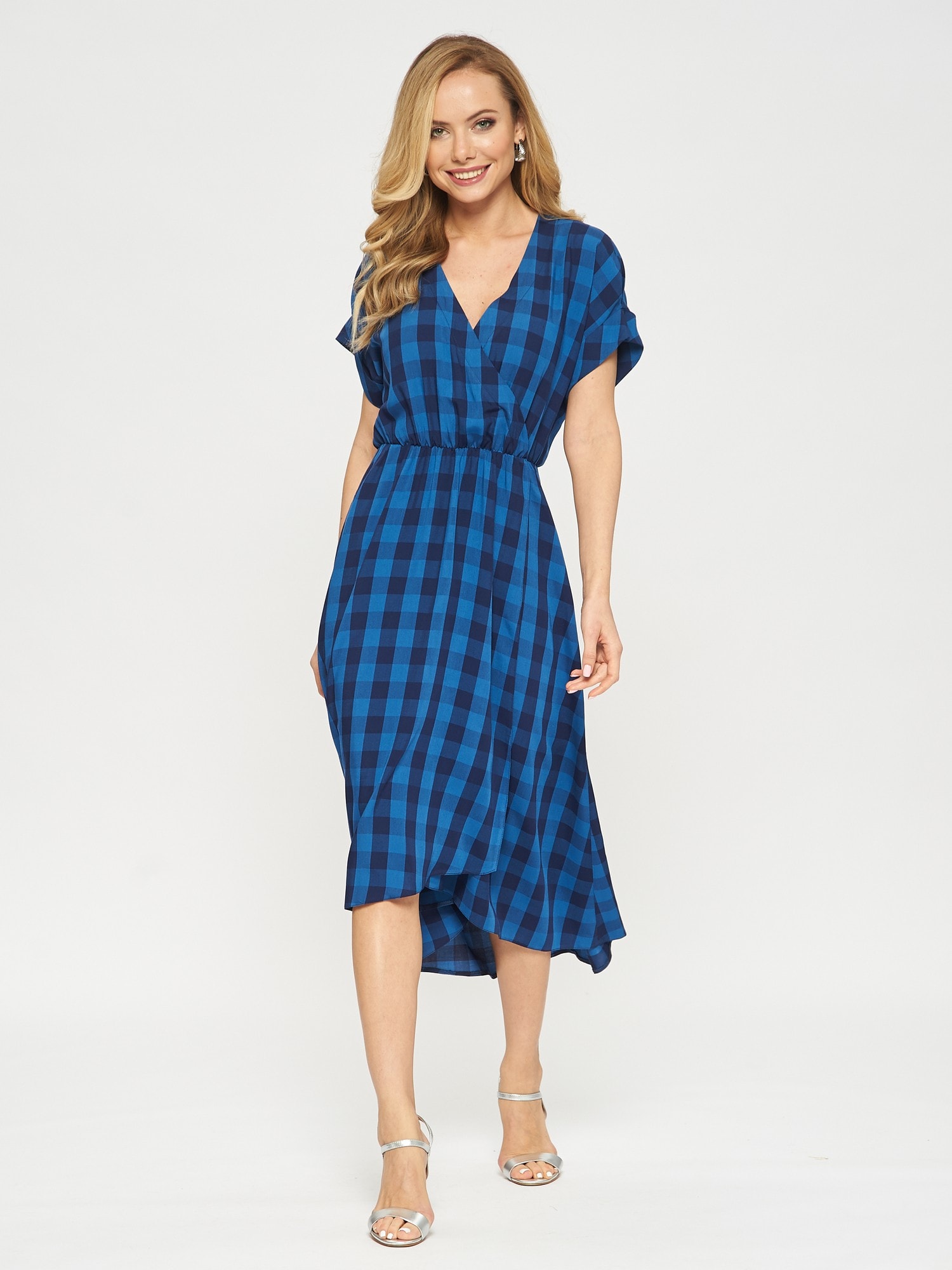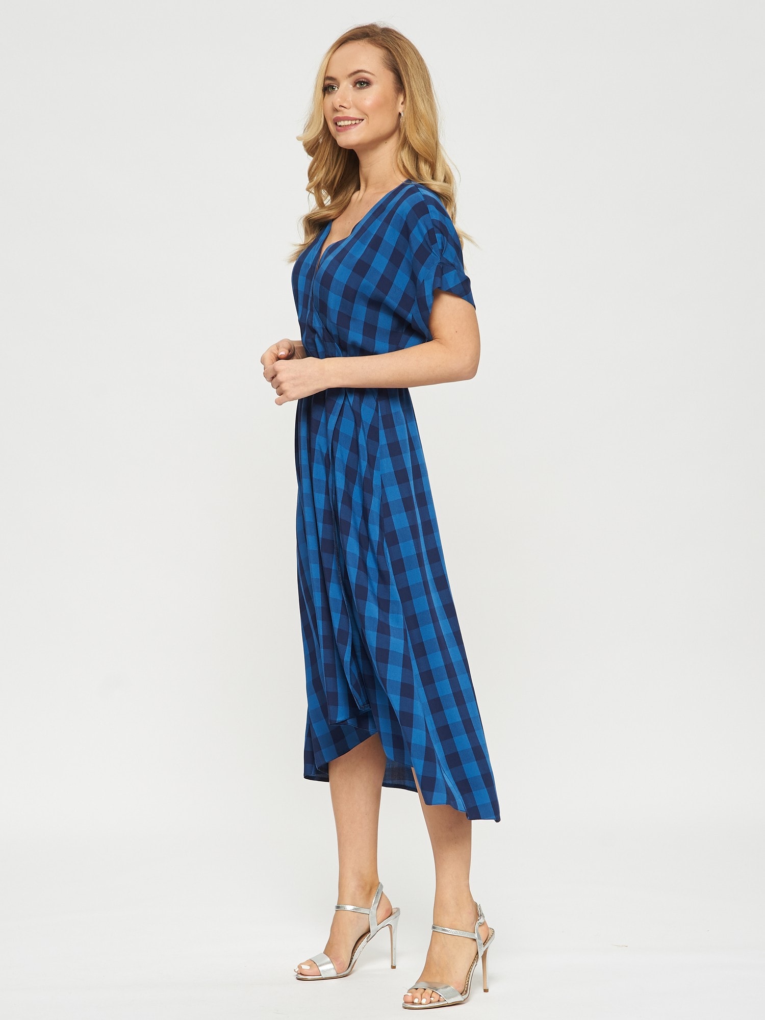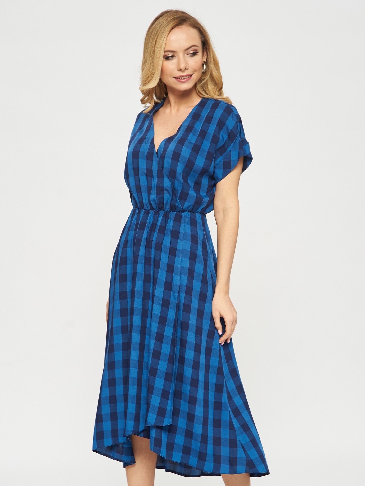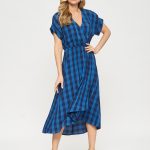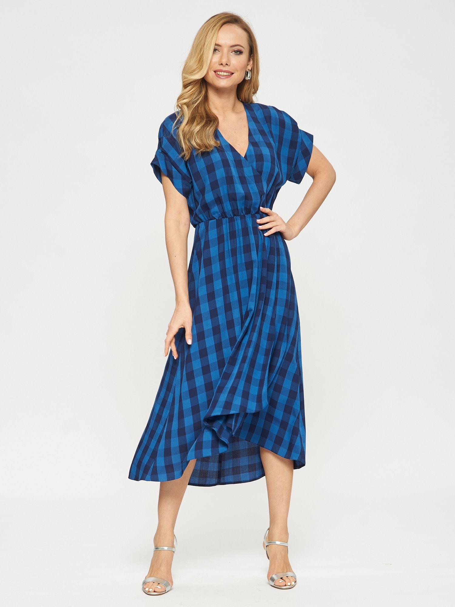 Платье в клетку в стиле Диор. Юбка и топ платья выполнены с запахом. Талия на резинке, отвороты на рукавах.