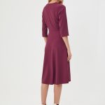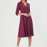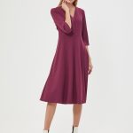 Описание: Платье из комфортной , достаточно эластичной ткани, цвета брусники, в мелкую крапинку. Платье средней длины, отрезное по талии, со свободной, нисподающей волнами юбкой. V-образная линия горловины, рукав 3/4. Средний шов по переду платья. Новая модель для повседневной носки.