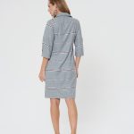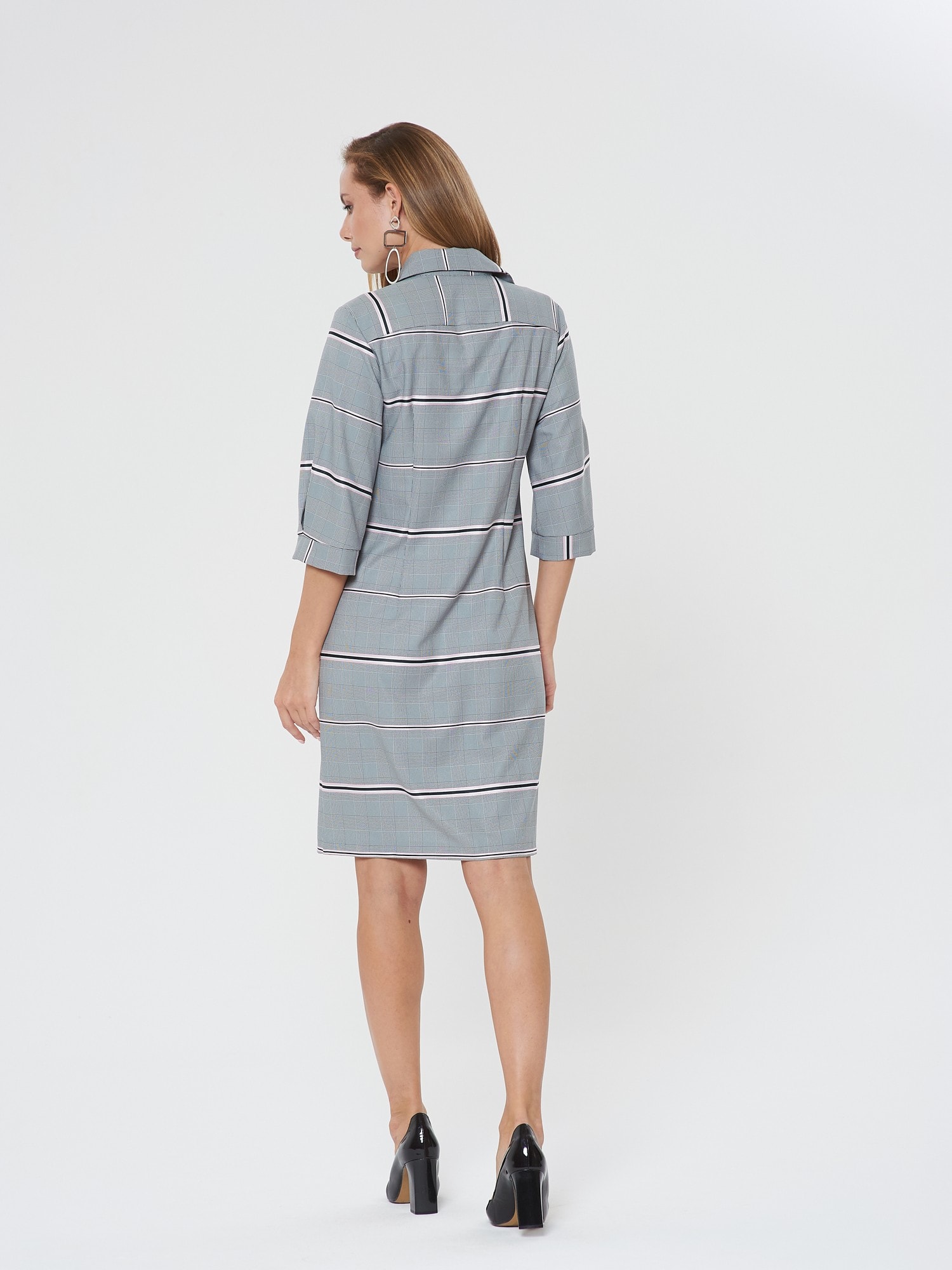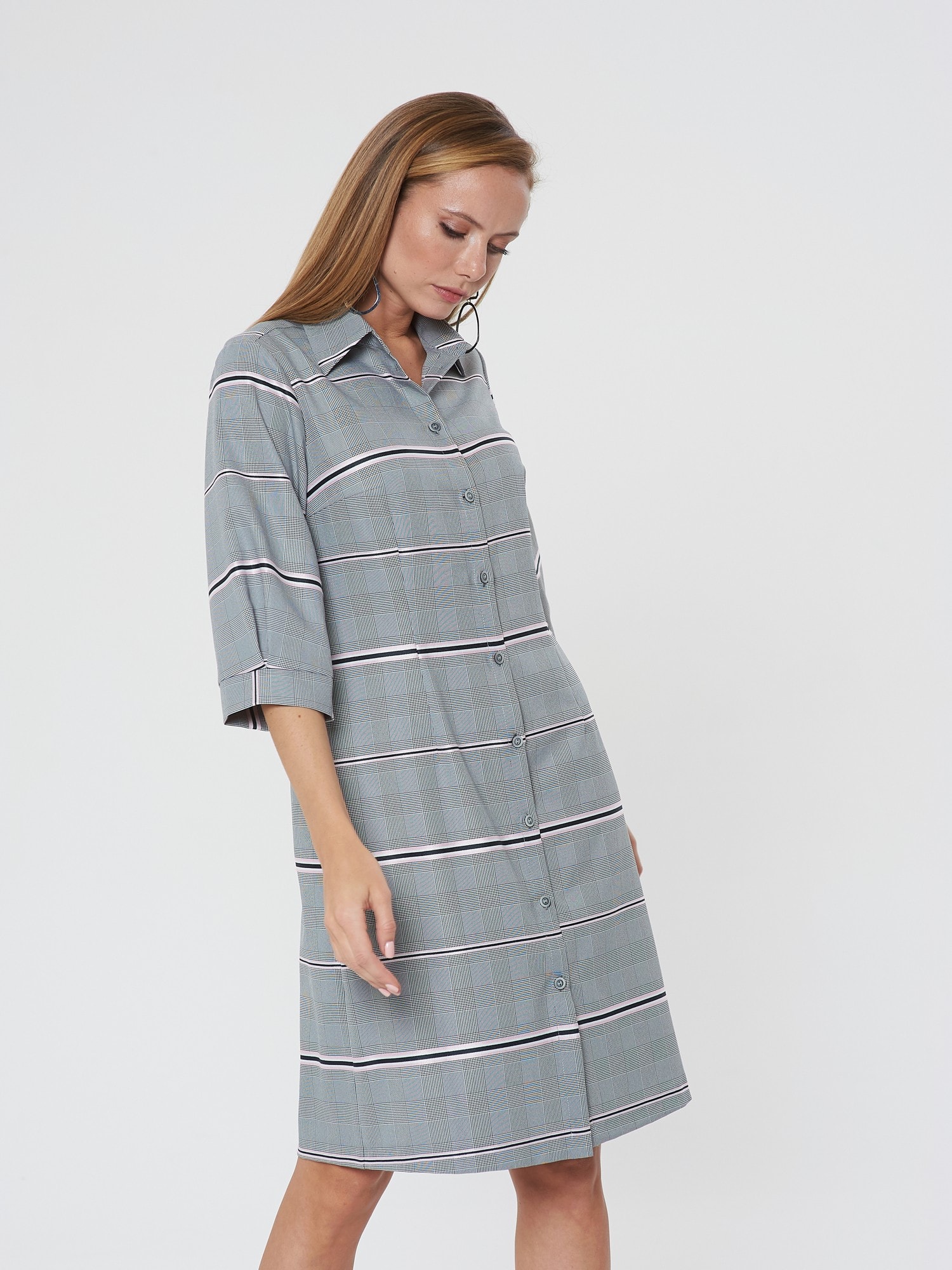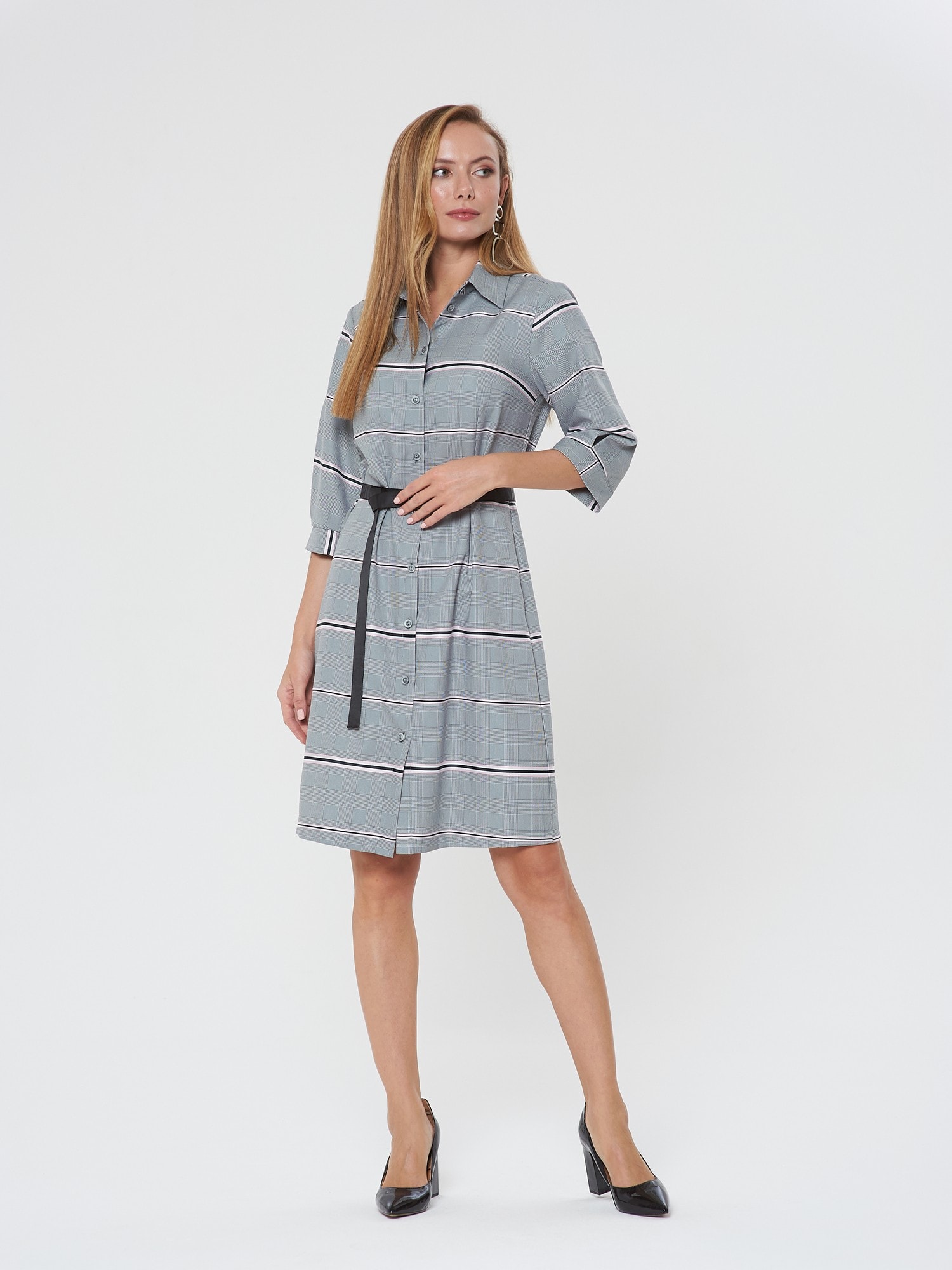 Платье-рубашка в клетку с тонкими розовыми полосками. Рукава с манжетами. Пояс в комплекте.